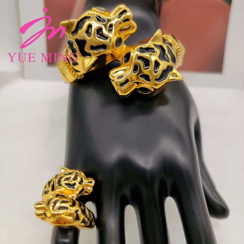 YM 2pcs Jewelry Sets For Women Dubai Gold Plated Leopard Bangles For Banquet Party Fashion Adjustable Ring Jewelry Accessories