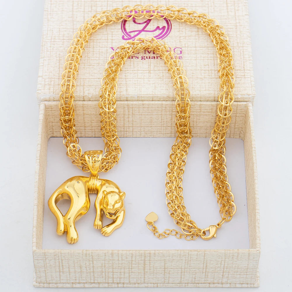 Crocodile Pendant 18K Luxury Gold Color Neclace Chain Dubai Jewelry Fashion African Gold Plated Statement Pendant Set Daily Wear