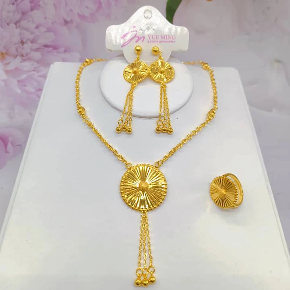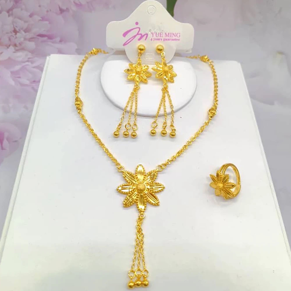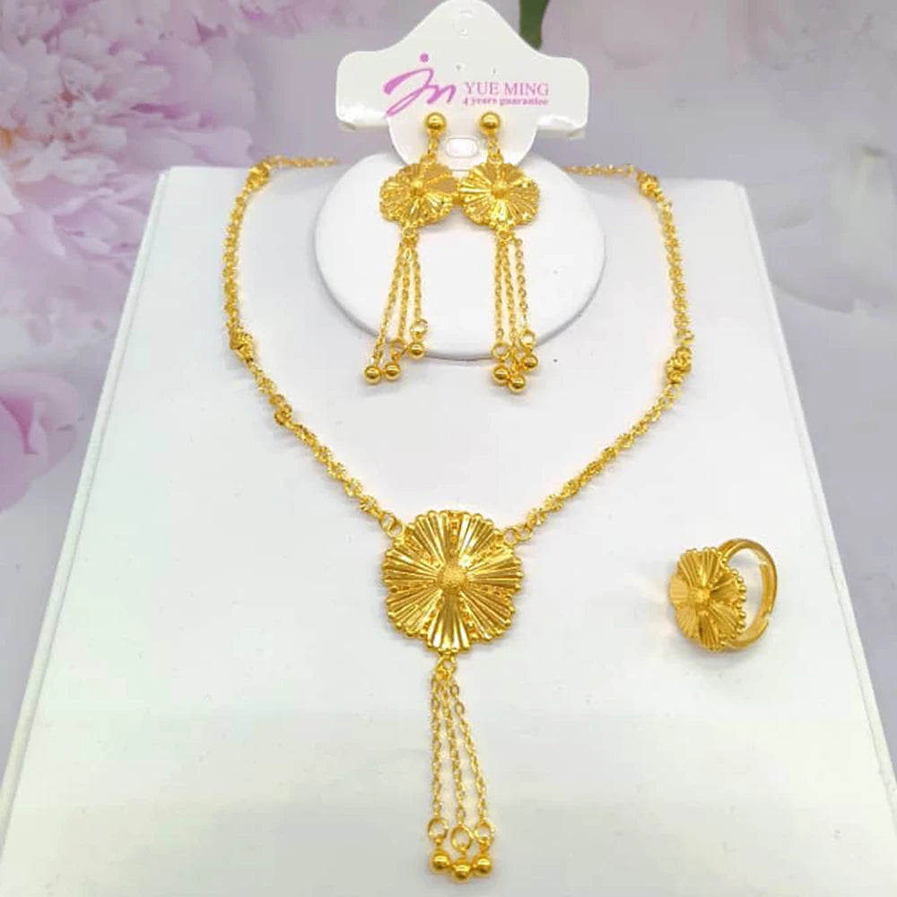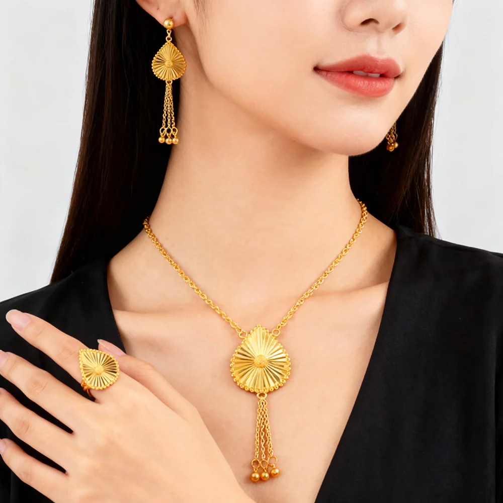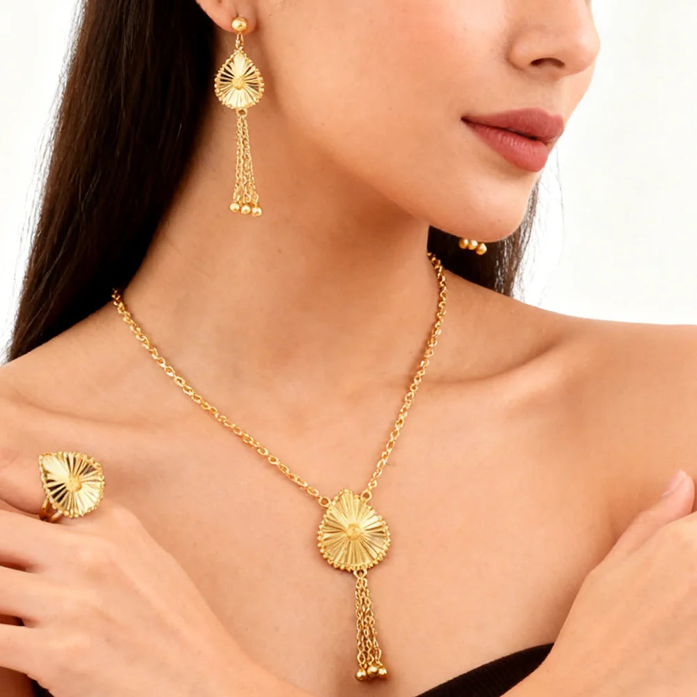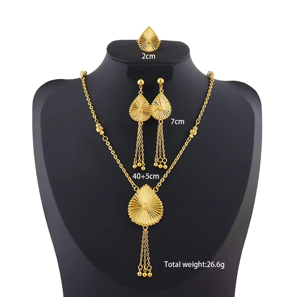 dubai gold jewelry set for women Trendy Gold Color Tassel Earrings Necklace Ring Set Wedding Party Ramadan Jewelry gift