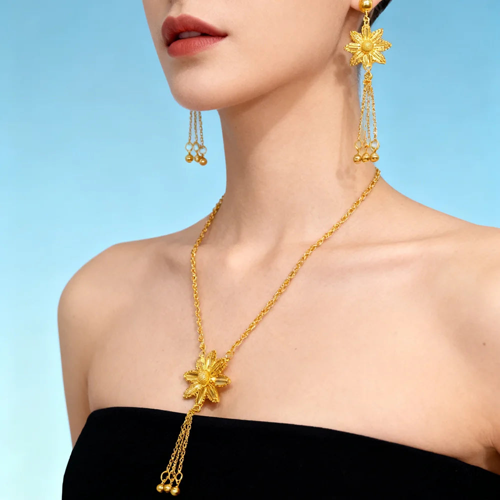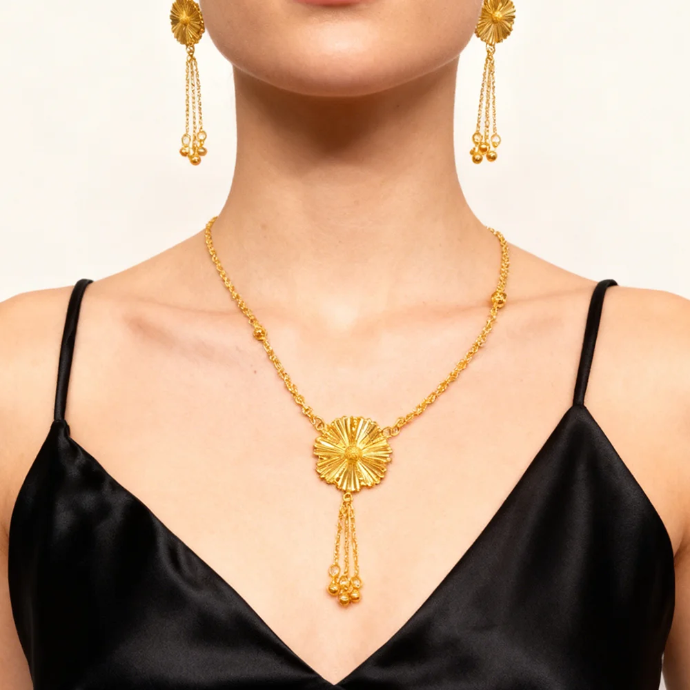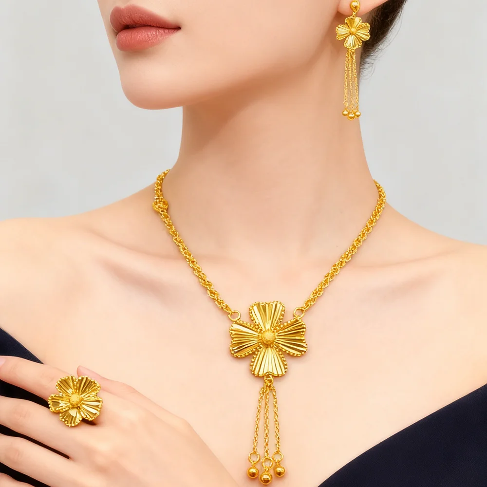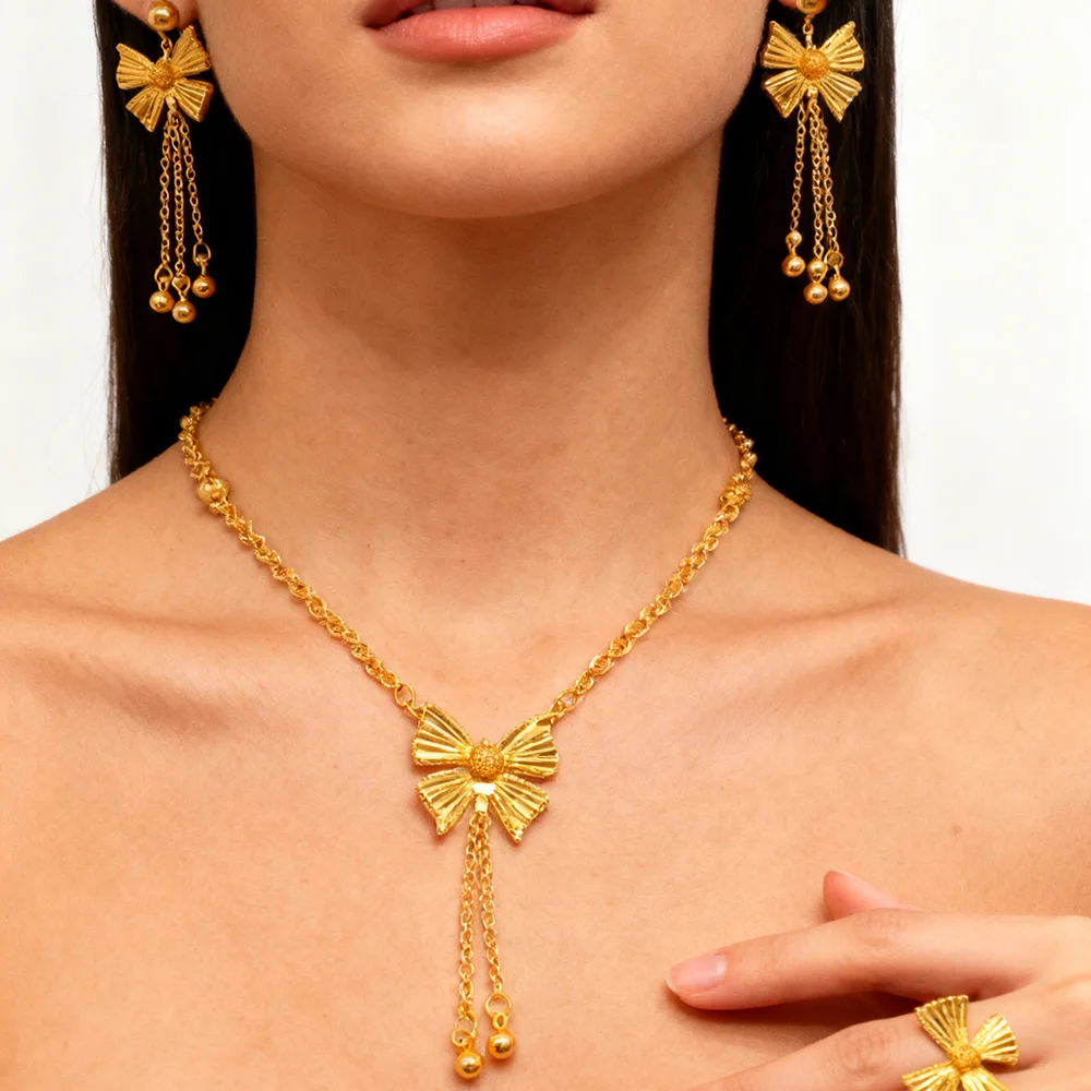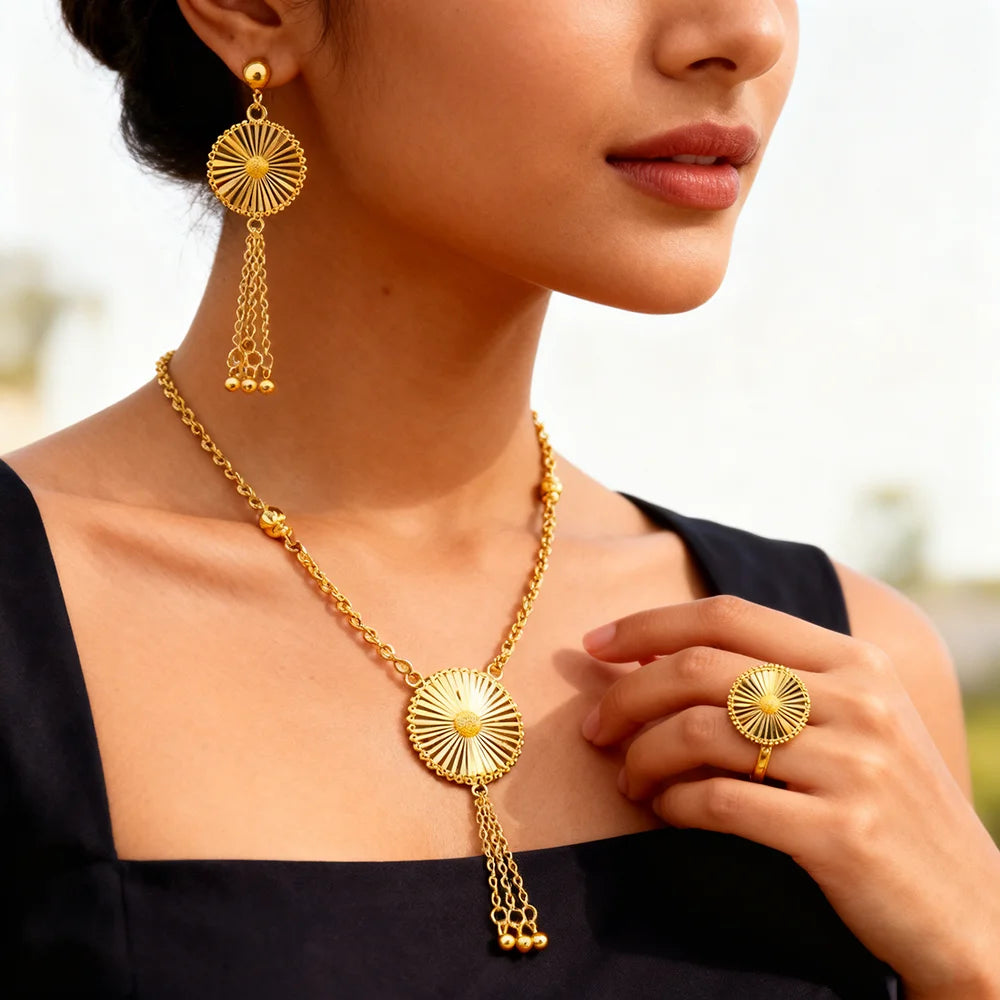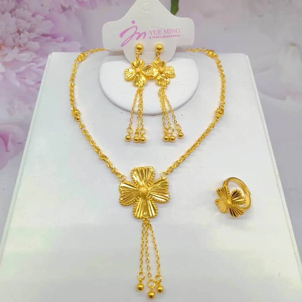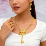 dubai gold jewelry set for women Trendy Gold Color Tassel Earrings Necklace Ring Set Wedding Party Ramadan Jewelry gift