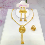 Included Additional Item Description: Trendy Gold Color Tassel Earrings Necklace Ring Set
