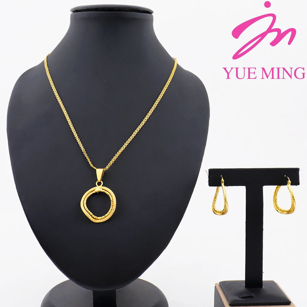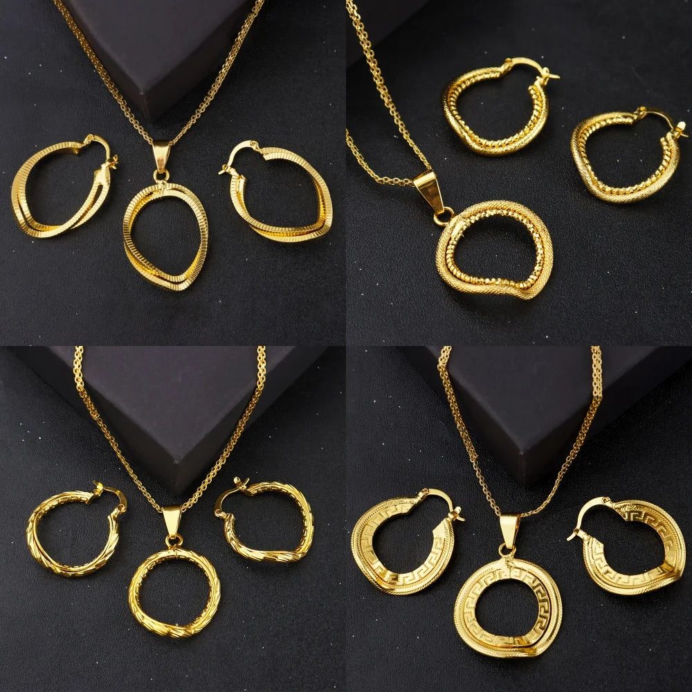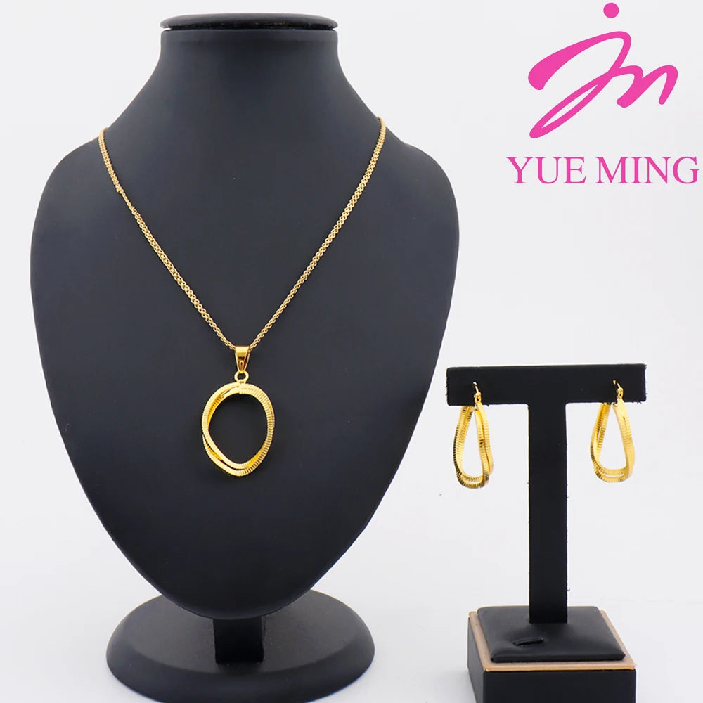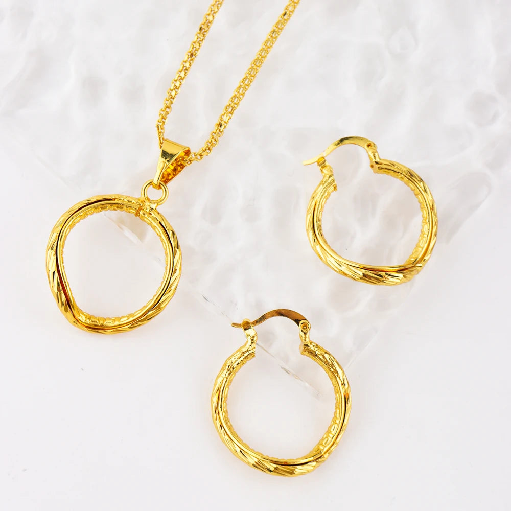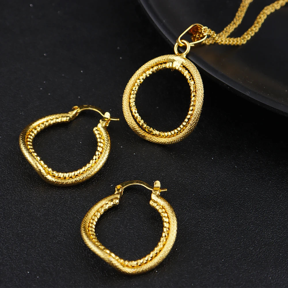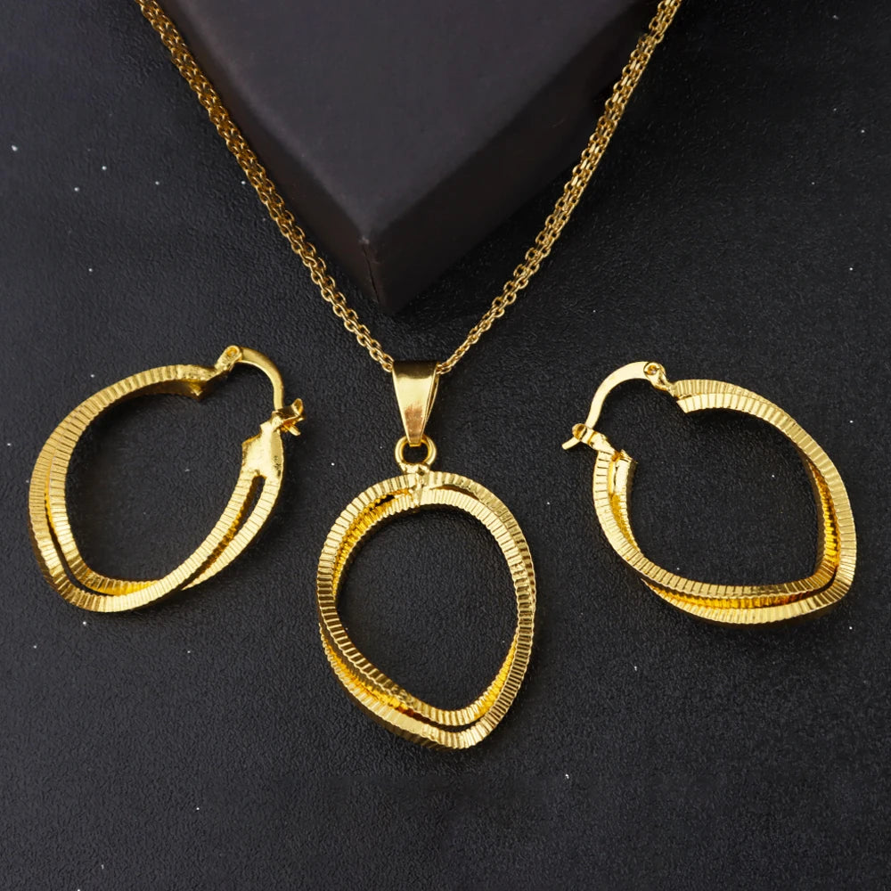 24K Gold-plated Two Piece Copper Jewelry Set Waterproof Earrings Warped Geometry Necklace Apply to America India Party Wedding