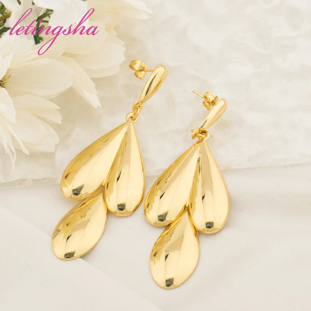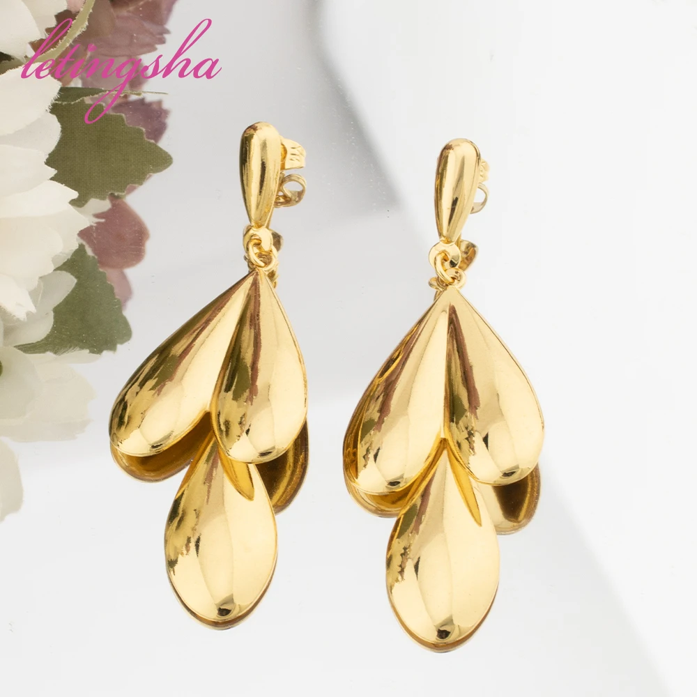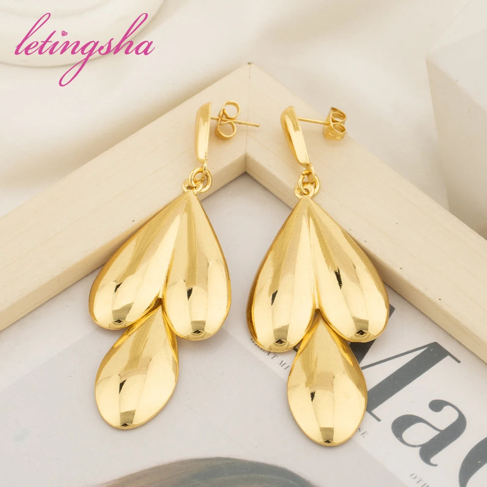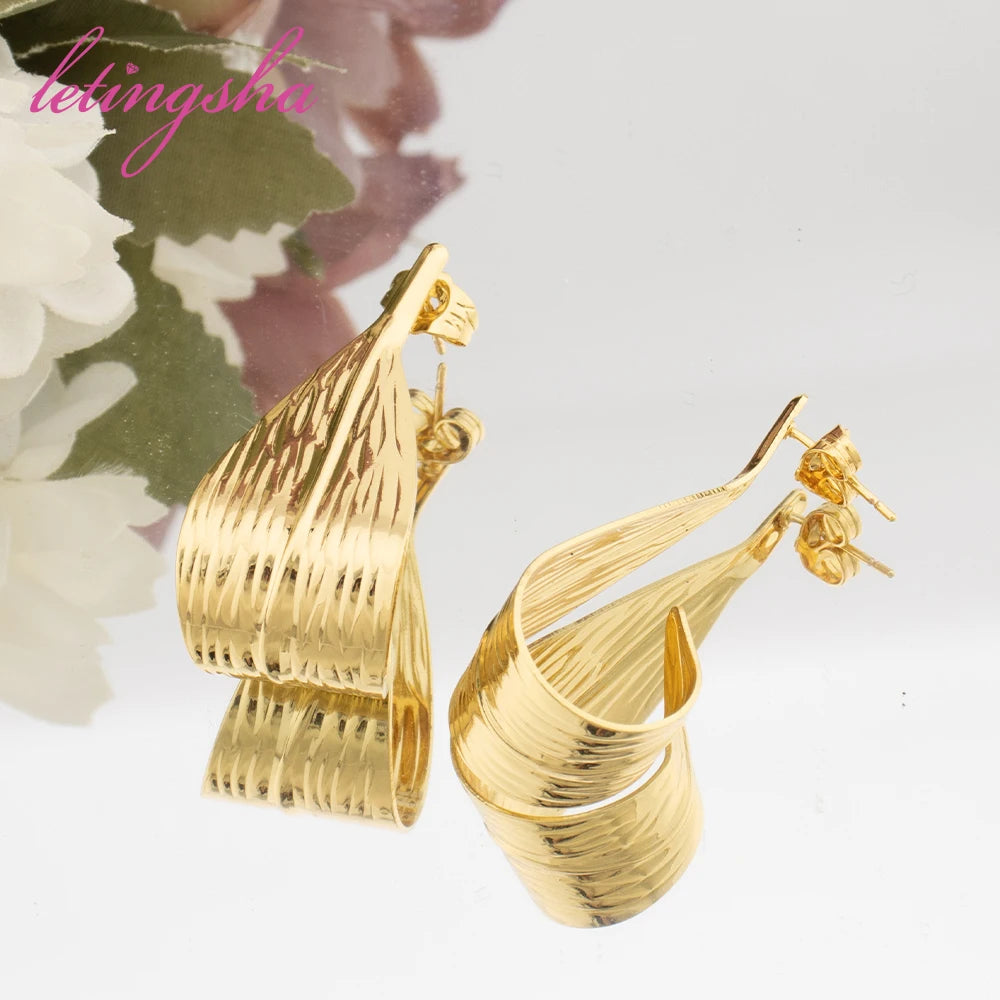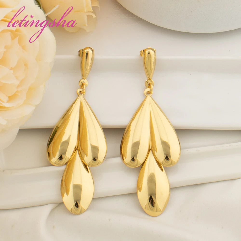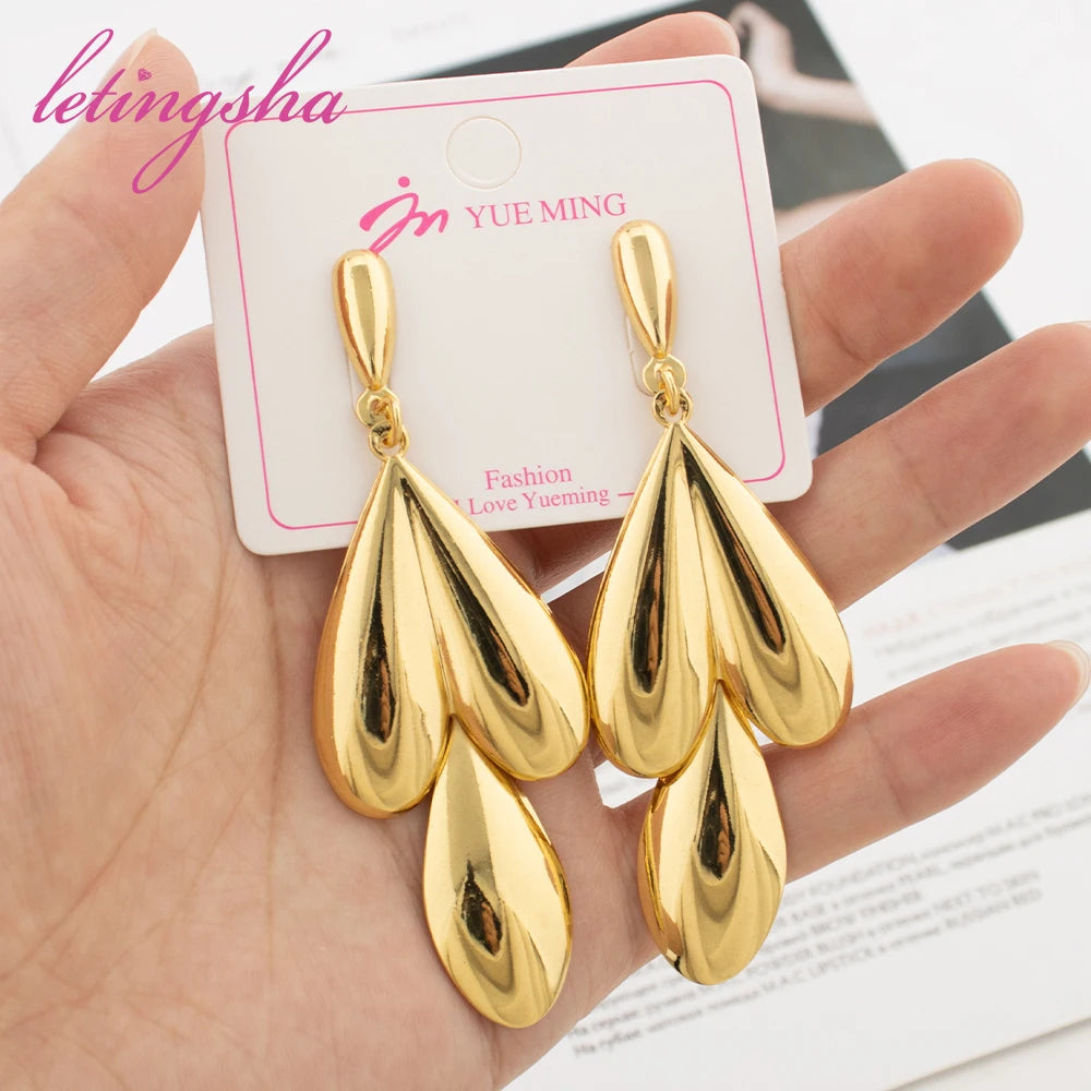 Drop Earrings For Women Fashion Big Earrings Personalized African Nigeria Stainless Steel Gold Color Jewelry Party Gift