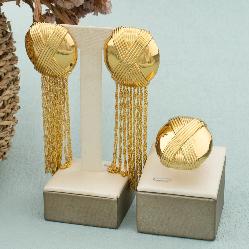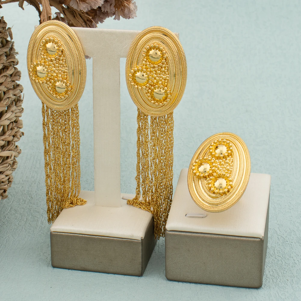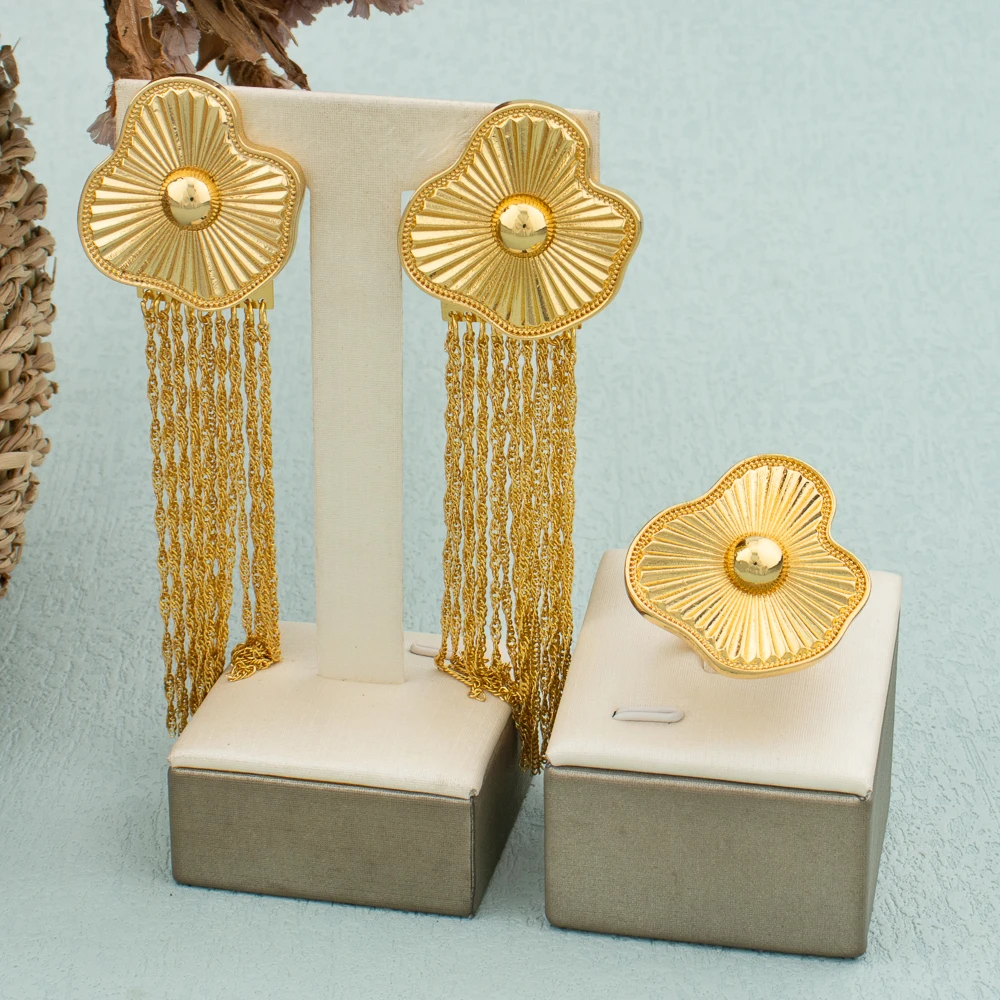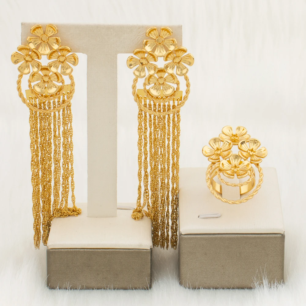 Dubai African Earrings and Ring Drop Long Earrings Flower Sexy Jewelry For Women Wedding Young Lady Big Light Weight Jewelry