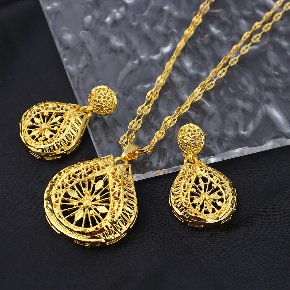Dubai Party 24k Gold Plated Jewelry Sets for Women Mid East Bridal Costume Necklace Earrings Sets Indian Wedding Party Gifts