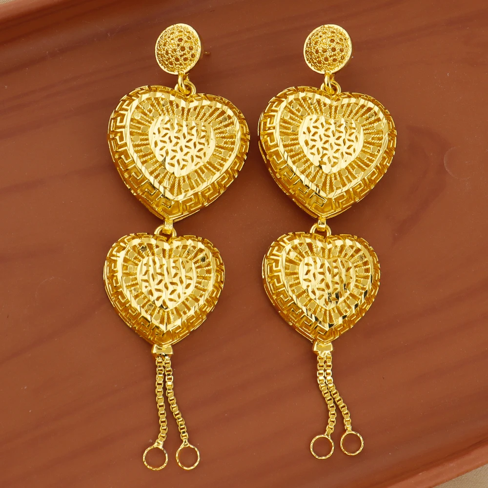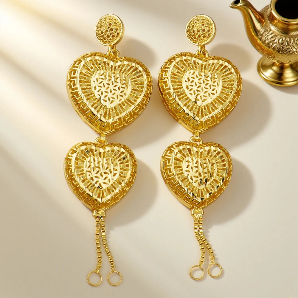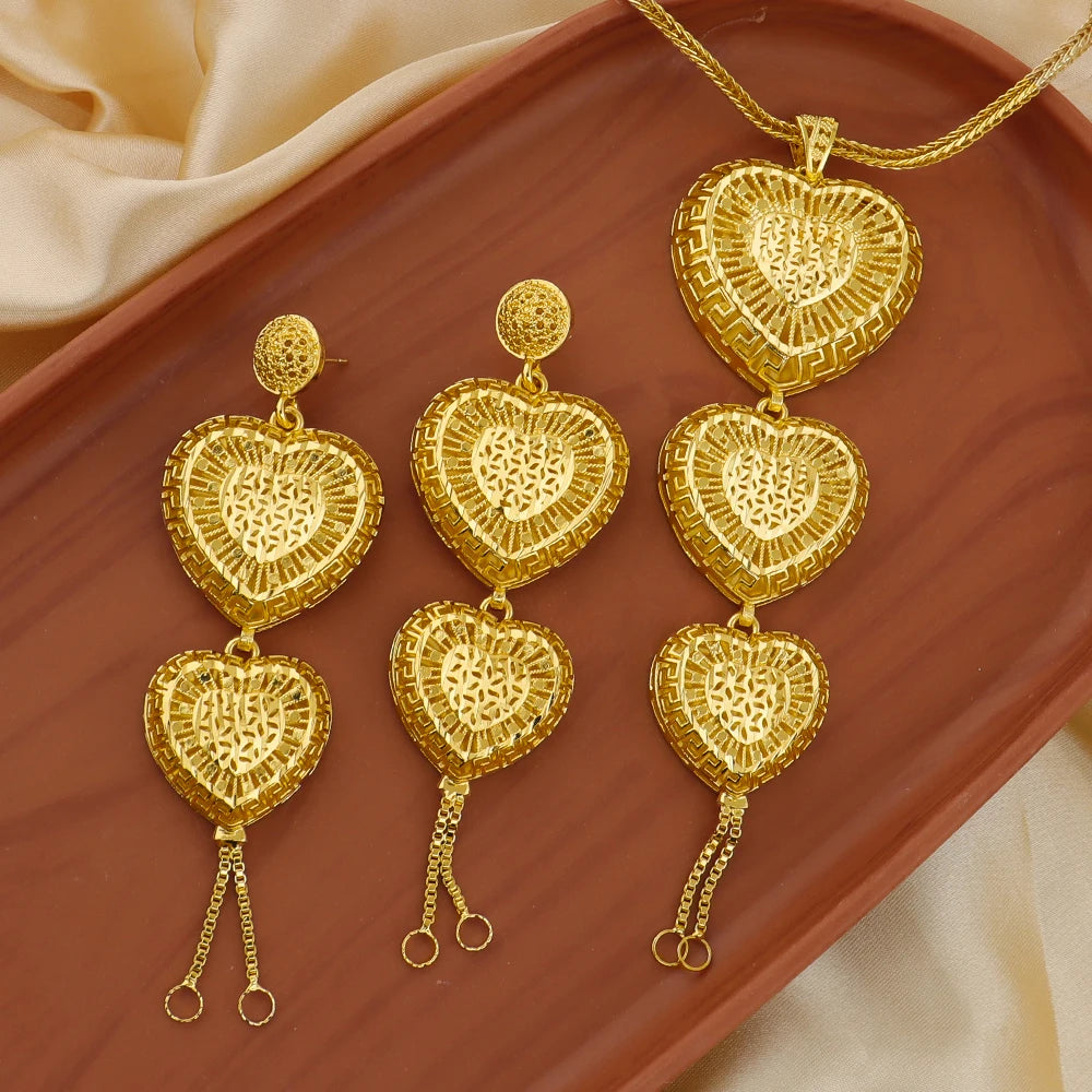 Dubai Stainless Steels Necklace Earrings Jewelry Set For Women 24K Gold Plated Retro Indian Nigeria Bridal Wedding Party Gift