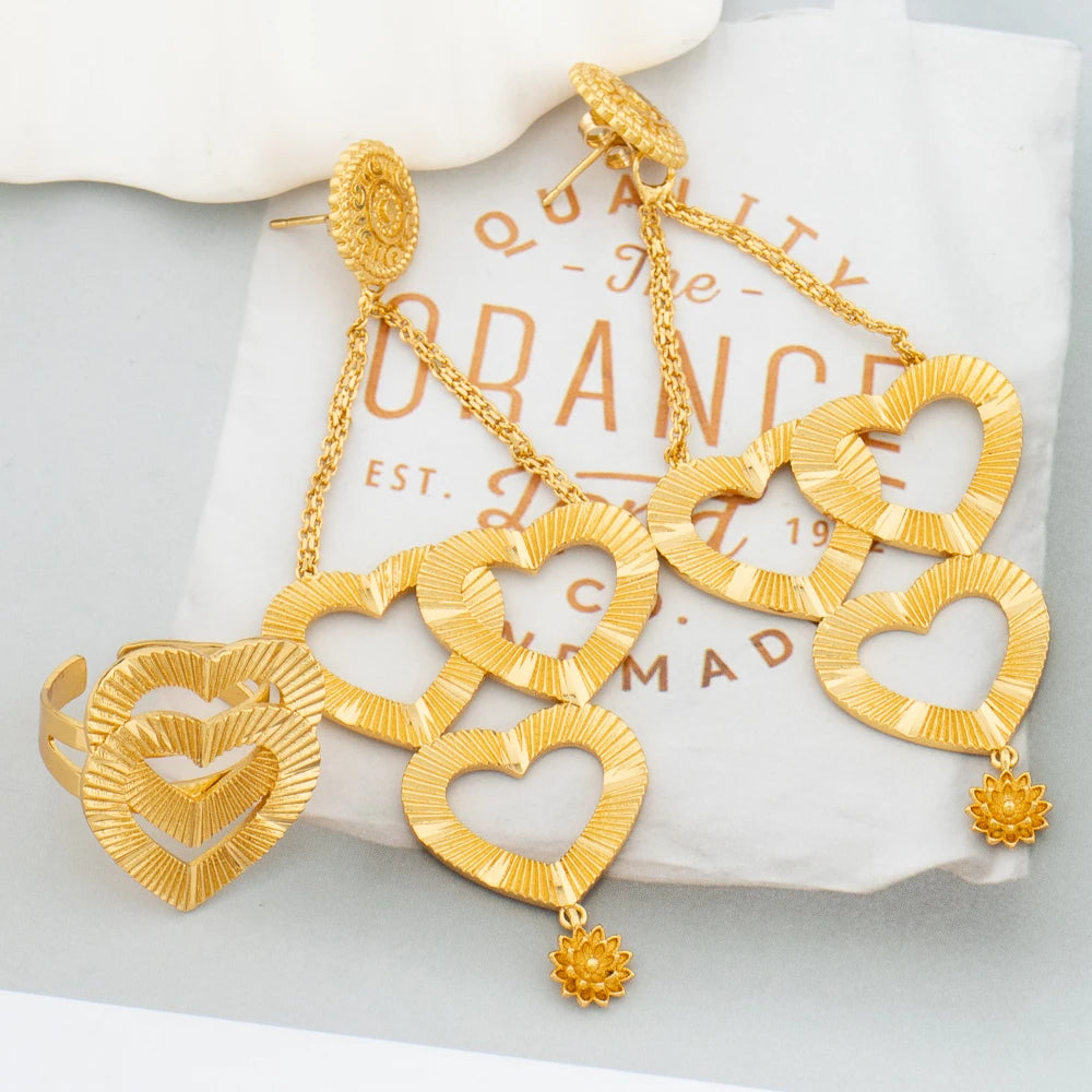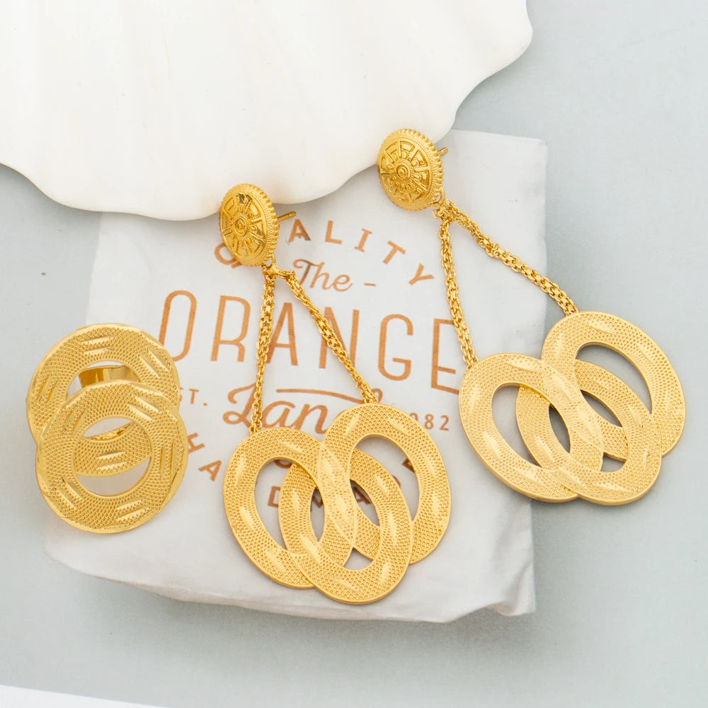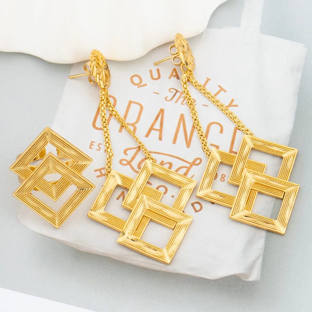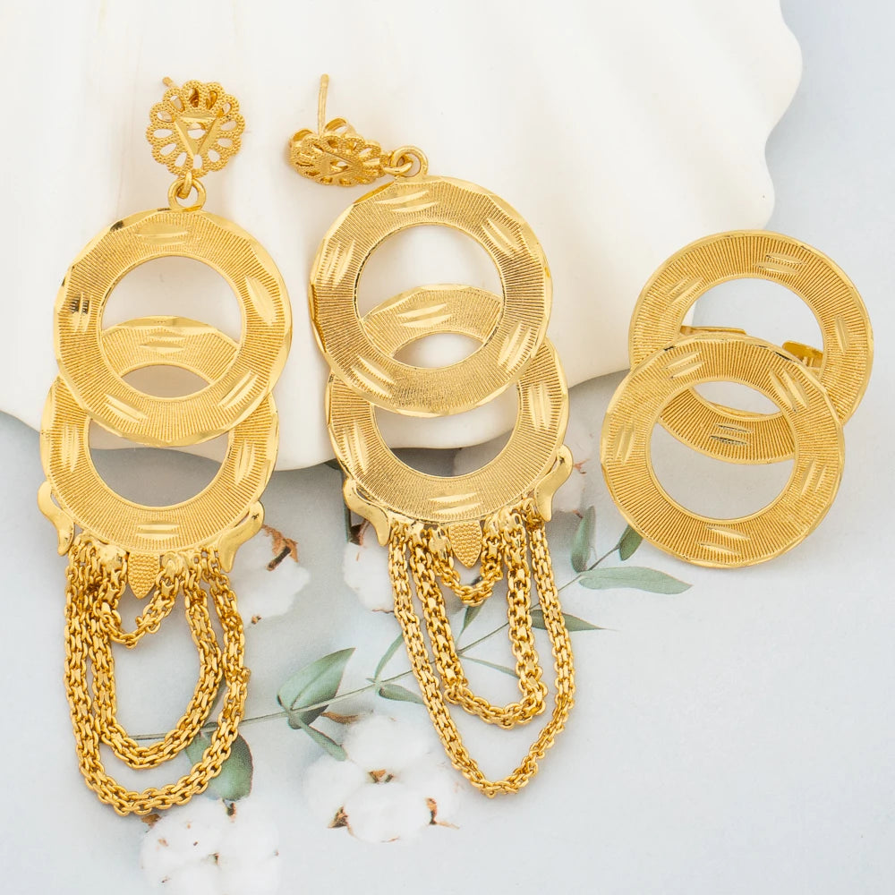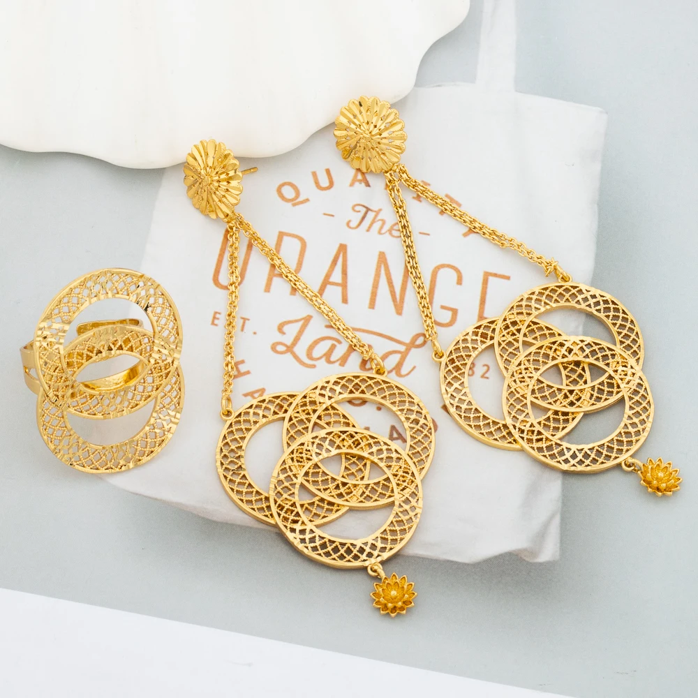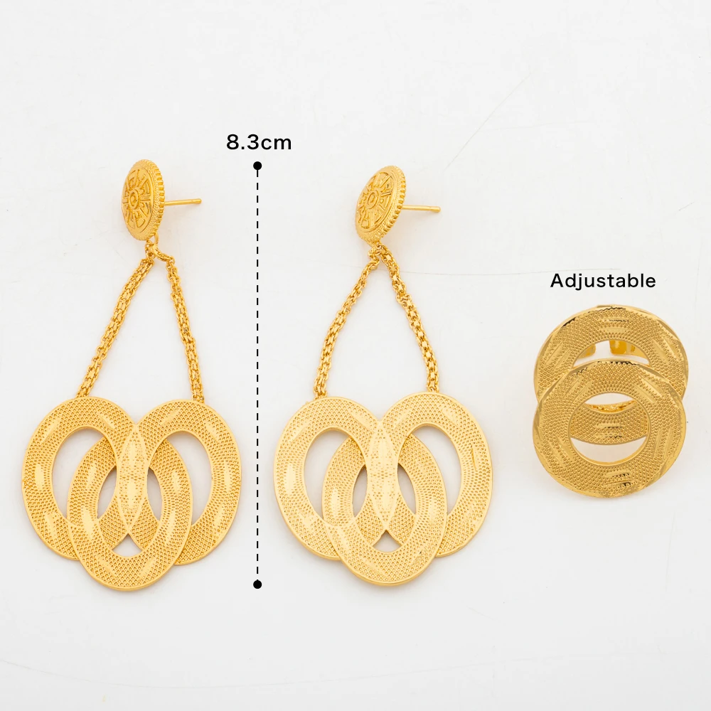 Fashion 18k Gold Plated Earrings and Ring Set for Women Girl Daily Wear France Dubai Tassel Earrings Jewelry Set Wedding Gift