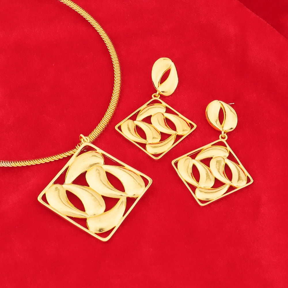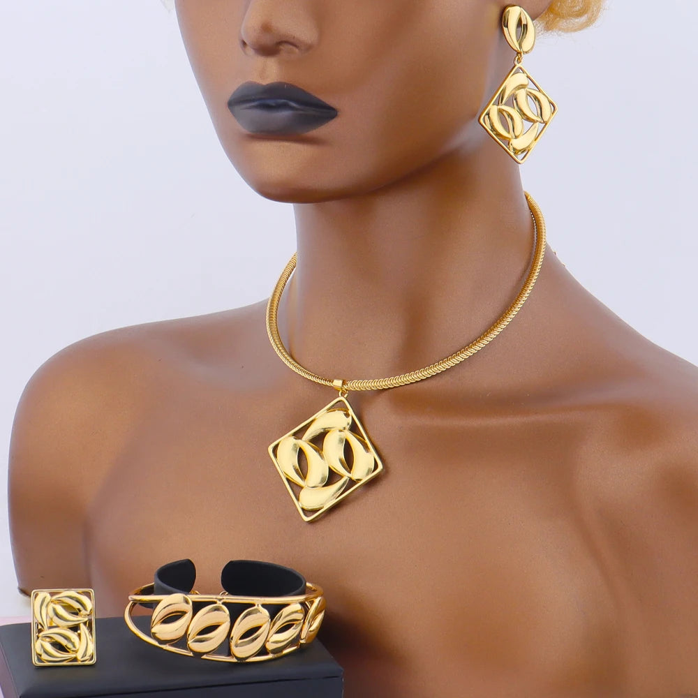 Gold Plated Weaving Tassel Pendant Necklace Earrings Bracelet Ring Jewelry Set for Women Fashion Jewelry Gift for Party Wedding