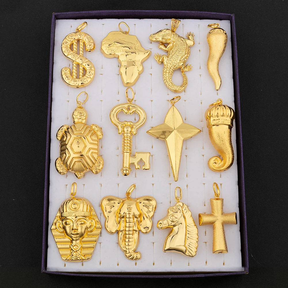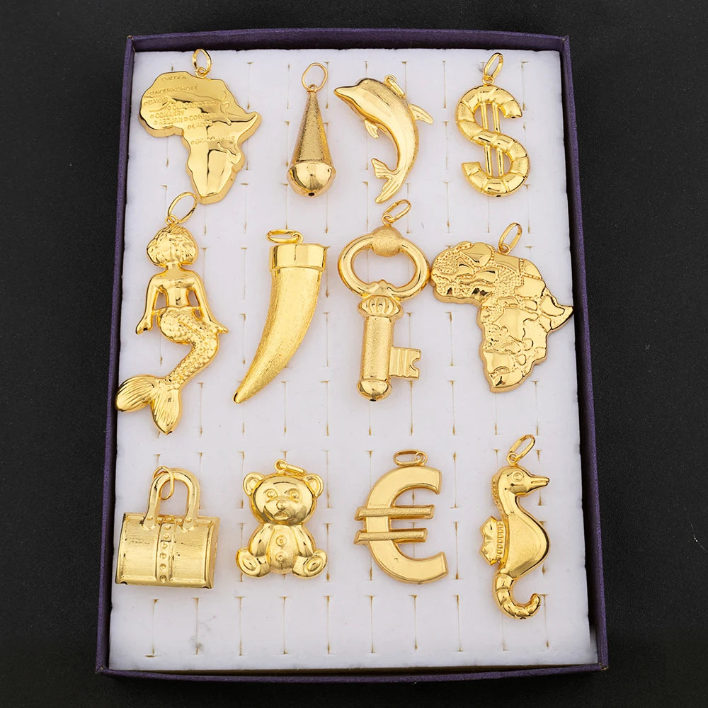 Hip Hop Personality Pendant Gold Color African Map Mermaid Dollar Euro Shape Pendant for Women Men Luxury Copper Chain Jewelry