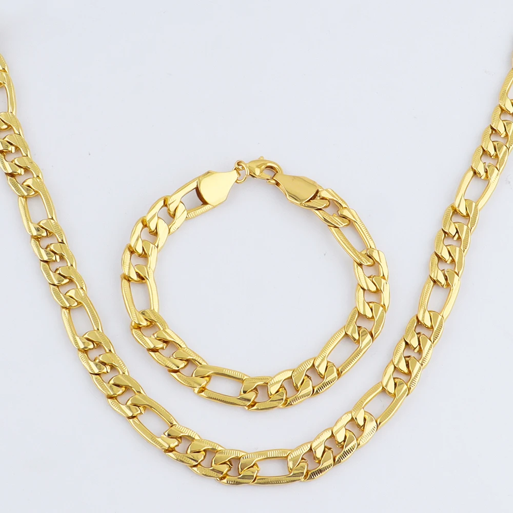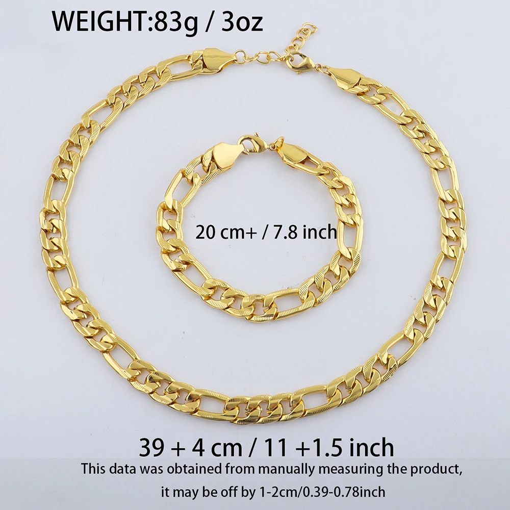 Stainless Steel Figaro Chain Cuban Link Necklace Bracelet For Men Women Aestethic Colar Choker Collar Gold Color fine Jewelrys