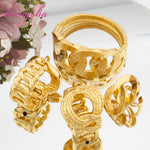 Features: African Luxury Gold Color Earrings Bangle Ring Sets