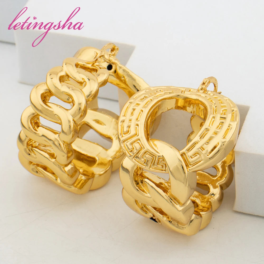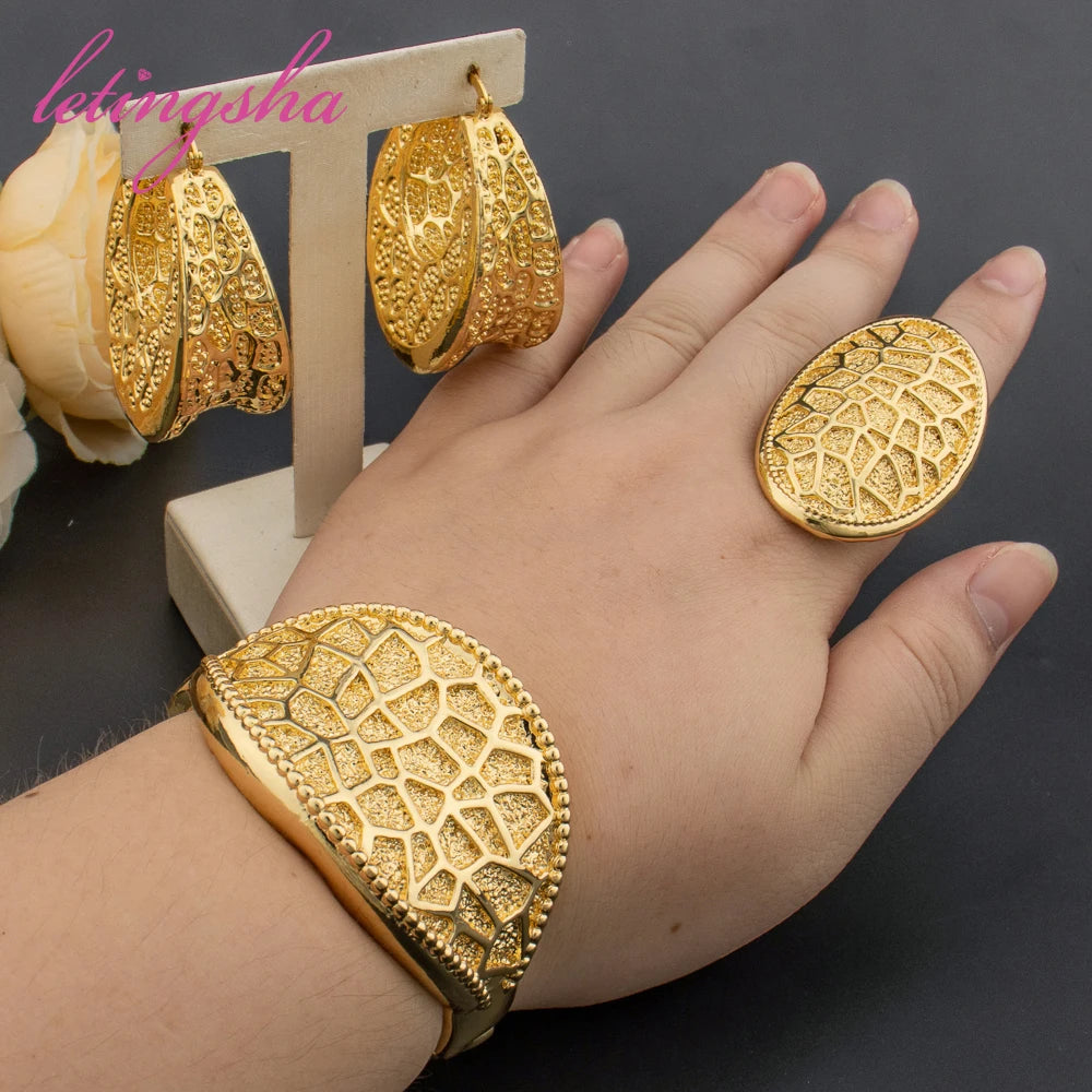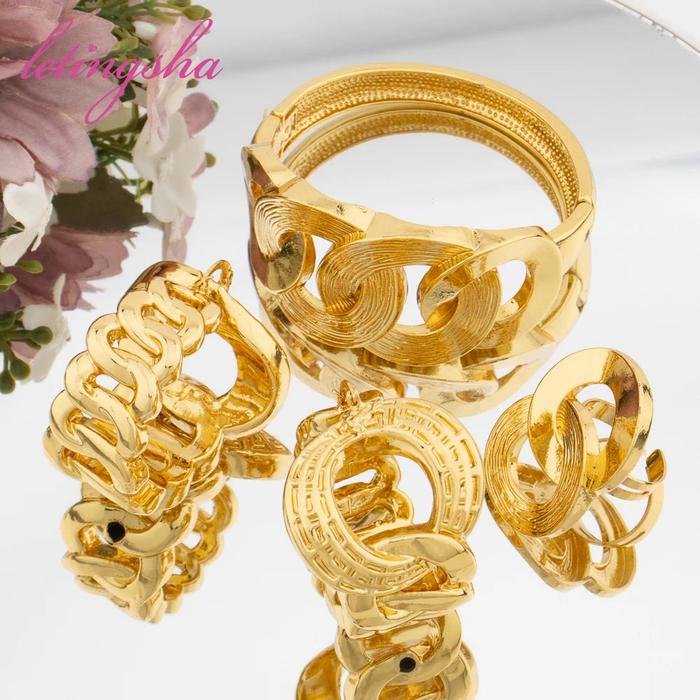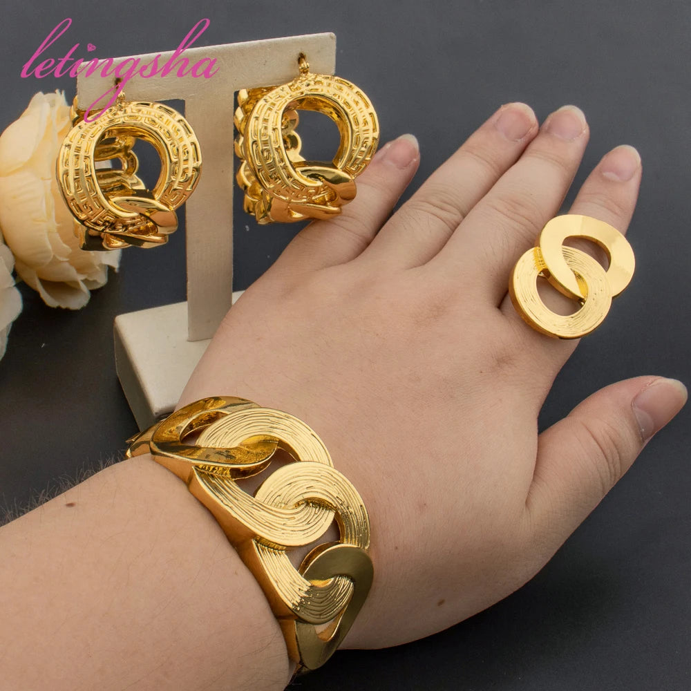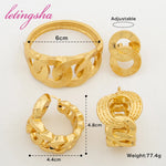Trendy Hollow Hoop Earrings Large Style Jewelry For Ladies Fashion Copper Cuff Bangle with Ring For Women Daily Wear Party Gift