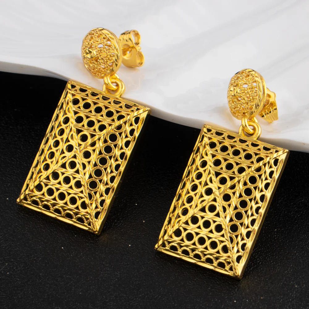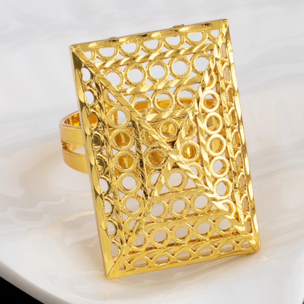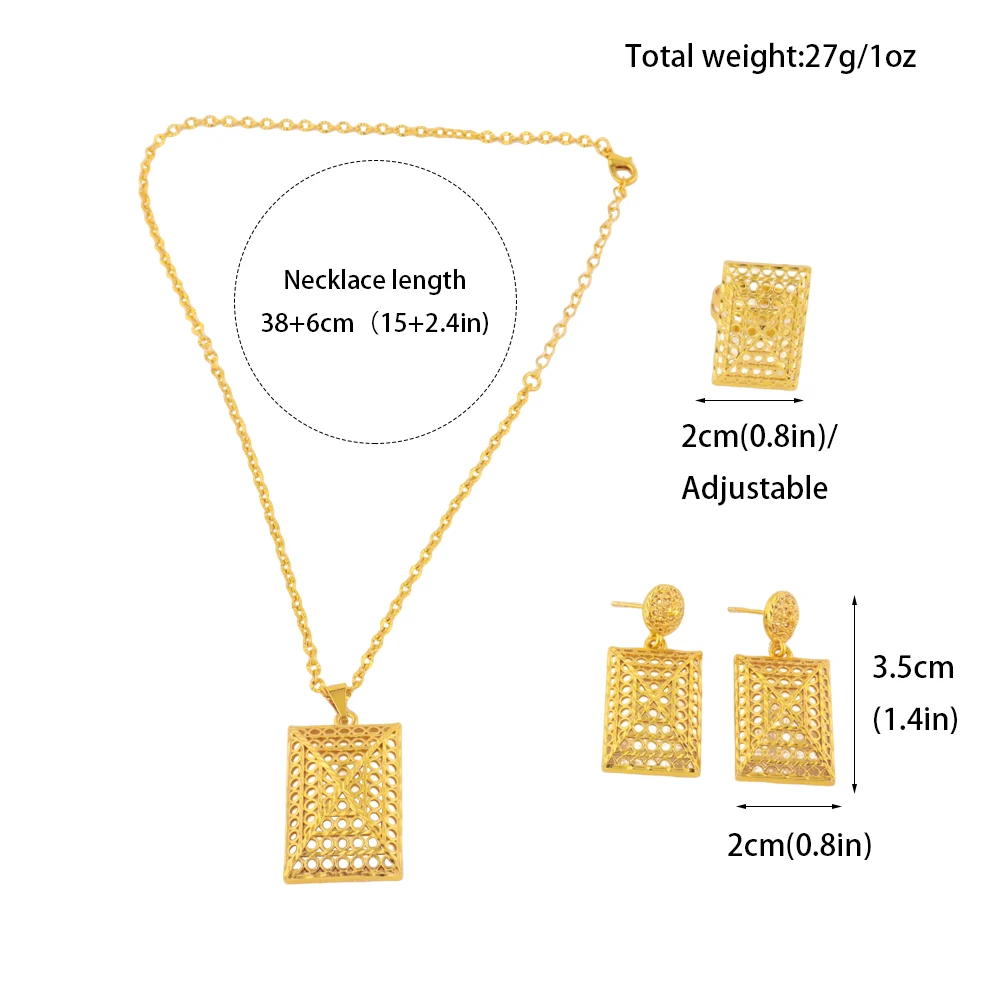 YM Gold Color Rectangle Shape Women Jewelry Set Mid East Noble Earrings Ring Necklace Jewelry Wholesale Gift for Party Wedding