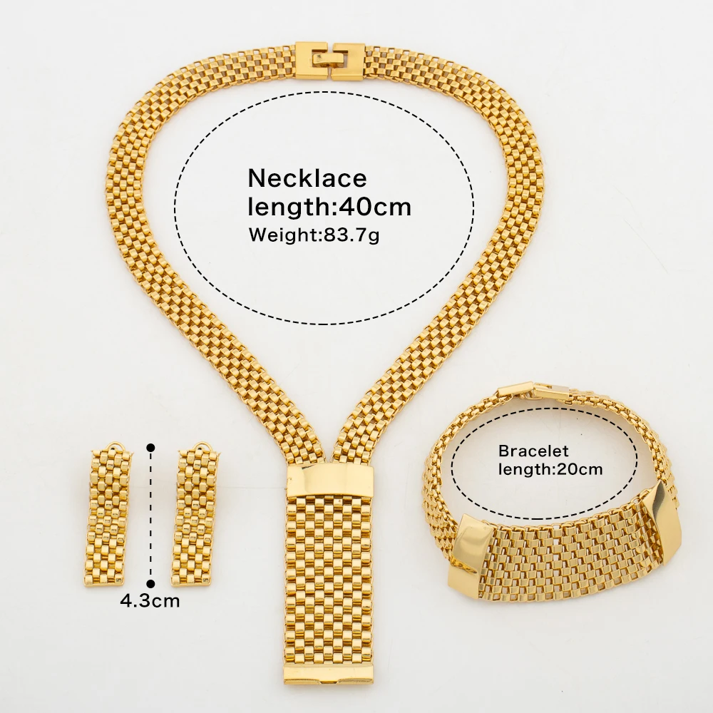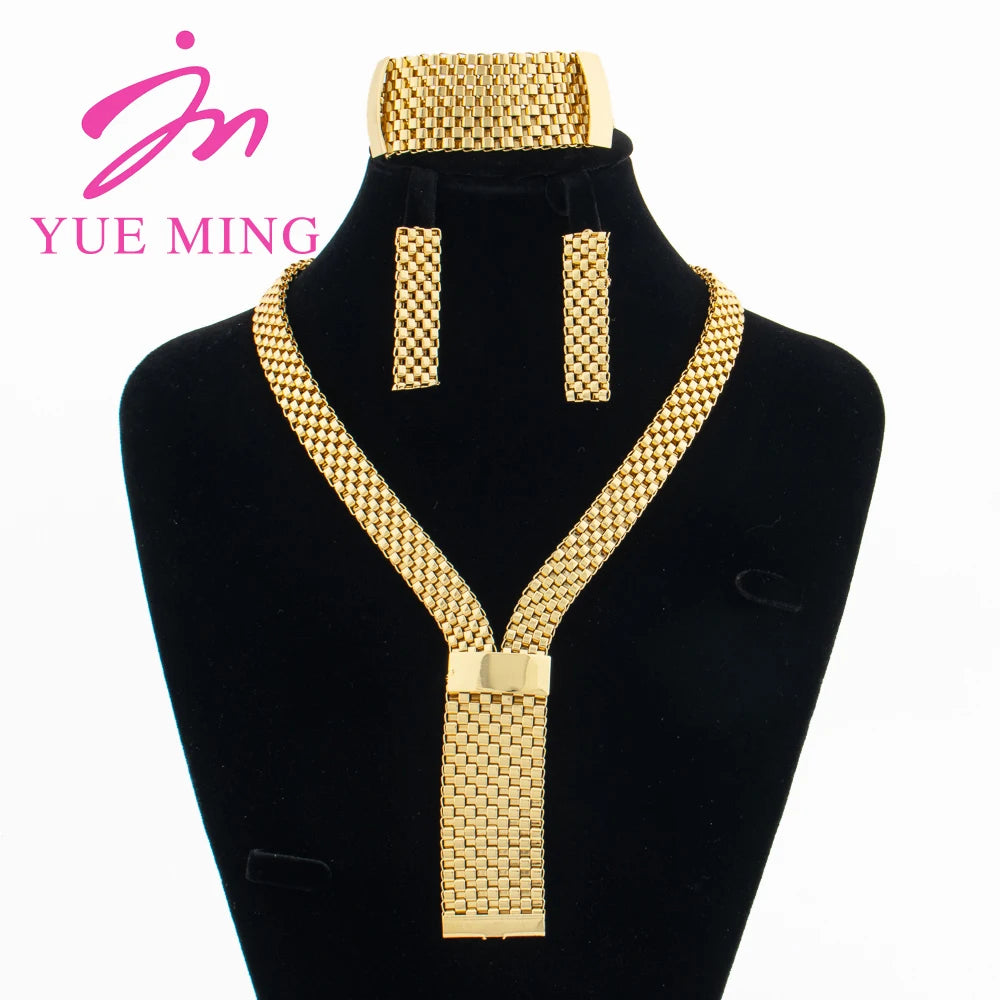 3PCS Luxury Jewelry Set Italian Copper Necklace for Women Gold Color Bracelet Earrings Wedding Party Jewelry Valentine Day Gift