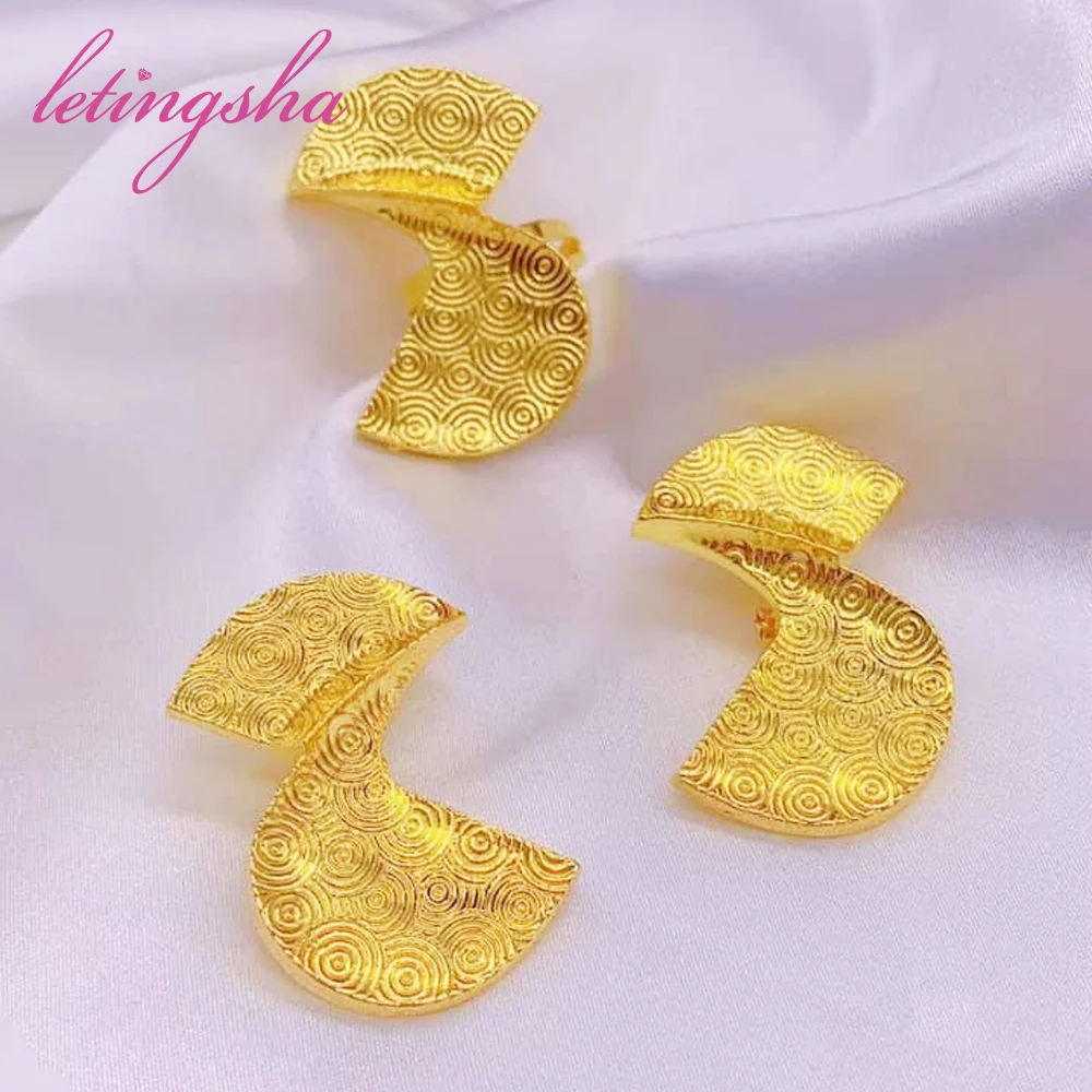 Style: TRENDY,Jewelry Set African Fashion Cote D'Ivoire Gold Plated Earrings Ring Sets