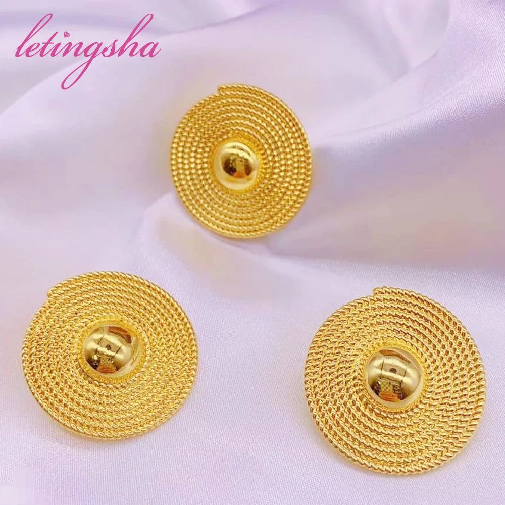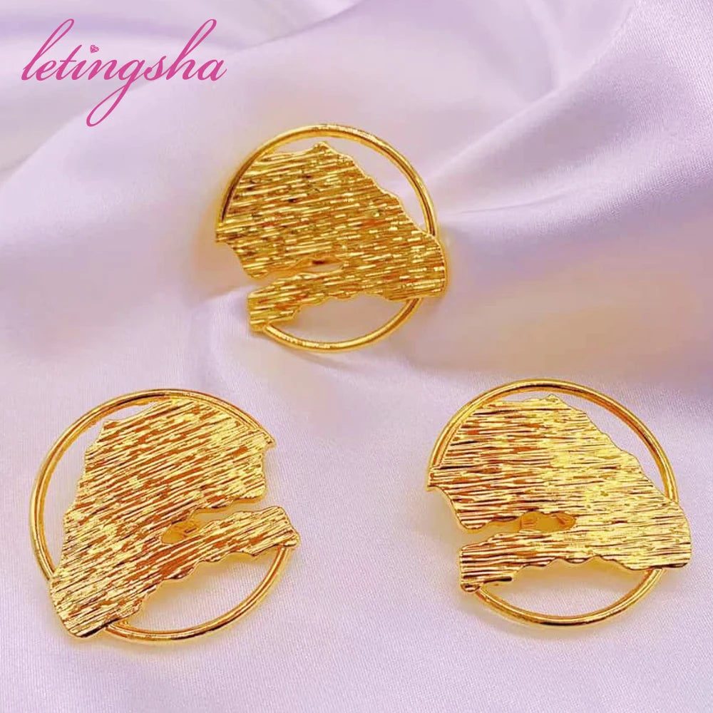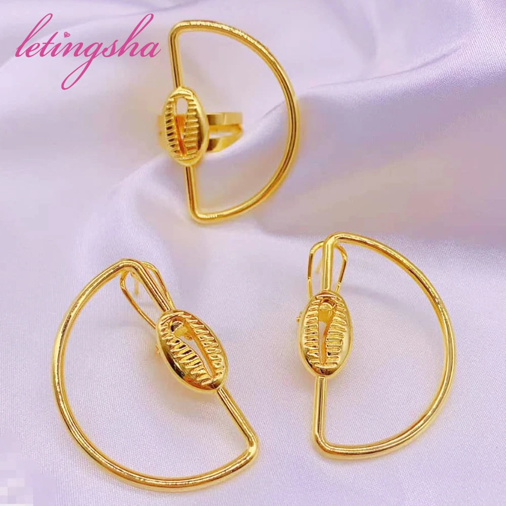 Features: African Dubai Gold Plated Earrings Ring Sets