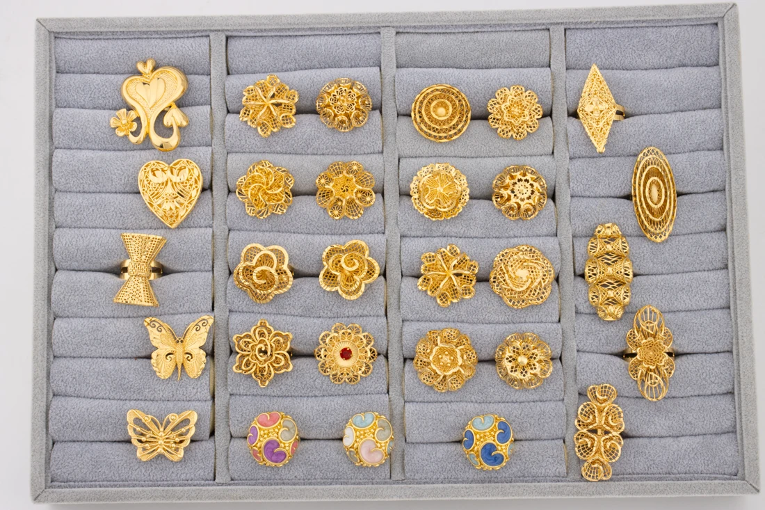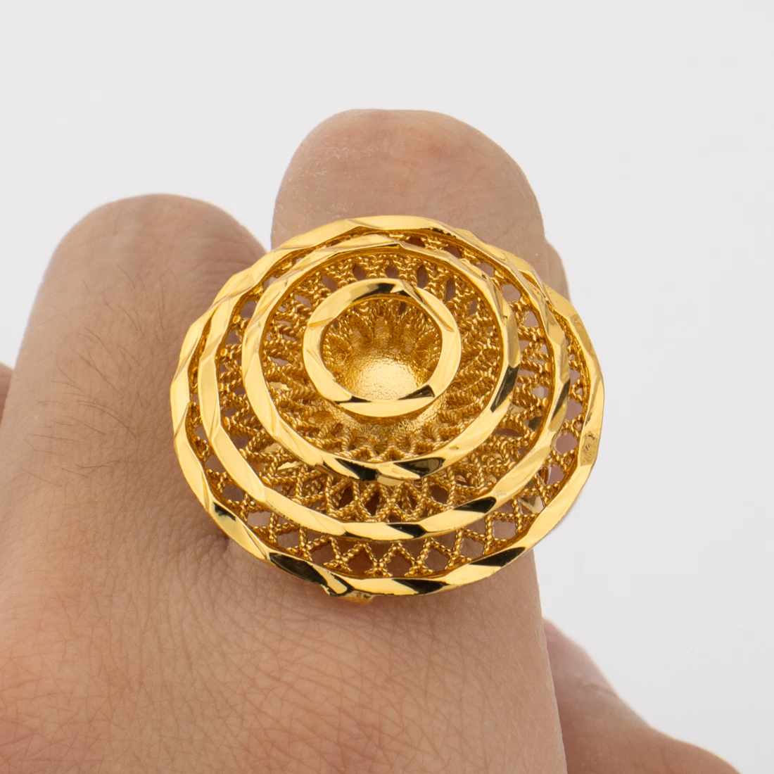 Dubai Gold Color Flower Shape Rings Nigerian Luxury Jewellery Set Africa Bride Wedding Indian Fashion Party Gifts