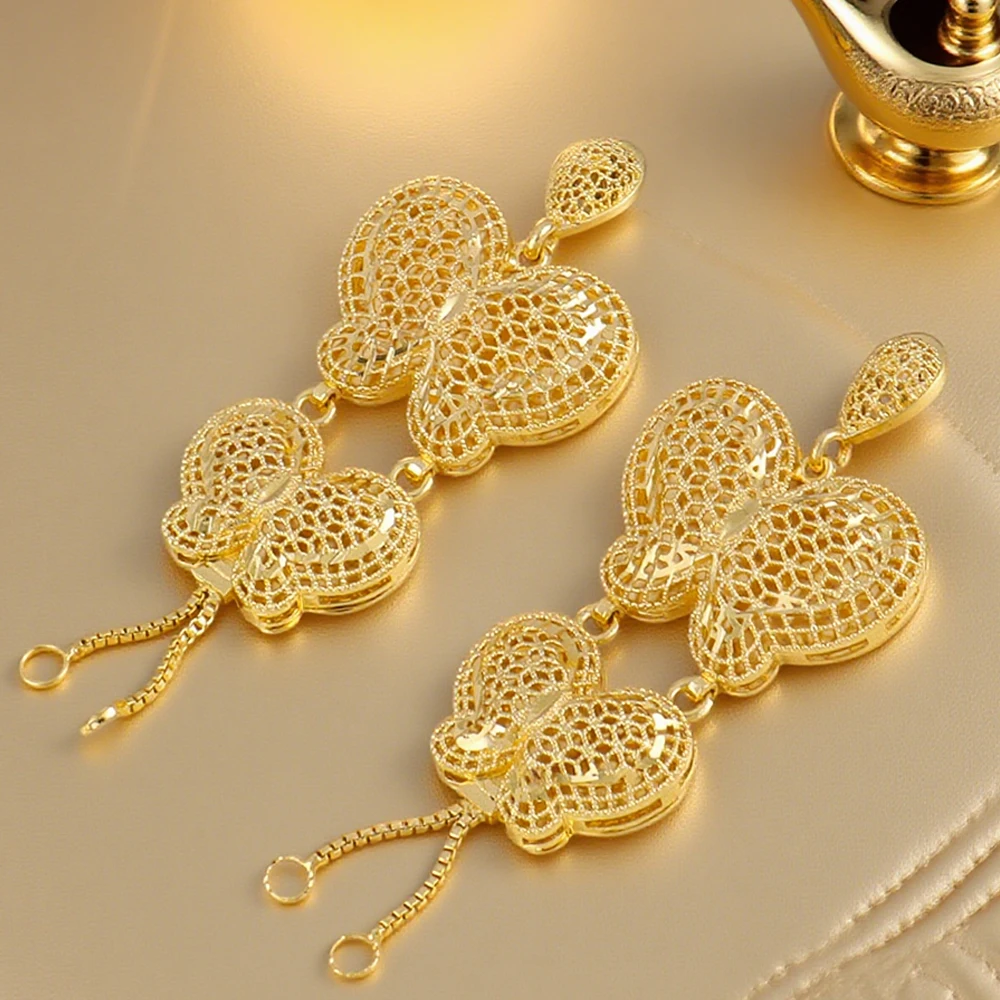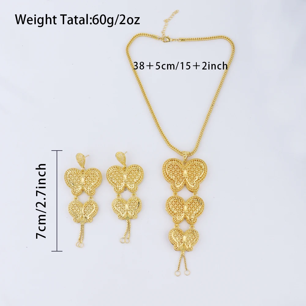 Dubai Gold Color Jewelry Set For Woman Bridal Nigerian Butterfly Shape Stainless Steel Necklace Earrings Jewellery Set Party Gif