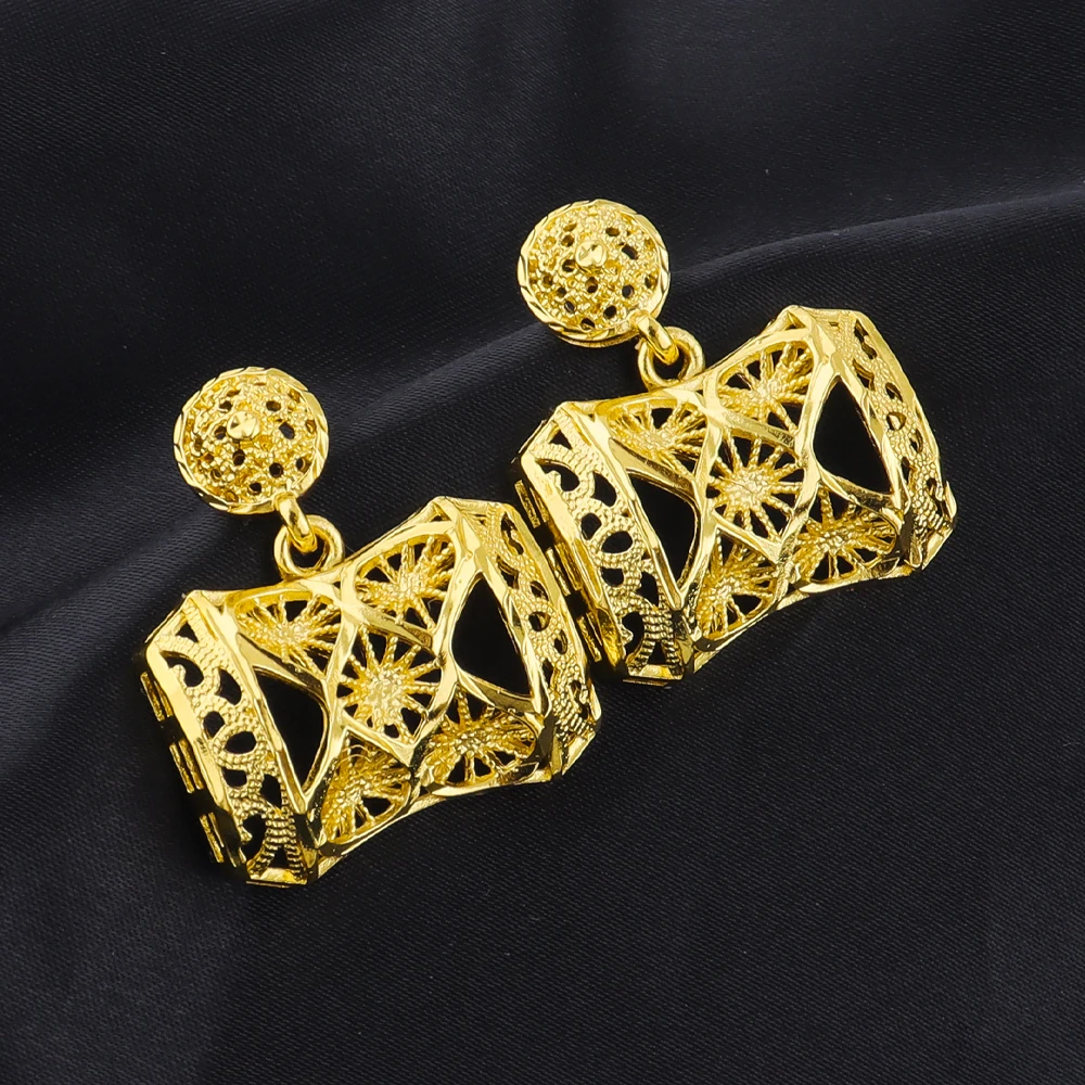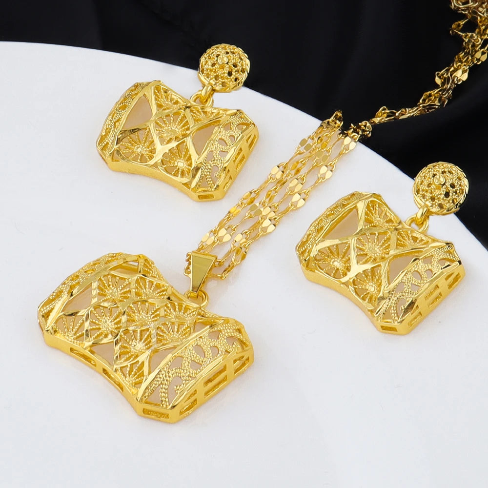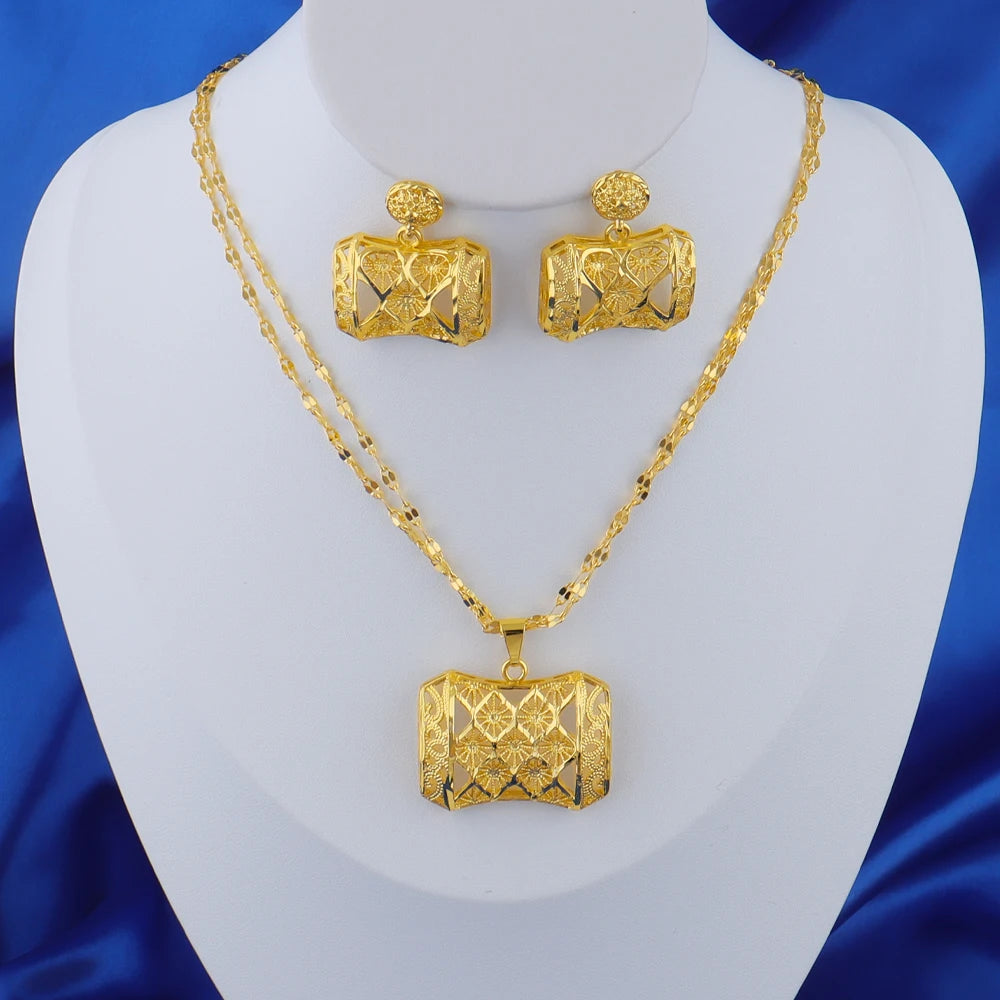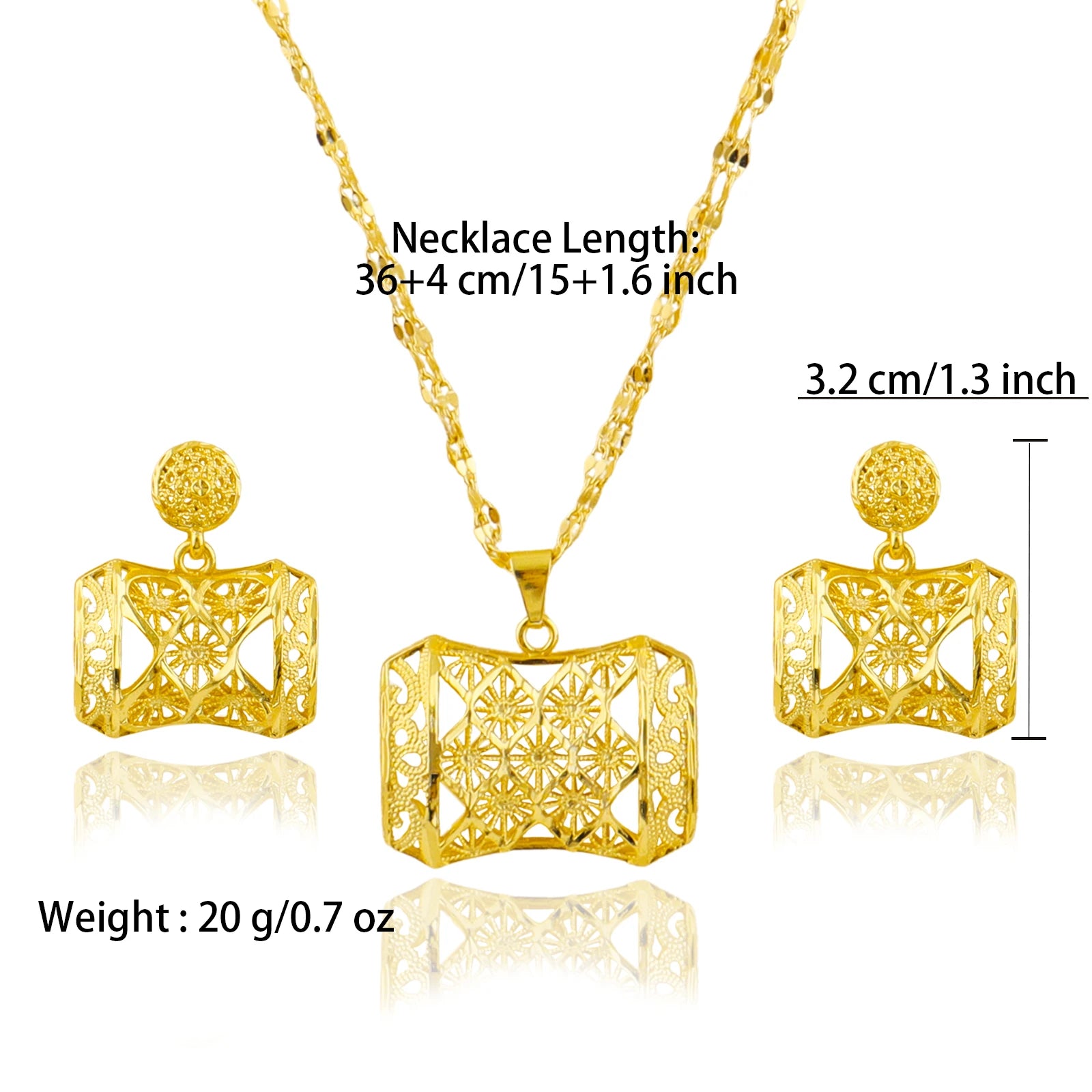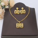 Elegant Exquisite Gold Plated Necklace Earrings 3Pcs Jewelry Set for Women Dubai Fashion Square Design Jewelry for Party Wedding