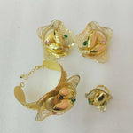 color: Gold Color Large Necklace Earrings Bangle Ring 4PCS Set