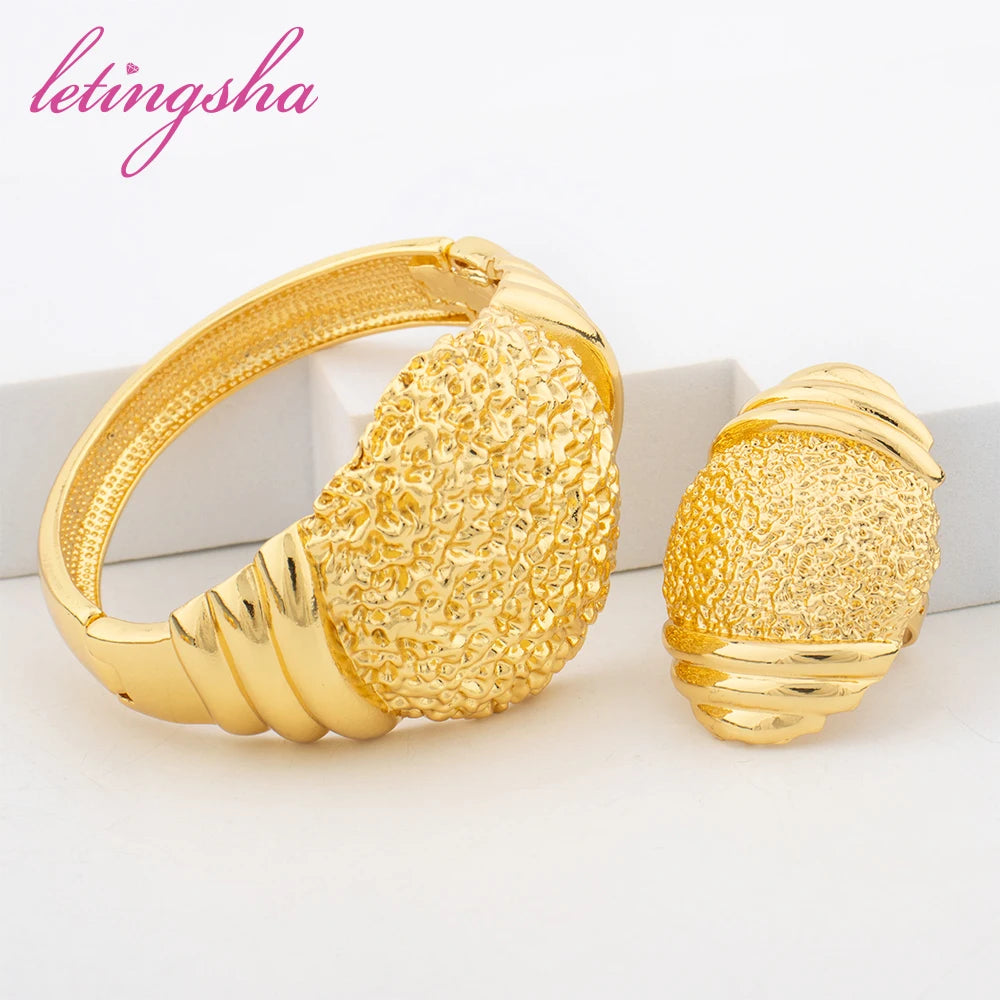 Features: African Dubai Gold Plated Necklace Earrings Bangle Ring Sets