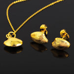 French Elegant Gold Plated Women Necklace Earrings Set for Girl Fashion Jewelry Accessories Gift for Wedding Party Banquet
