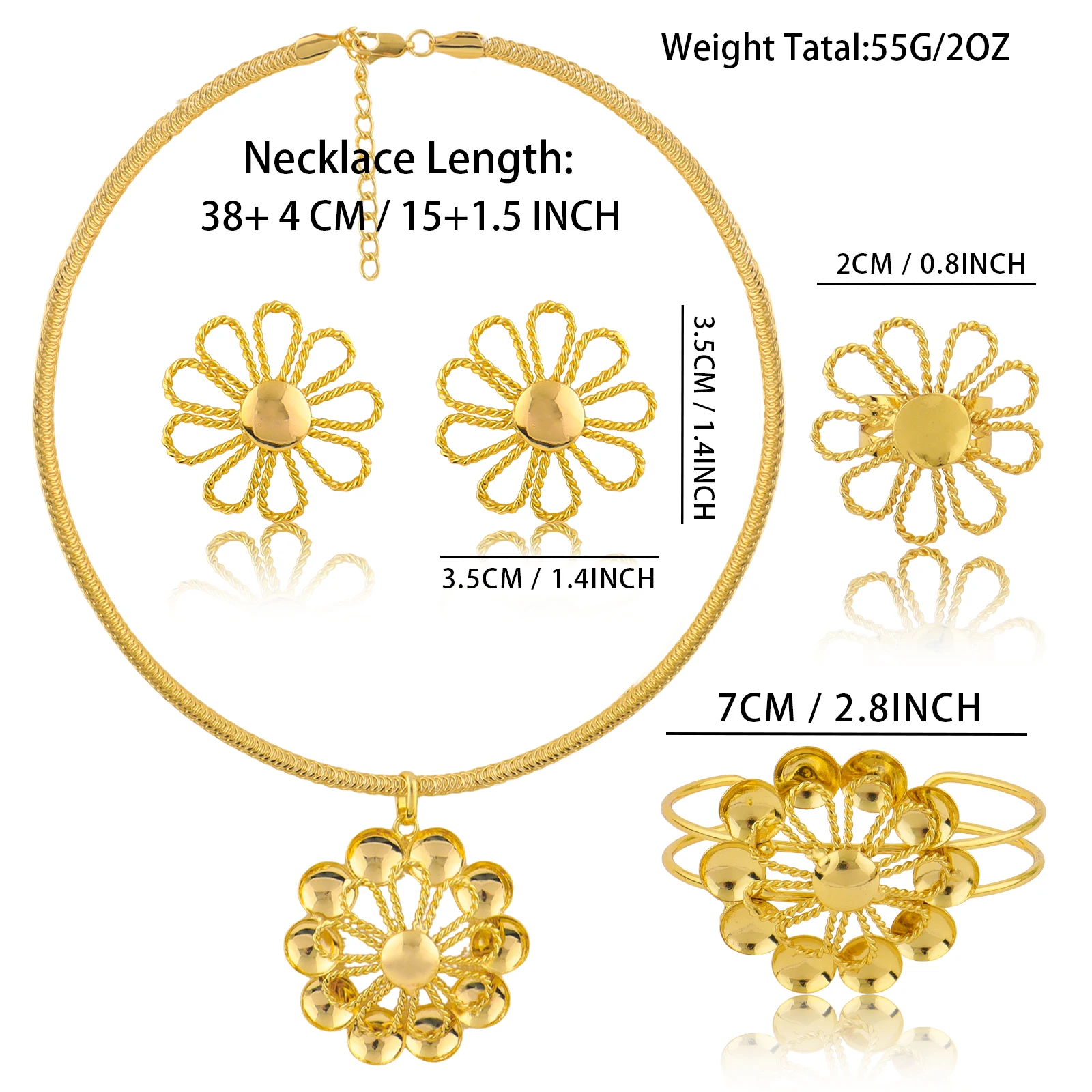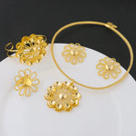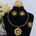 Gold Color Charms Necklace Earrings Pins Bracelet Ring Set for Women Fashion Gold Plated Party Wedding Bride Jewelry Gift