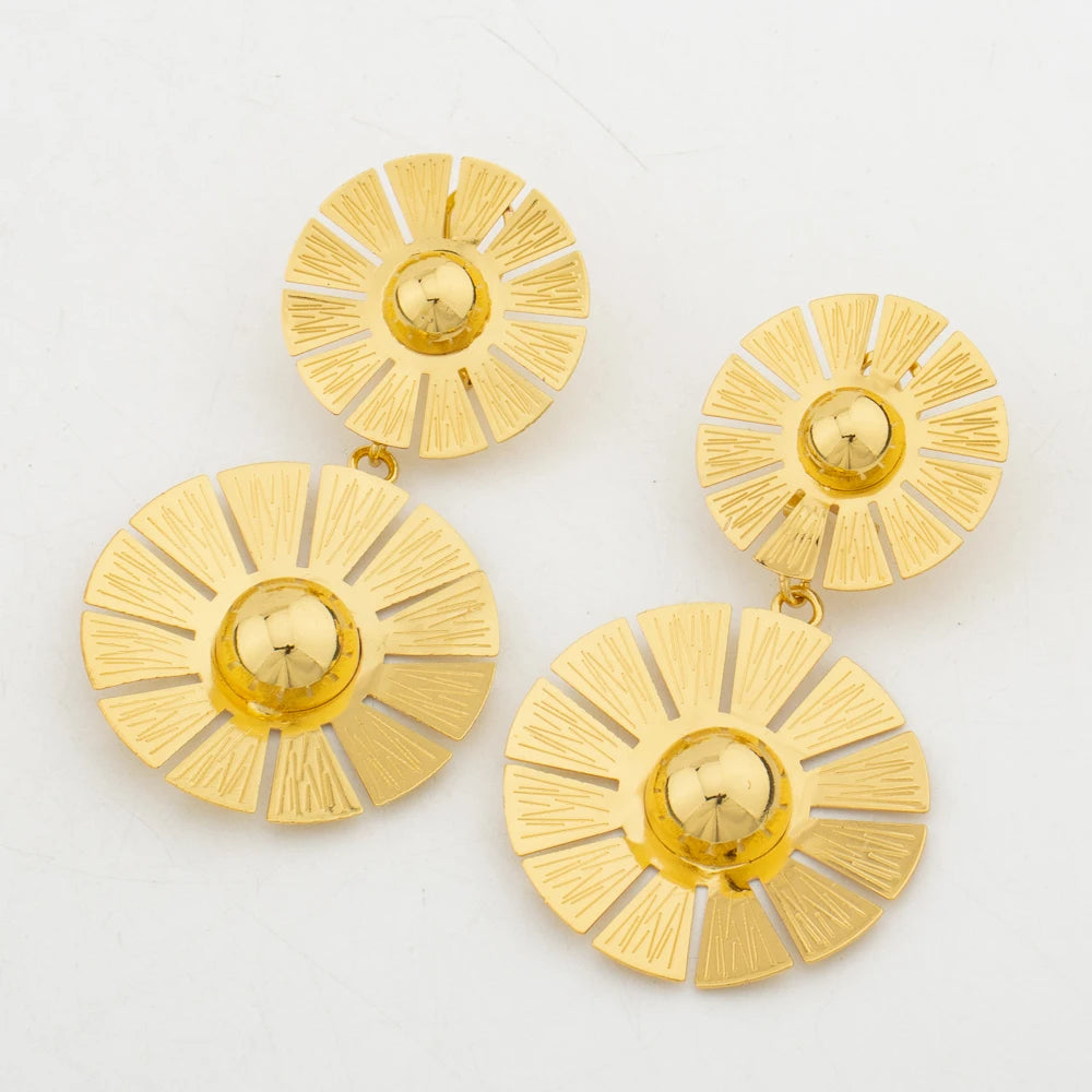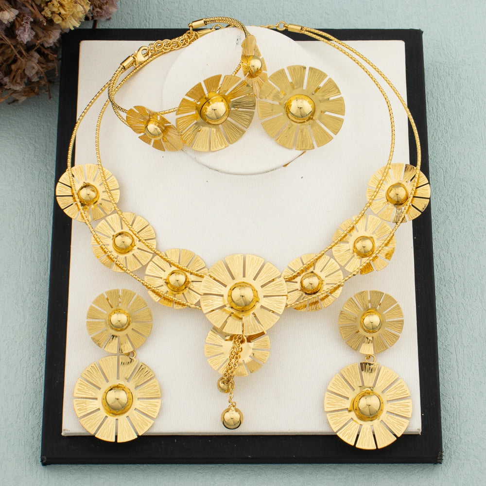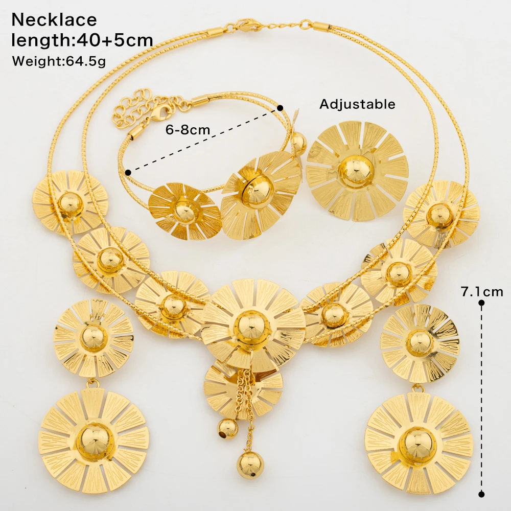 Large Round Pendant Earrings Dubai 18K Gold Plated Jewelry Set for Women Necklace Bangle Ring African Bride Christmas Party Gift