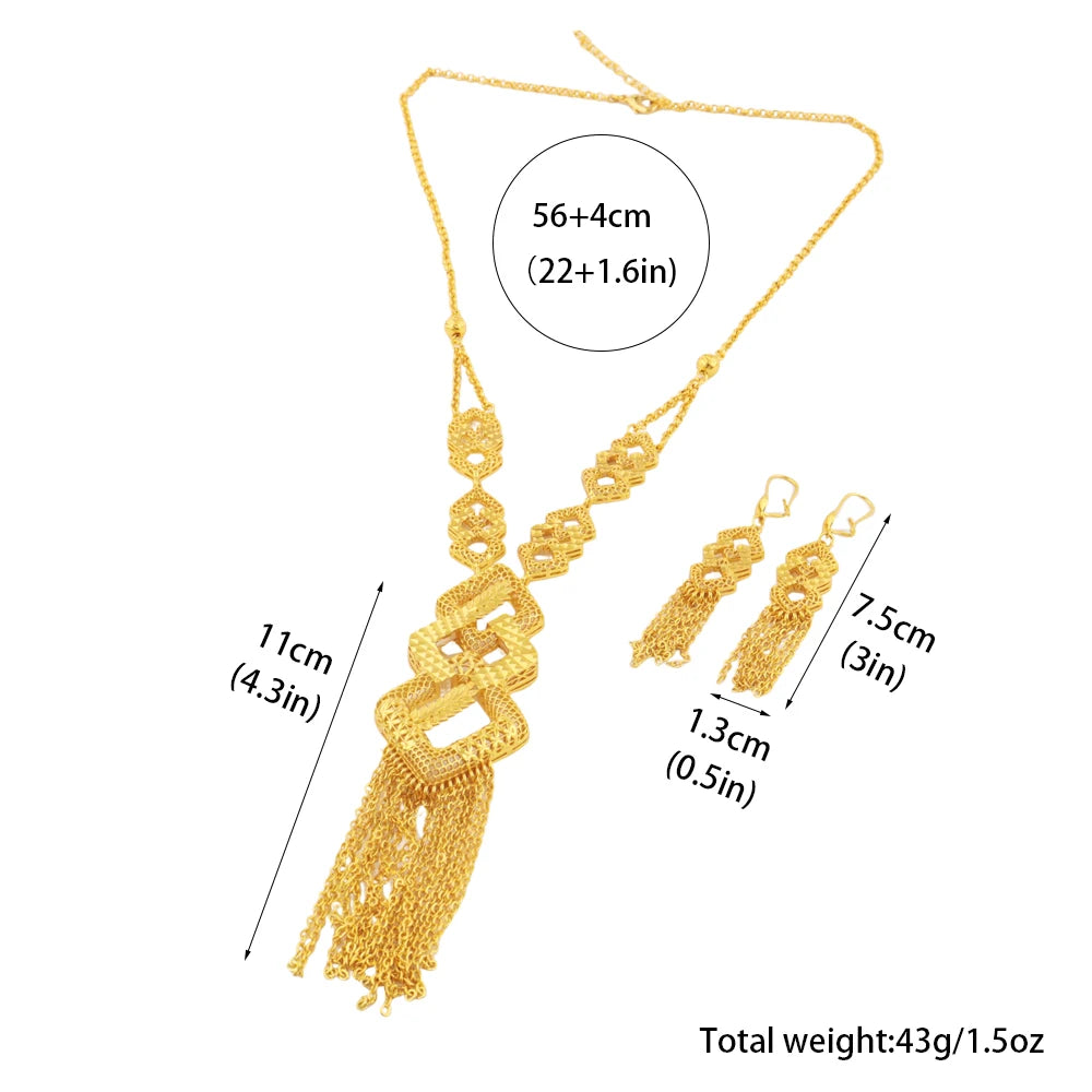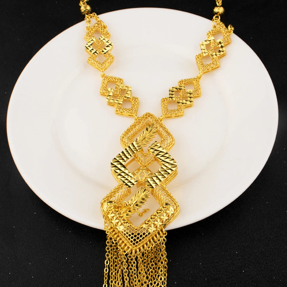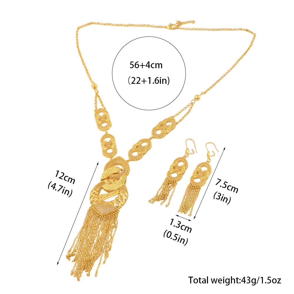 Luxurious 18k Gold Long Chain Necklace Earrings Set Women Dubai Tassel Noble Nigerian Jewelry Wedding Party Favors