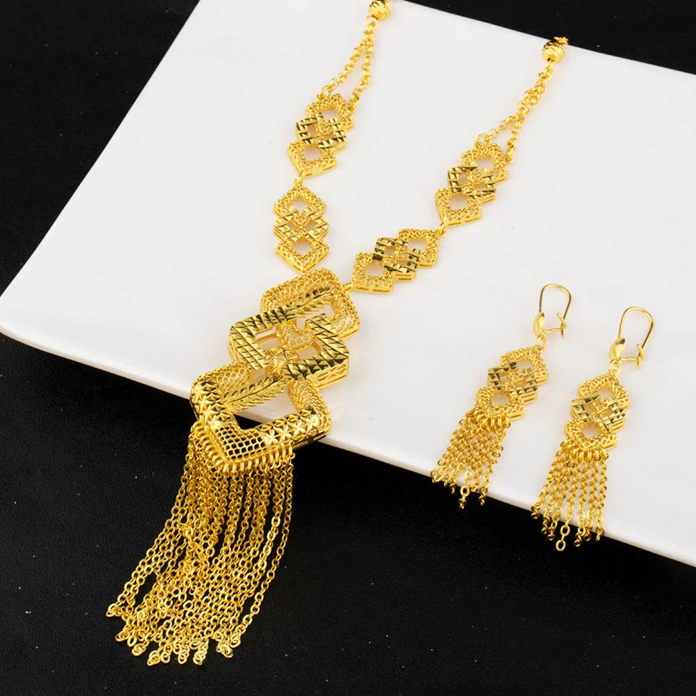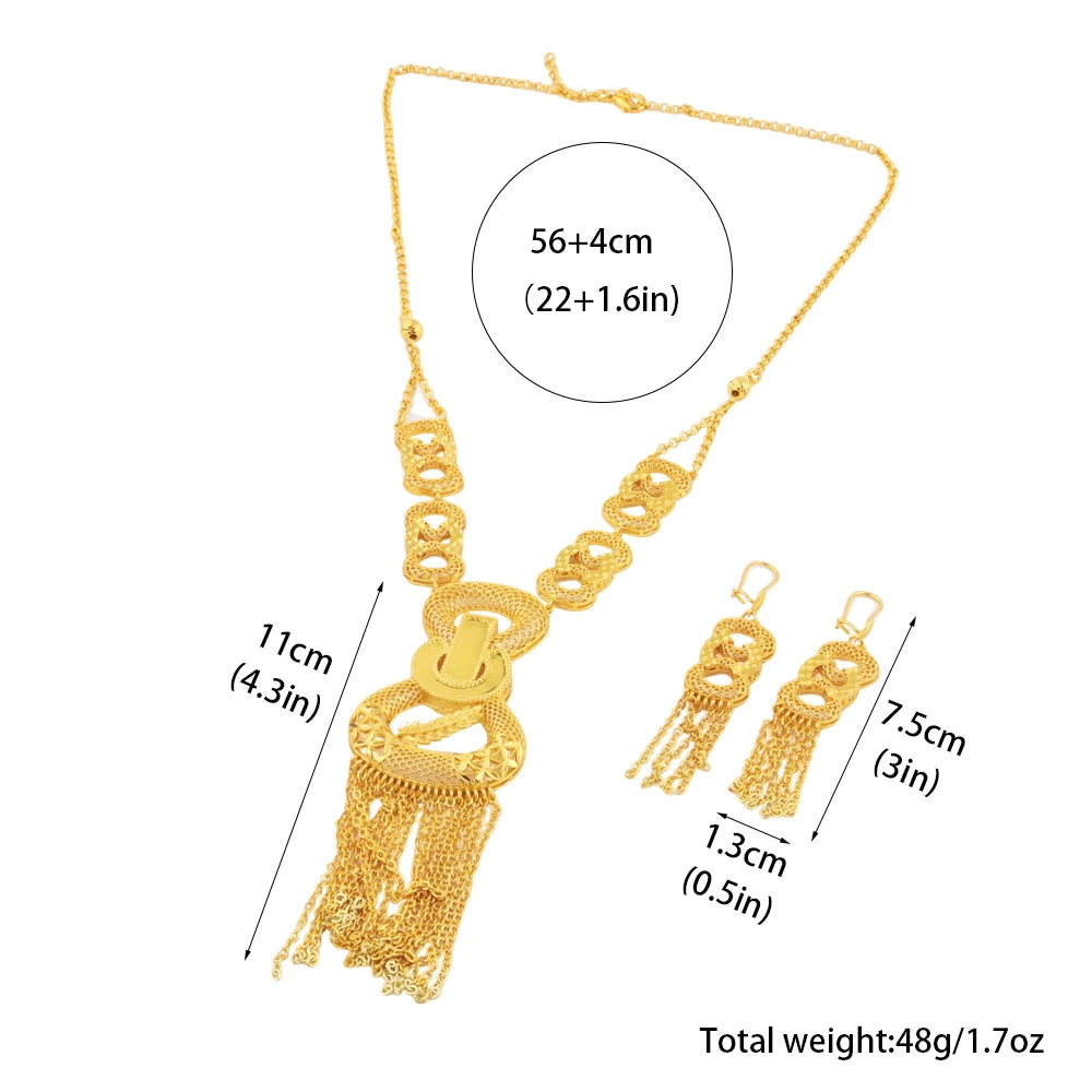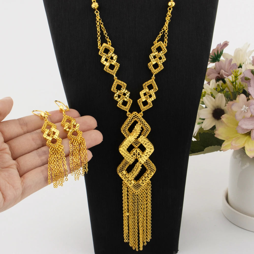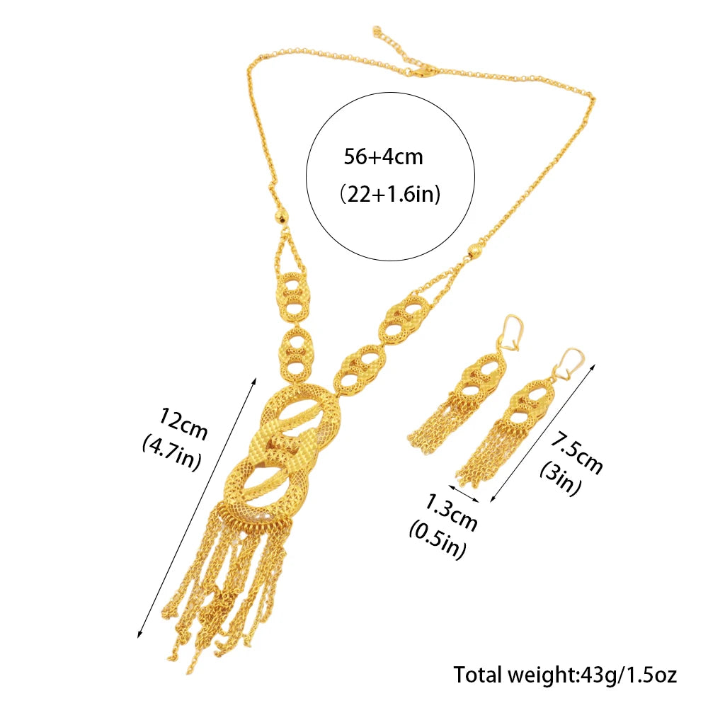 Luxurious 18k Gold Long Chain Necklace Earrings Set Women Dubai Tassel Noble Nigerian Jewelry Wedding Party Favors