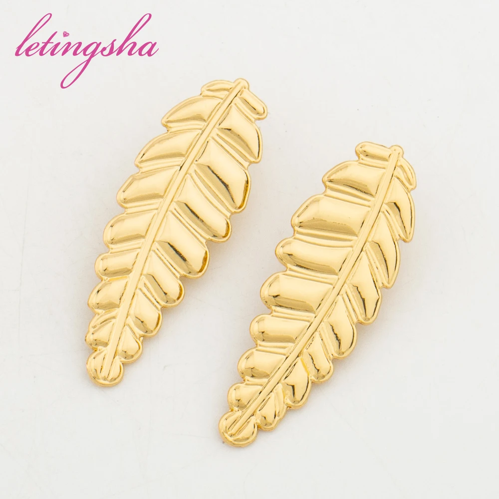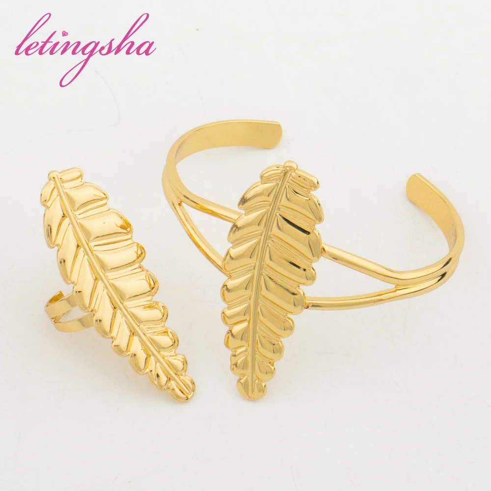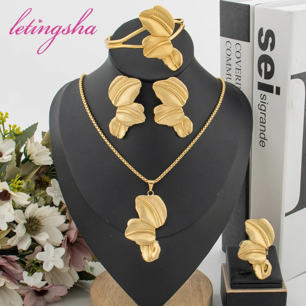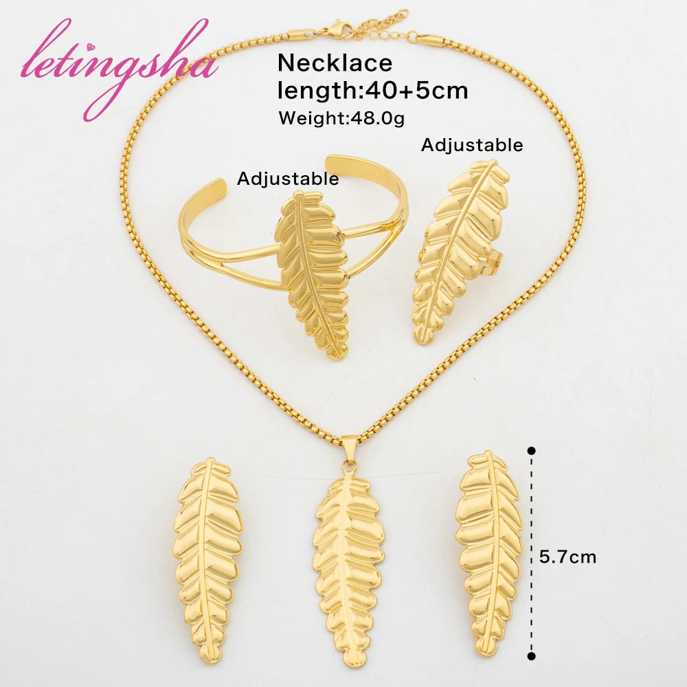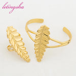 Luxury 18K Gold Color Leaf Necklace Earrings Bangle Ring Wedding Bridal Fashion Jewelry Set African Jewelry Set Party Gift