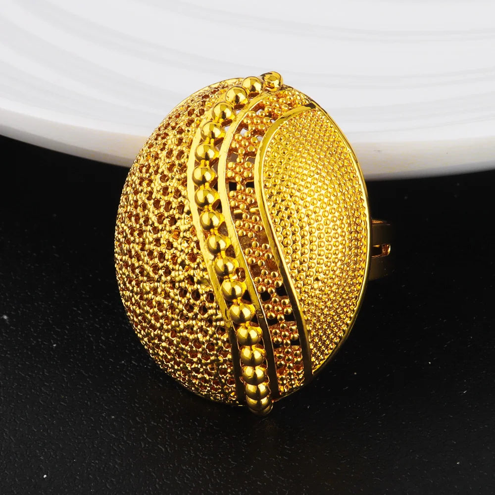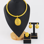Luxury Shining Gold Color Necklace Earrings Ring Set for Women Round Water Drop Shape Jewelry Gift Party Wedding Banquet