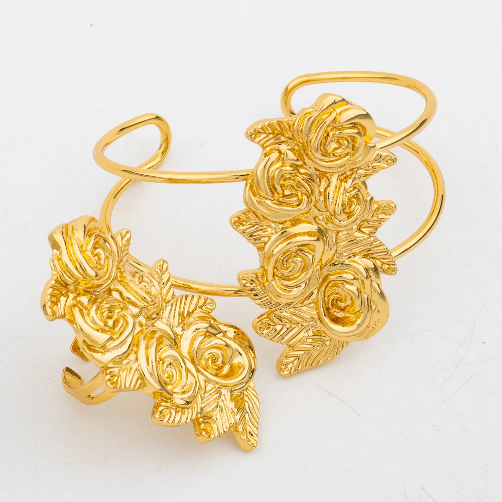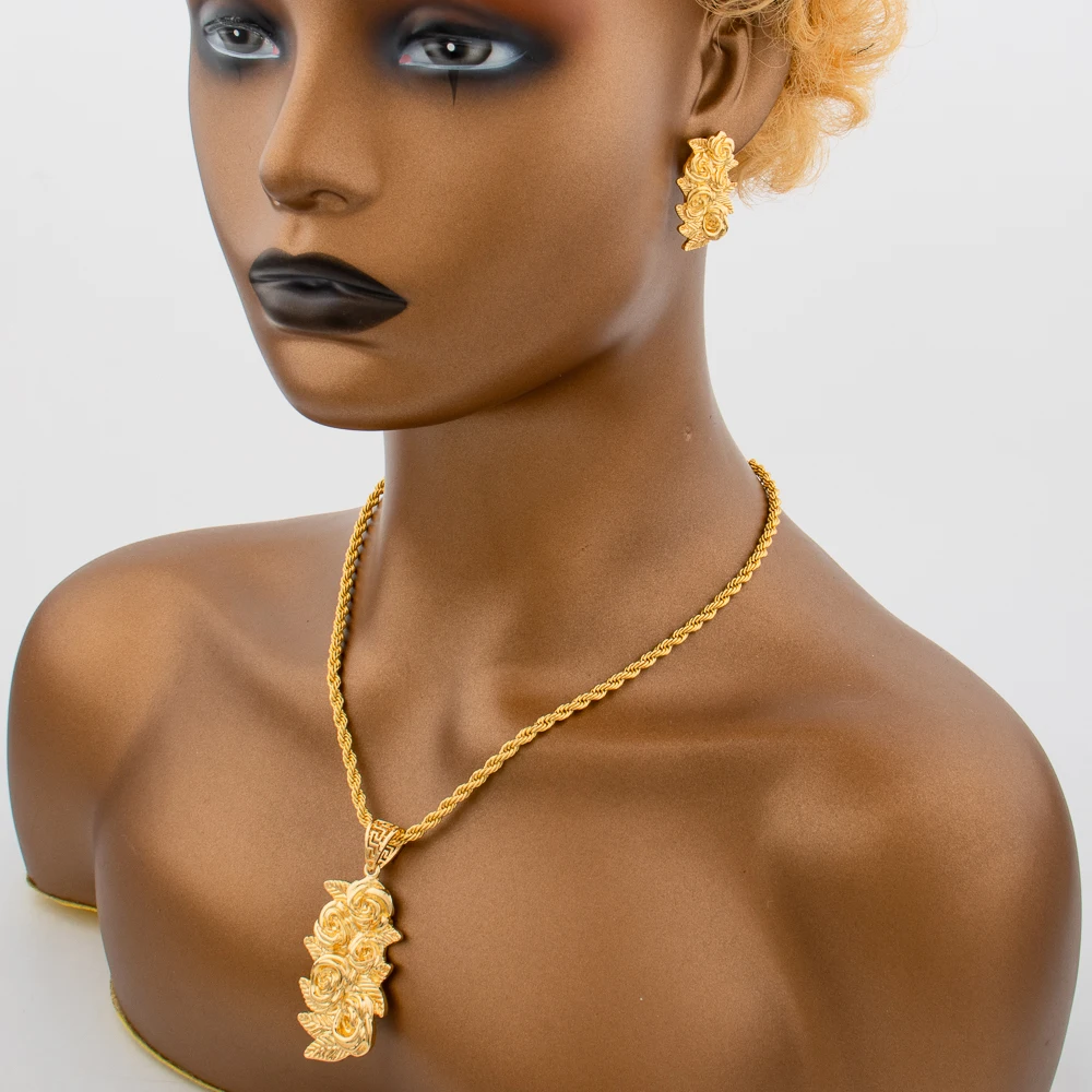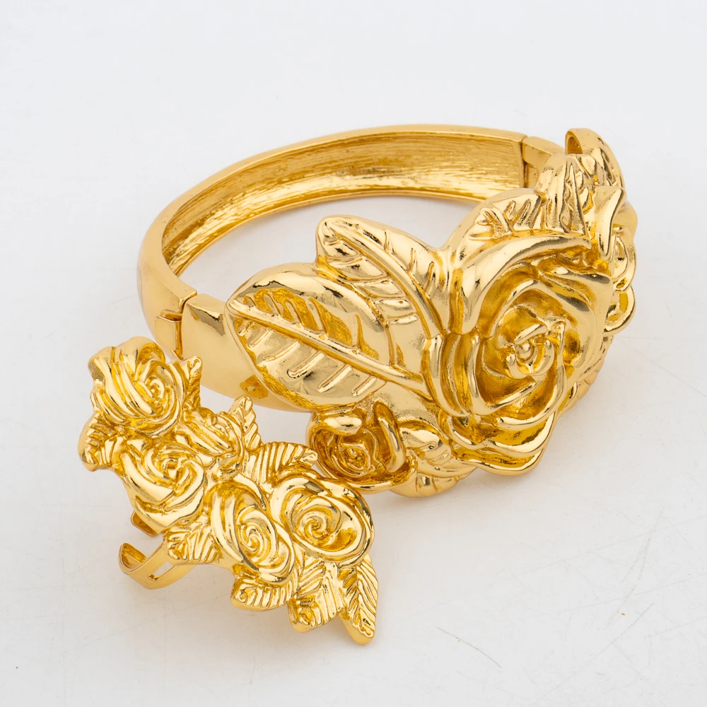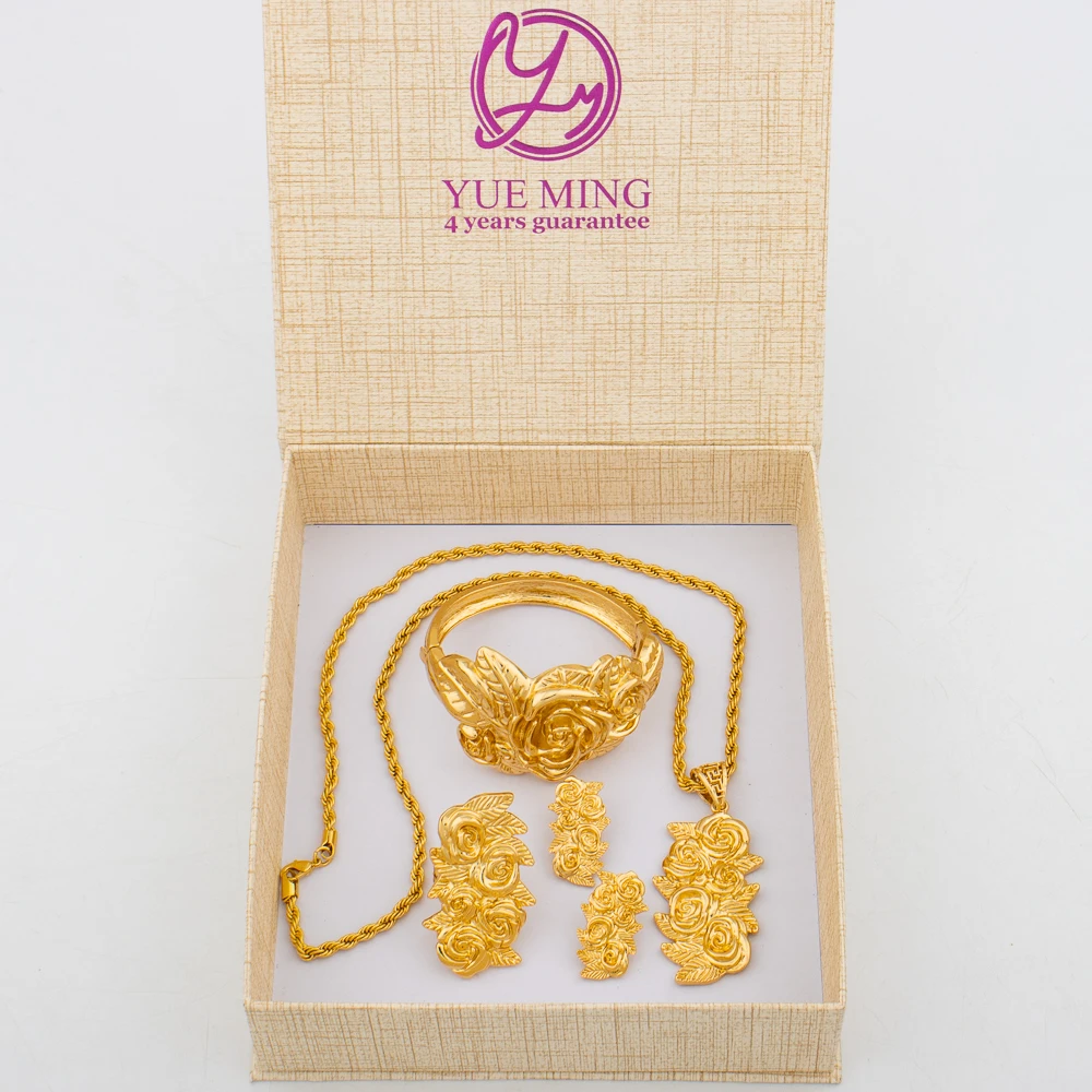 New Arrivals Gold Color Jewelry Sets For Women Fashion Earrings Necklace Italy Bangle Ring Flower Pendant Bride Wedding Party