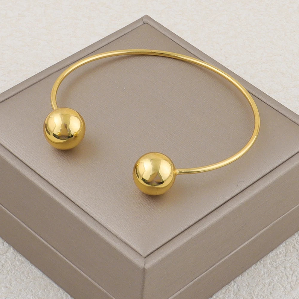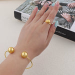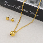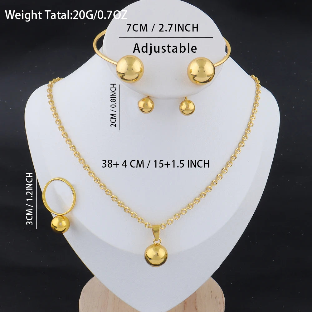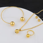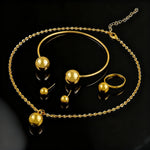 New Fashion Stainless Steel Metal Bead Ball Necklace Bracelet Earrings Ring For Women Gold Color Waterproof Jewelry Set Gift
