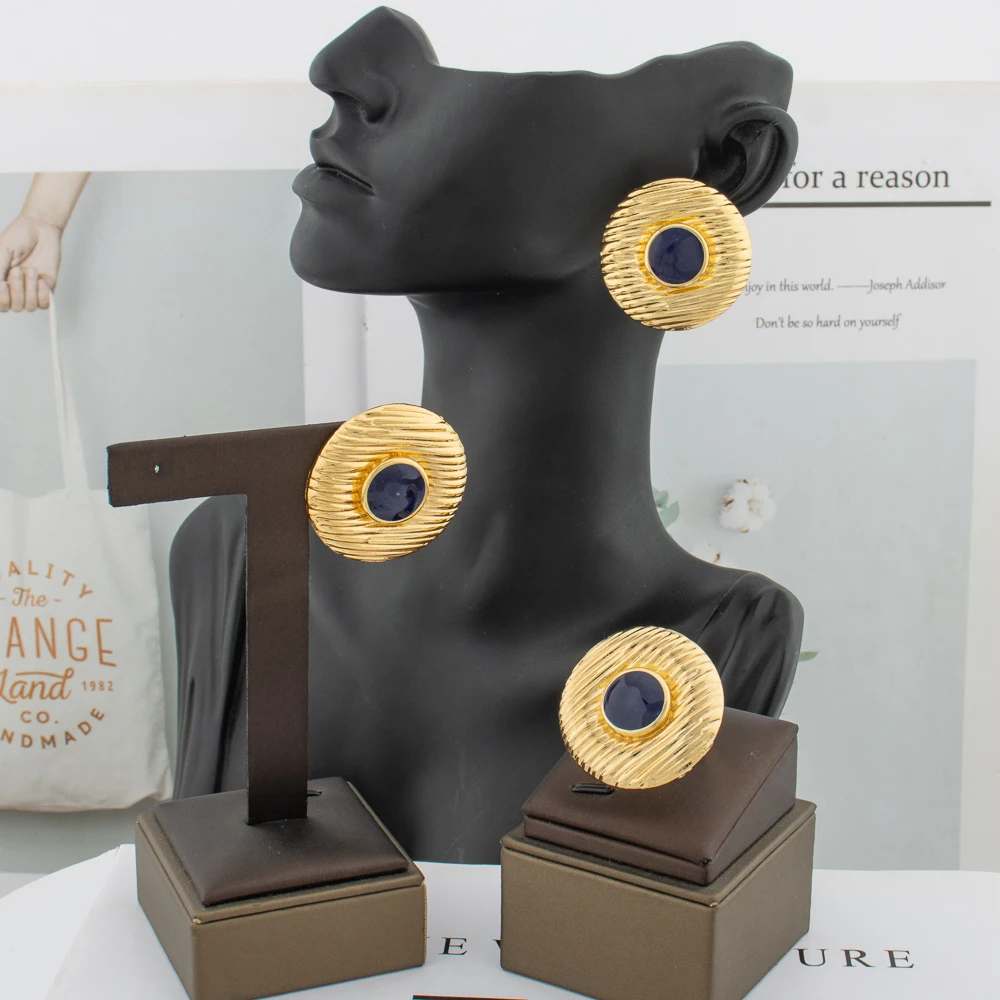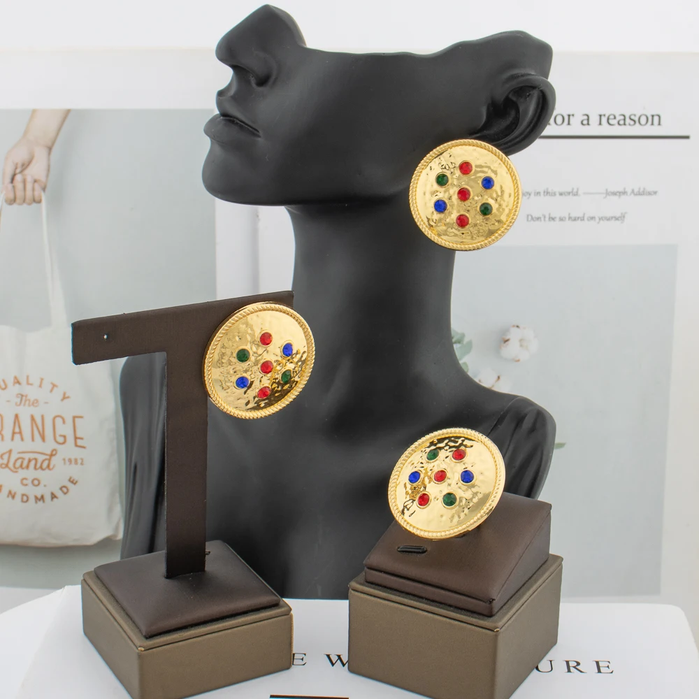 Trendy Colorful Earrings Ring for Women African Turkish Jewelry Set Ladies Elegant Hoop Clip Earrings Engagement Bridal Jewelry