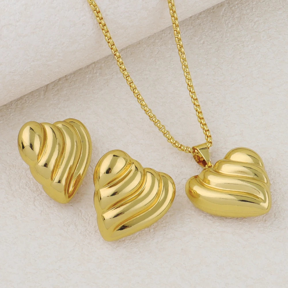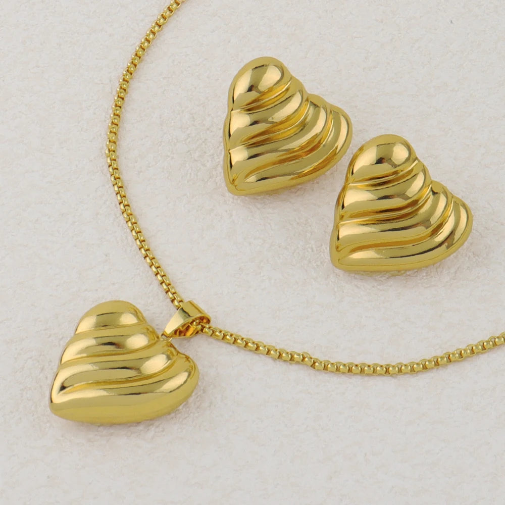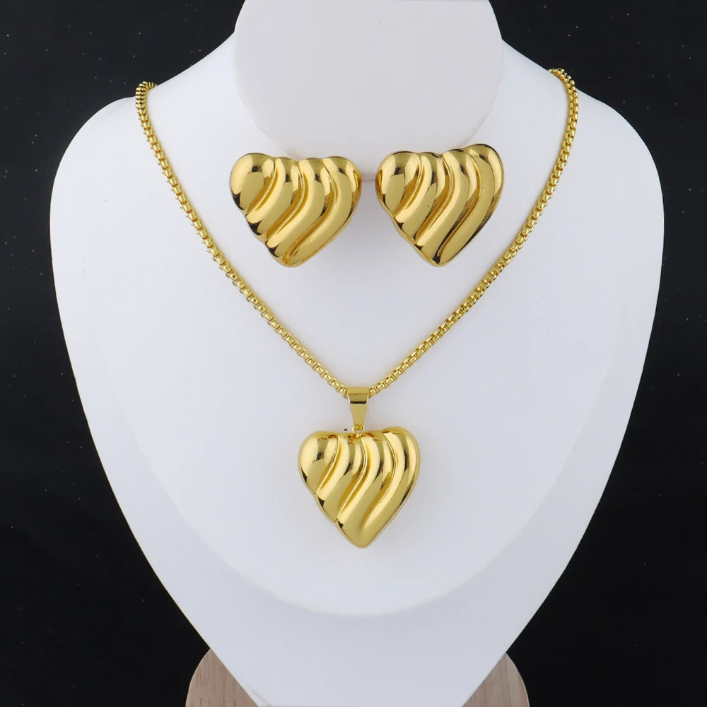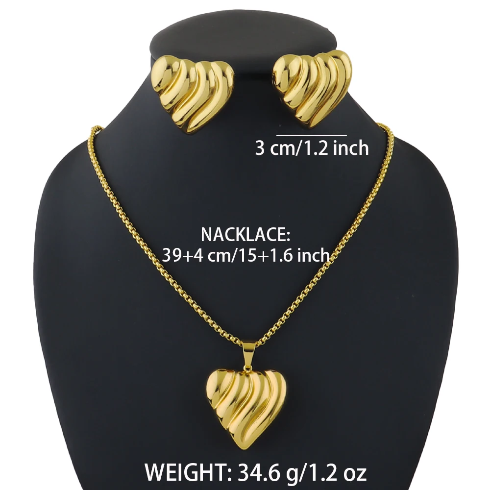 Trendy Heart Pendant Necklace Stud Earring Jewlery Sets For Women Charm Metal Romantic Jewlery Bridal Party Gifts