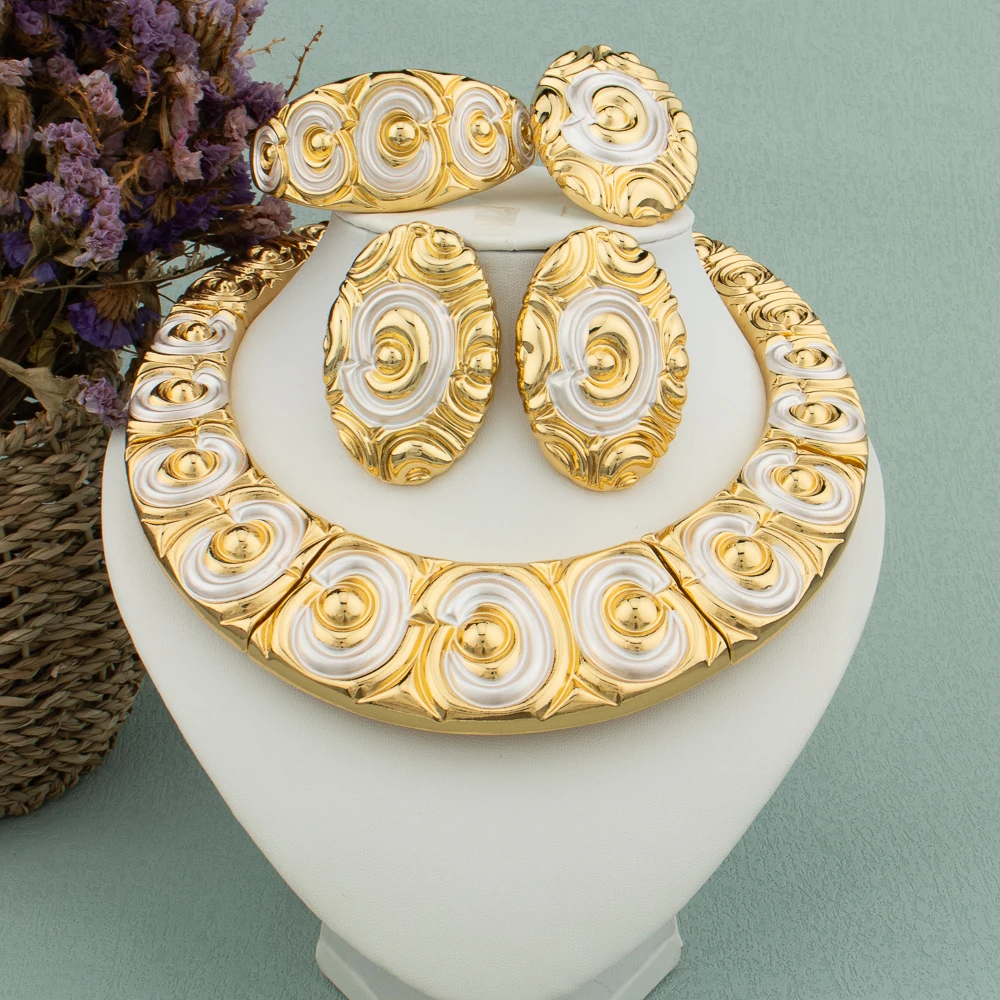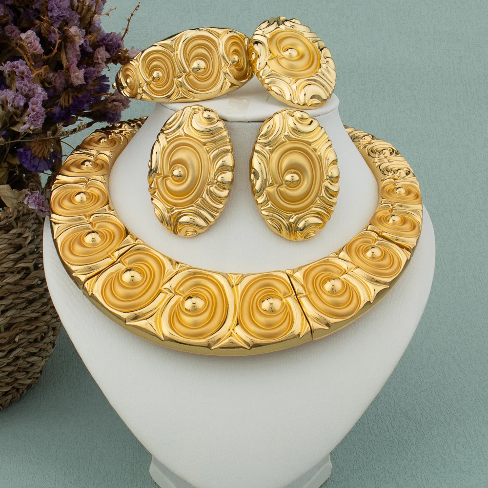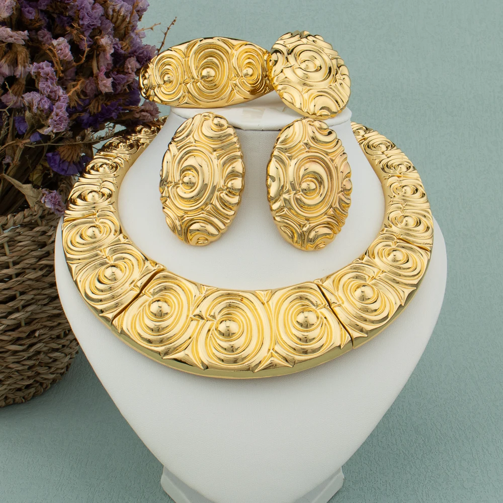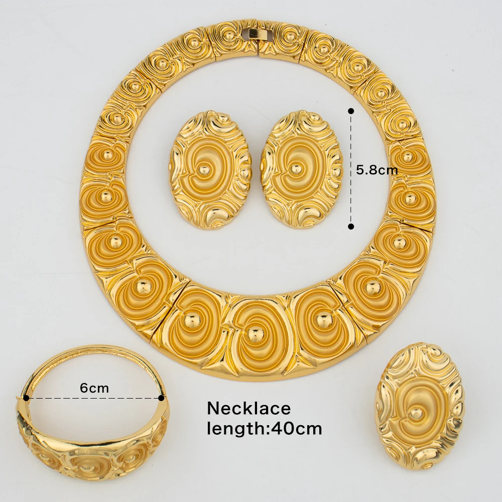 Dubai Big Jewelry Set Design for Women Wedding Bride Necklace Brazili Gold Plated Collor Earrings Bracelet Ring for Party Gift