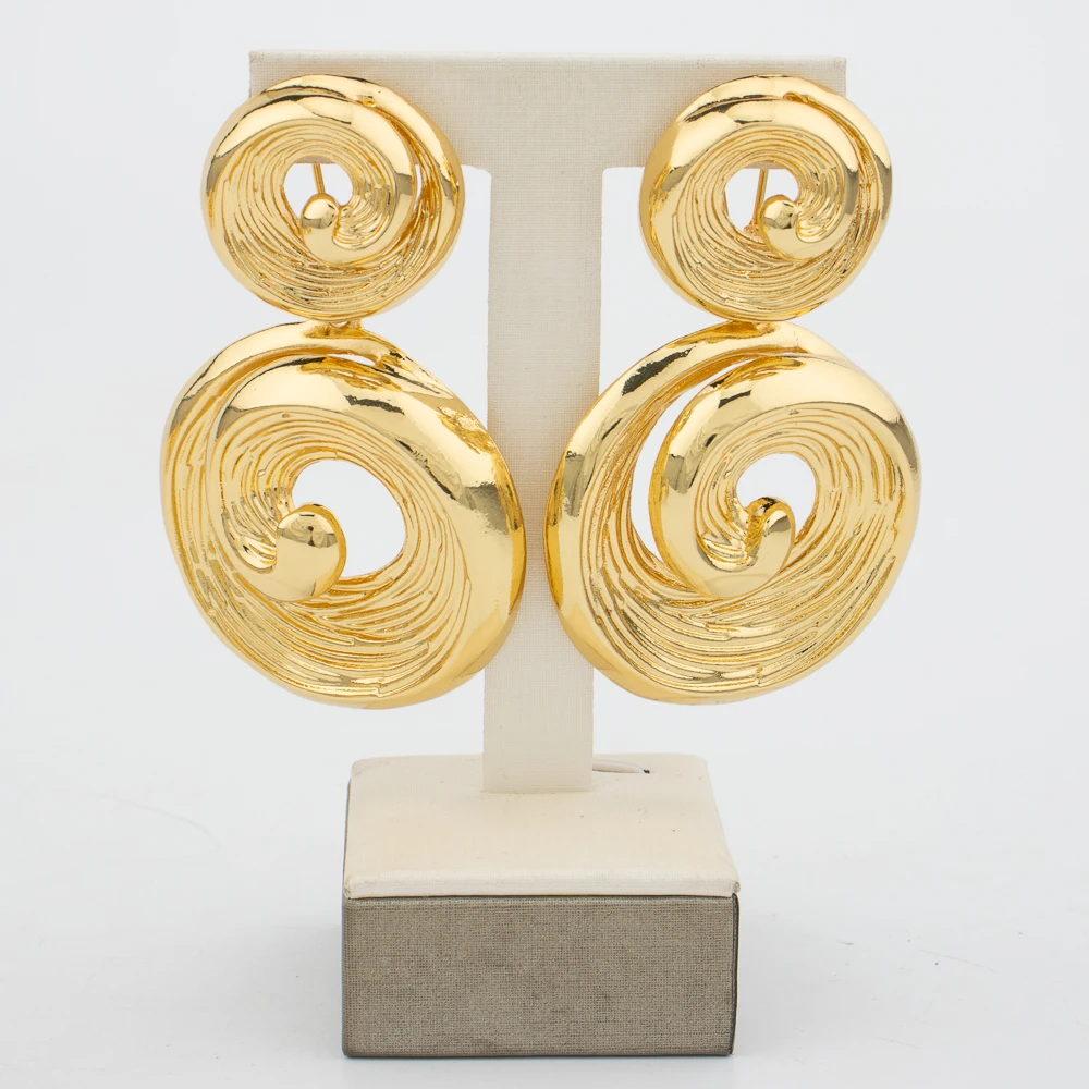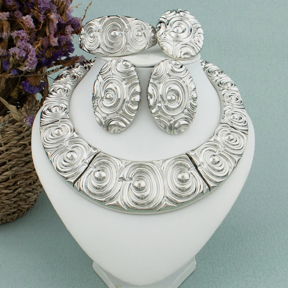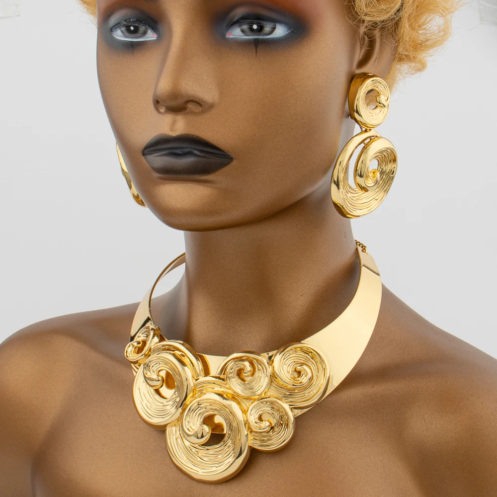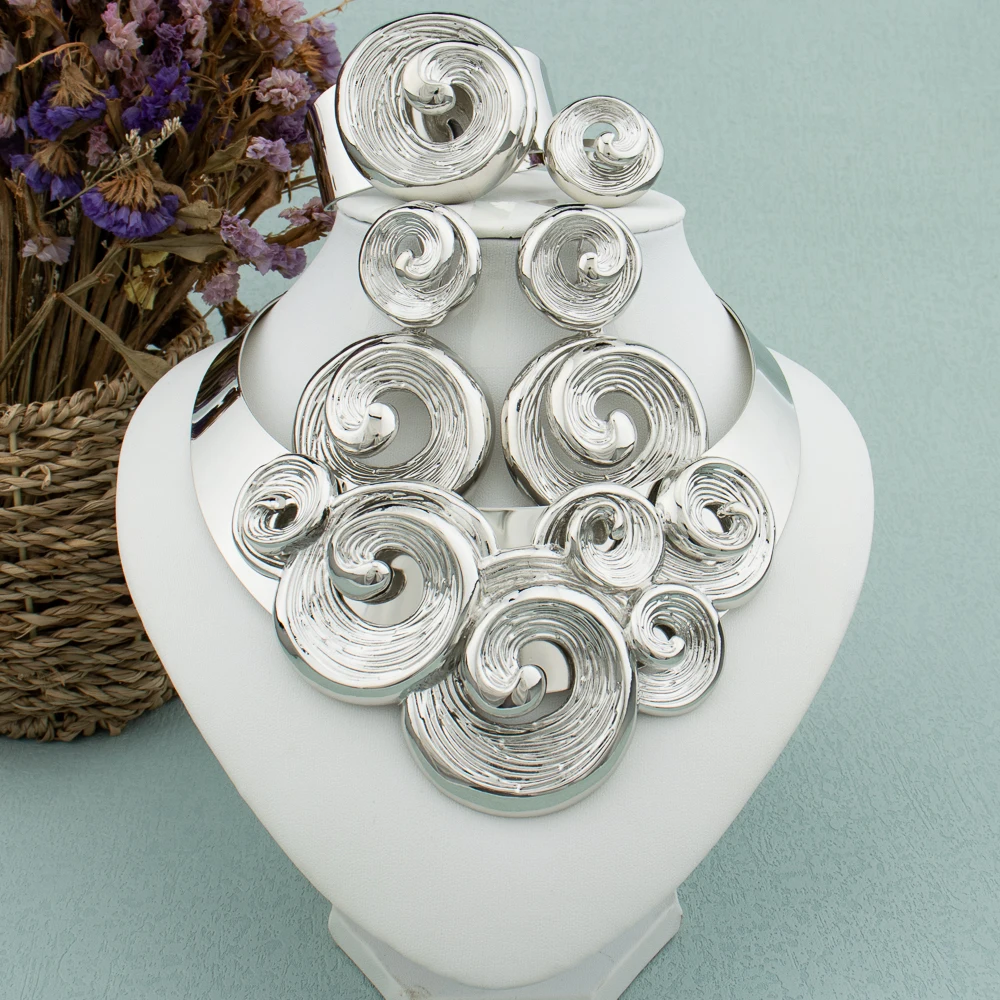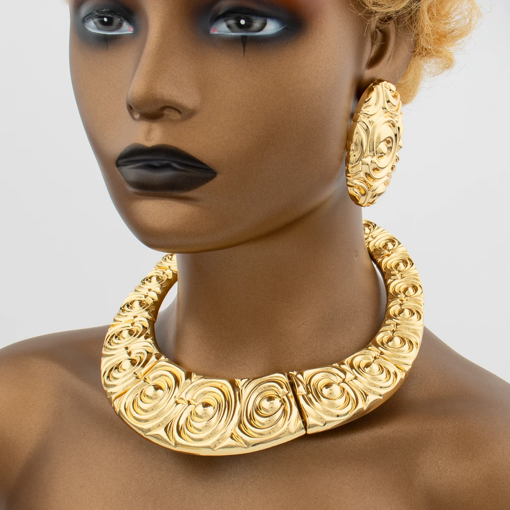 Dubai Big Jewelry Set Design for Women Wedding Bride Necklace Brazili Gold Plated Collor Earrings Bracelet Ring for Party Gift