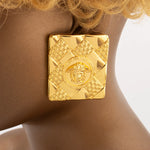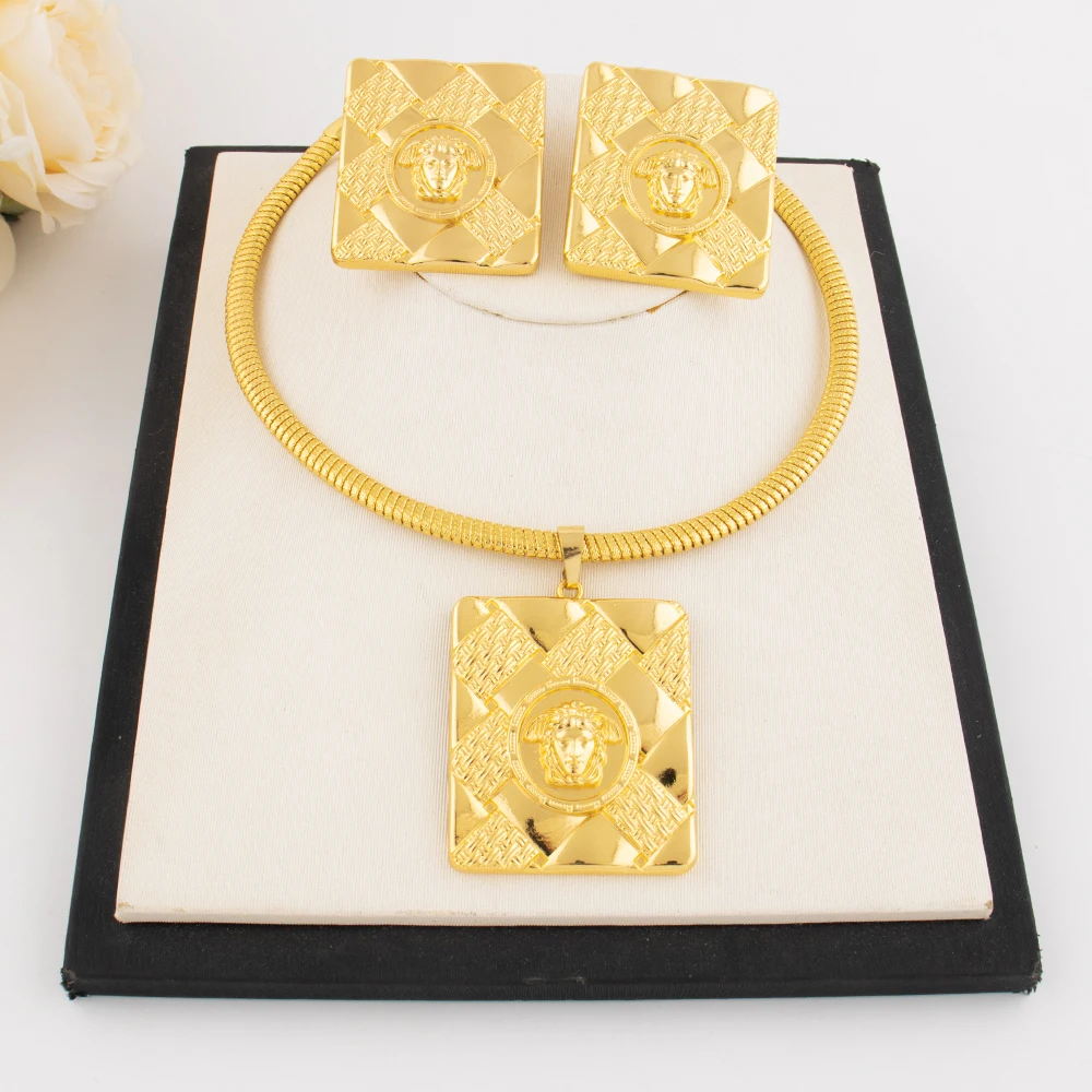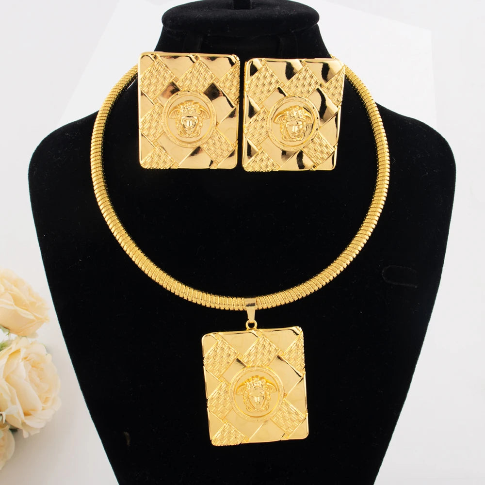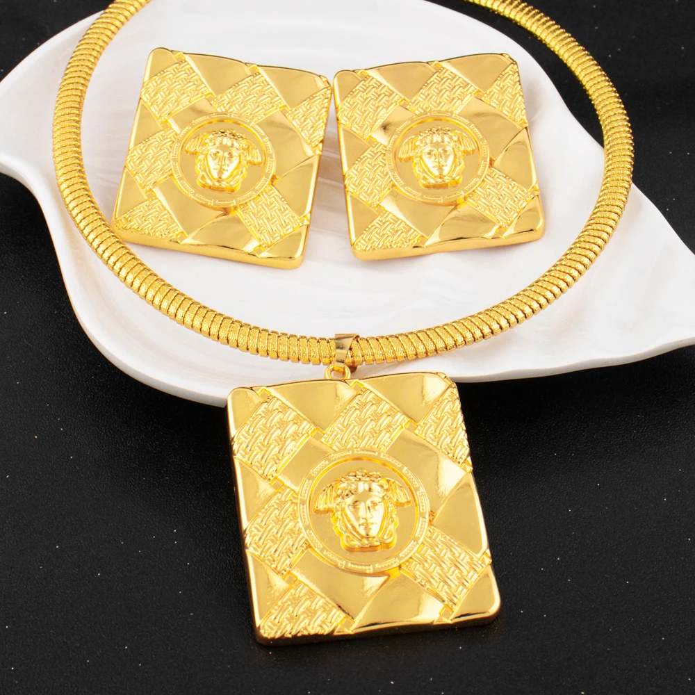 ElegantGold Plated Necklace Earrings Large Size Square Design 24K Gold Plated for Women Jewelry for Party Wedding Gifts