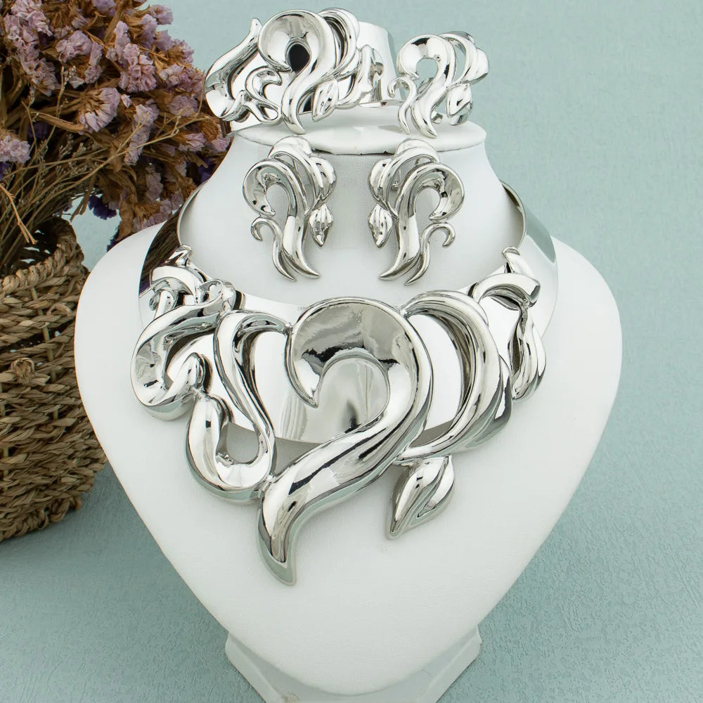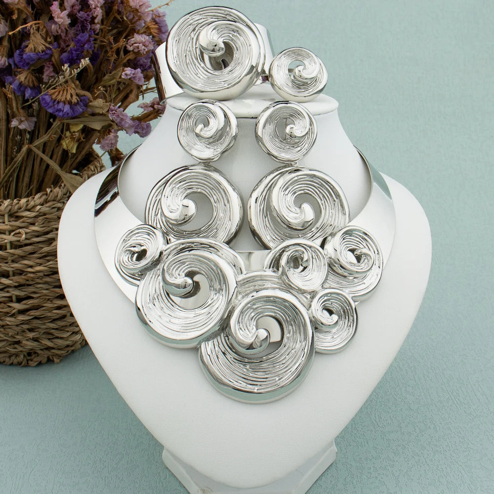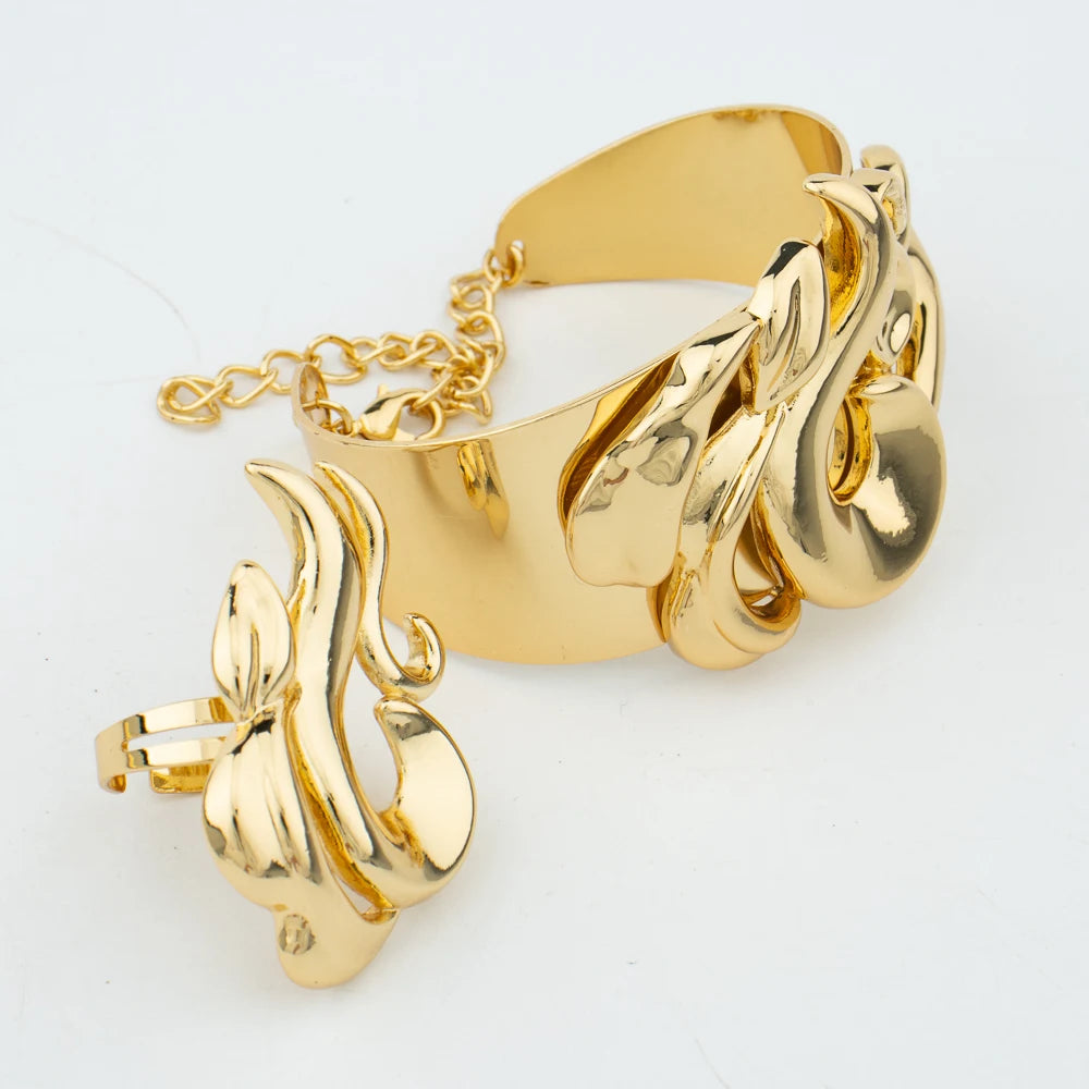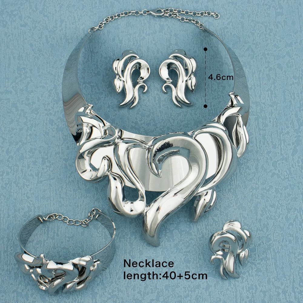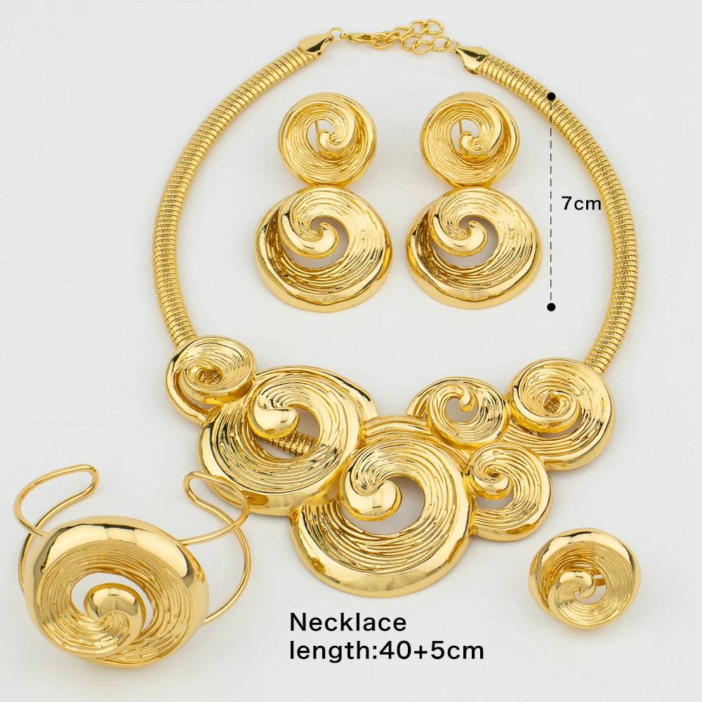 Large Jewelry Set for Wedding Bride Women Gold Plated Necklace Copper Collor Earrings Bracelet Ring African Jewelry Party Gift