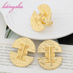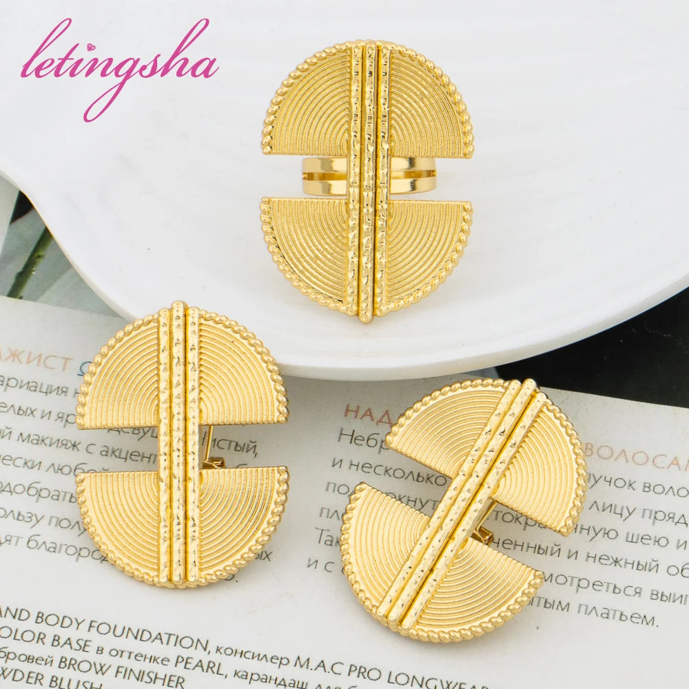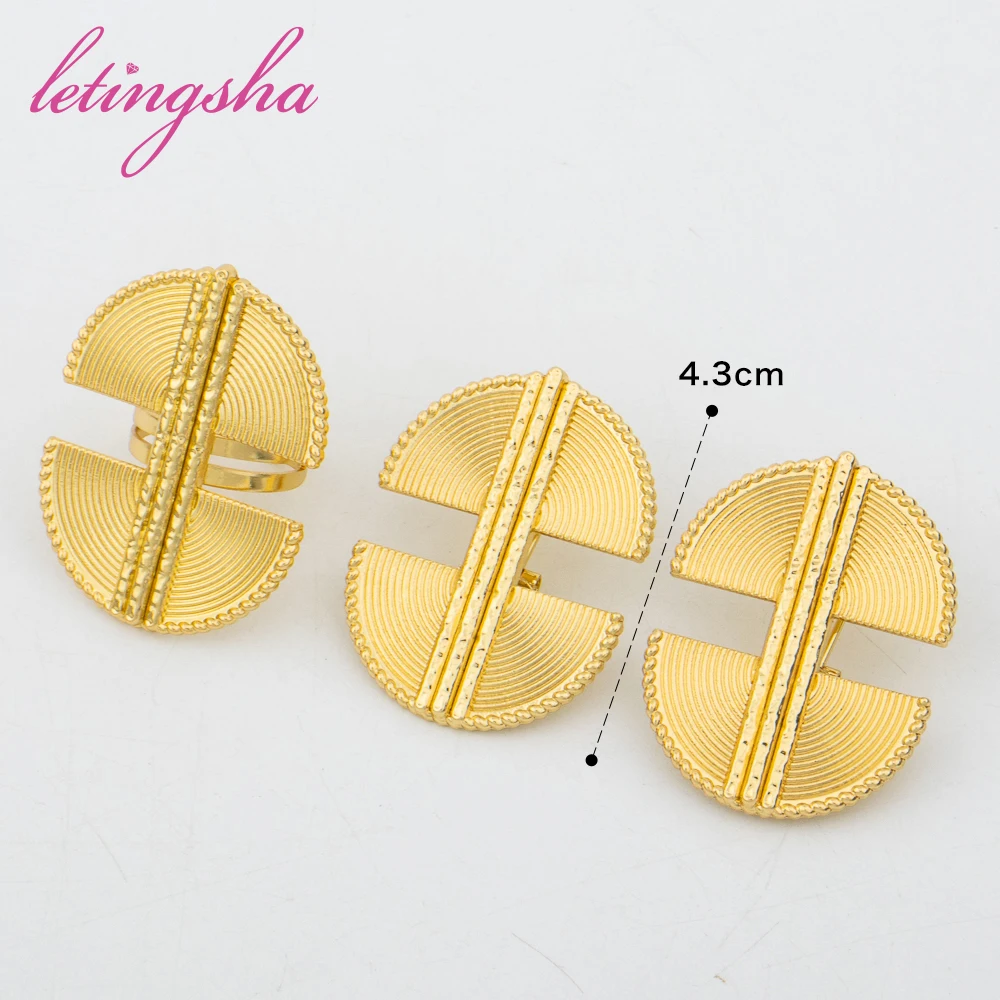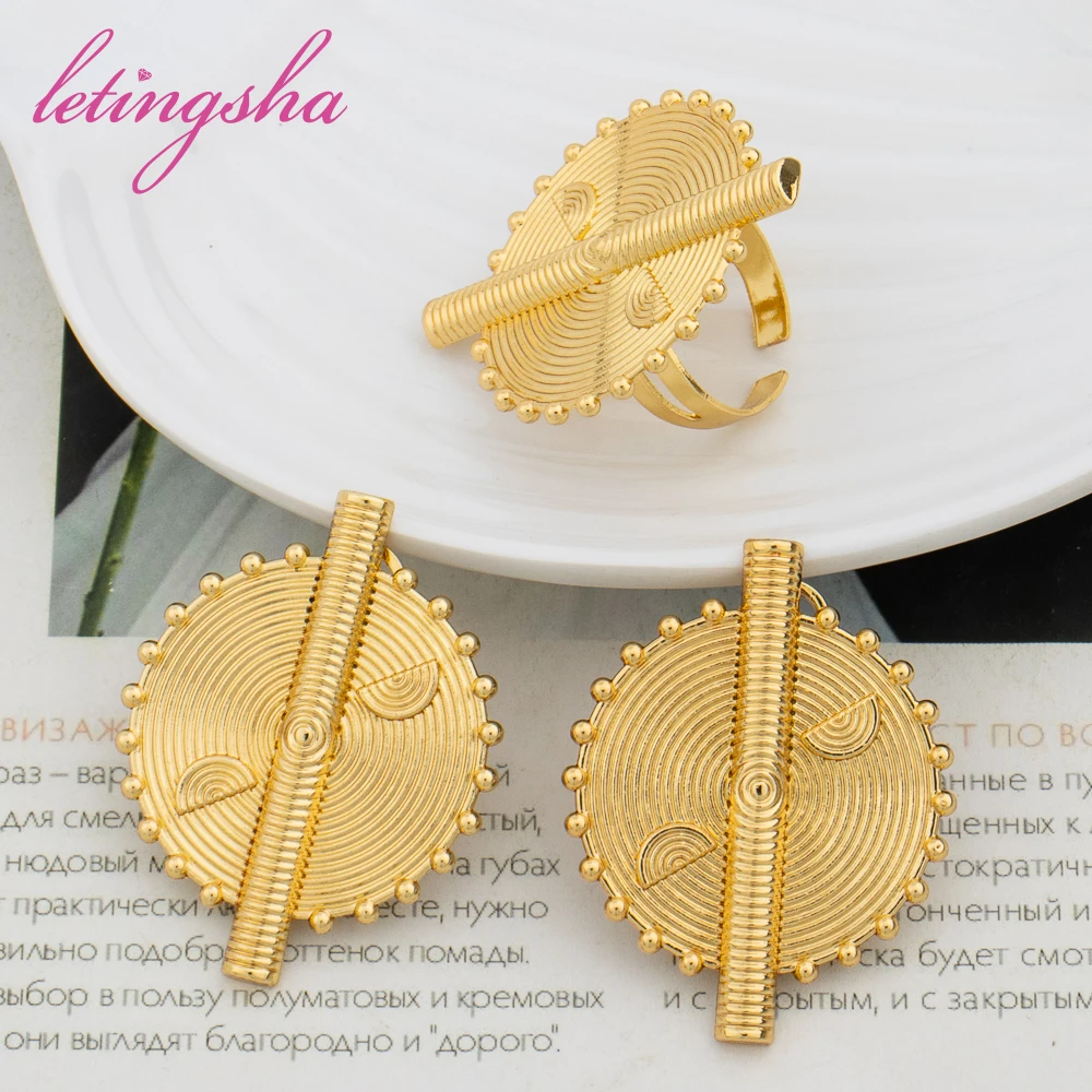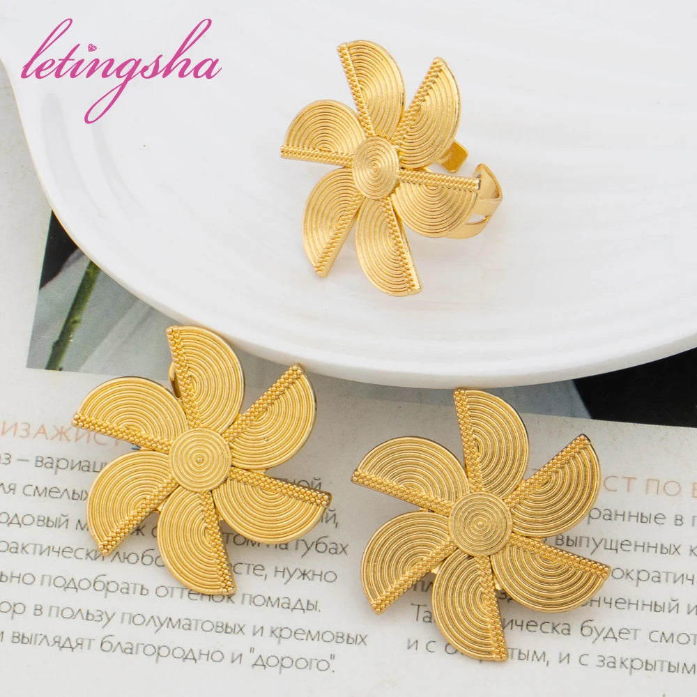 Dubai Gold Color Luxury Earrings and Rings Set African Ethiopian Jewelry Set for Women Fashion Wedding Jewelry Bride Party Gifts
