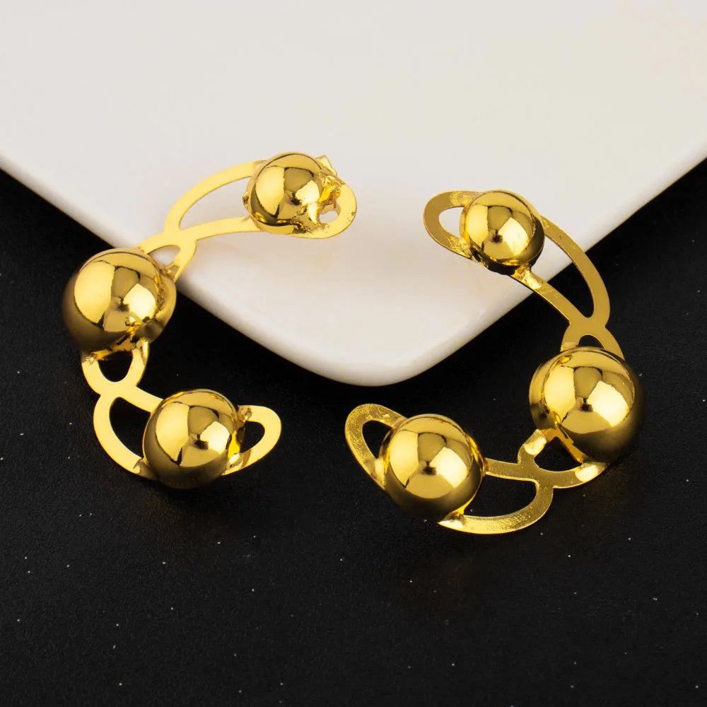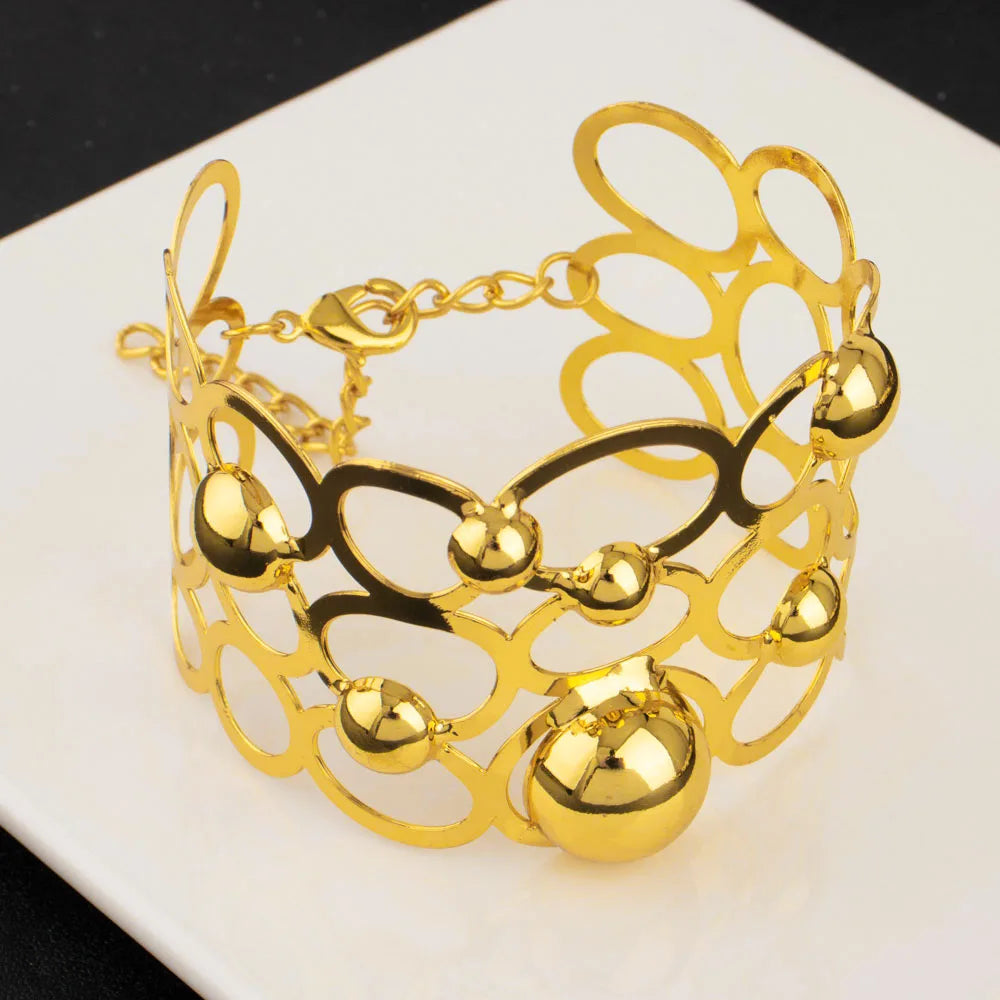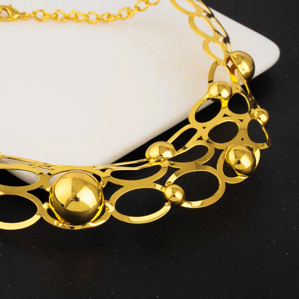 Dubai Luxury Jewelry Set For Women Nigeria Gold Plated Round Hole Necklace Earrings Bangle Bead Ring For Ethiopia Party Mother's