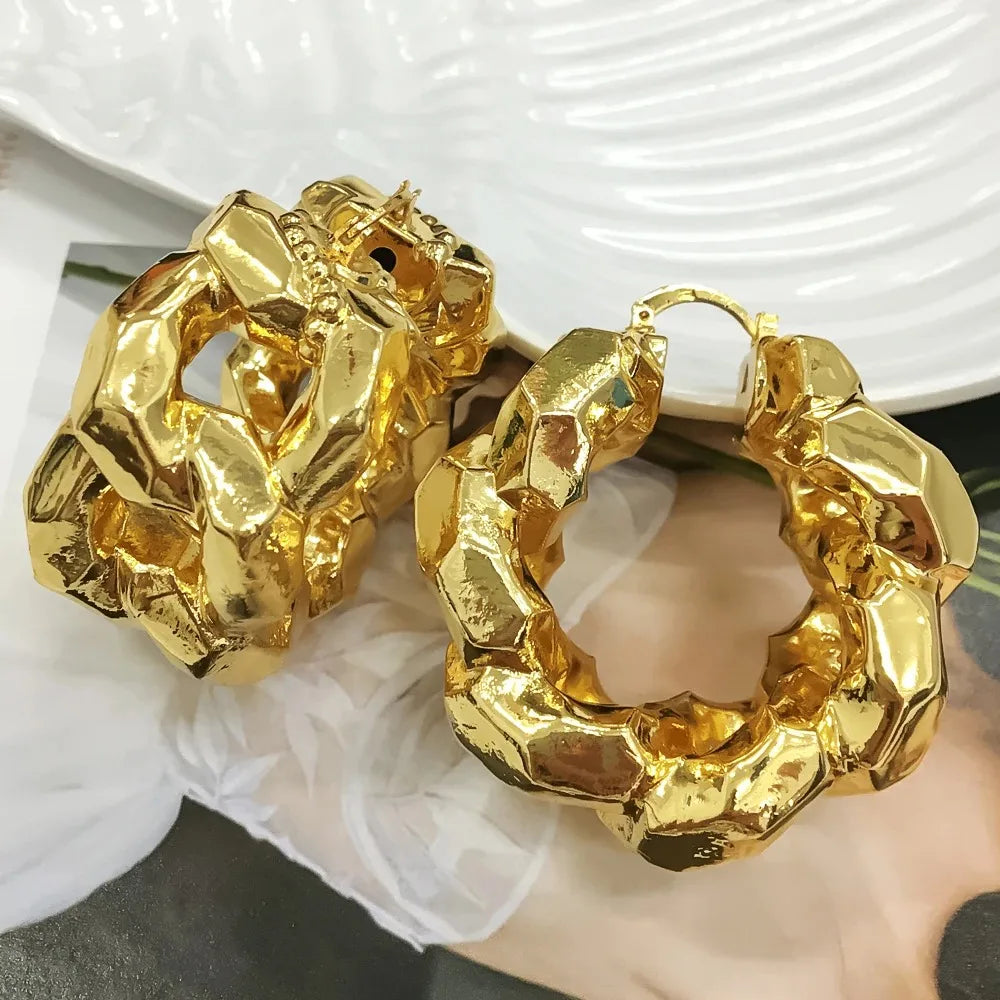 Fashion Classic Drop Women Trendy Gold Plated Earrings Brass Girls Chunky Small Golden Hoop Earrings
