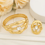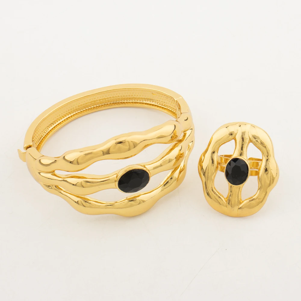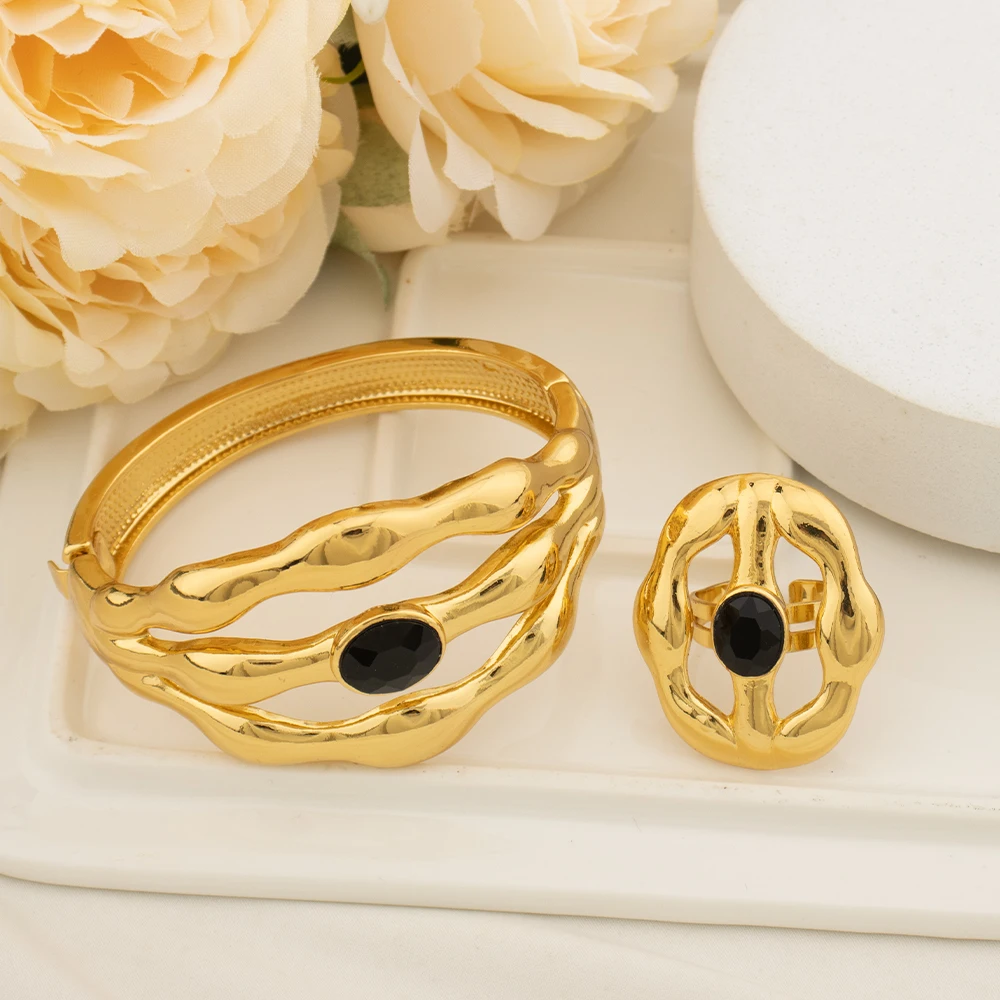 Luxury Gold Color Bracelet Dubai Woman Cuff Bracelet Female Bridal Wedding Designer Bangles with Ring For Women