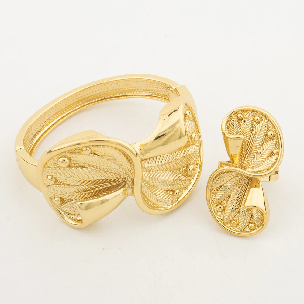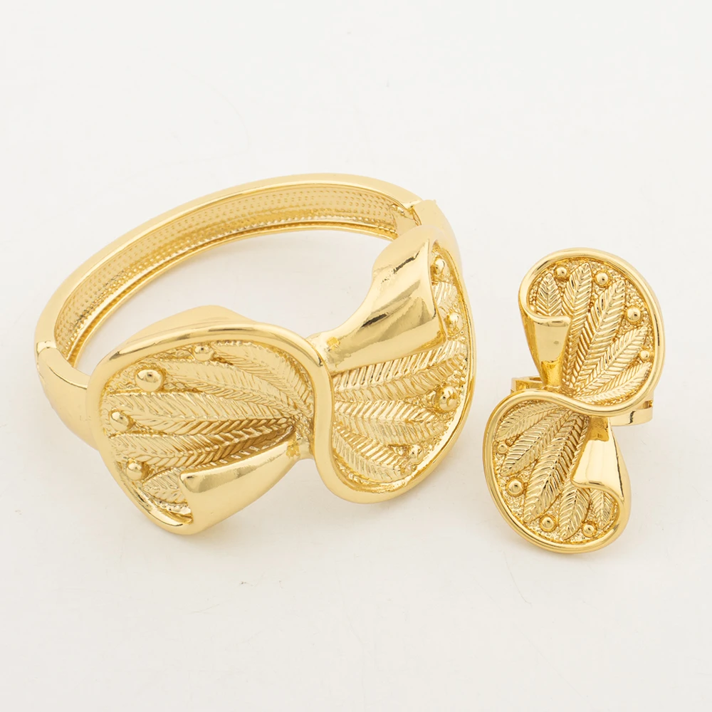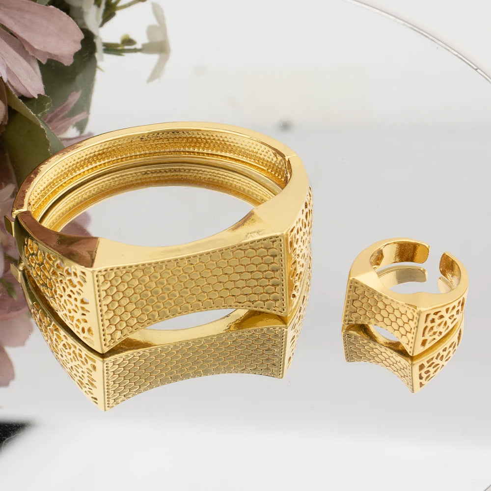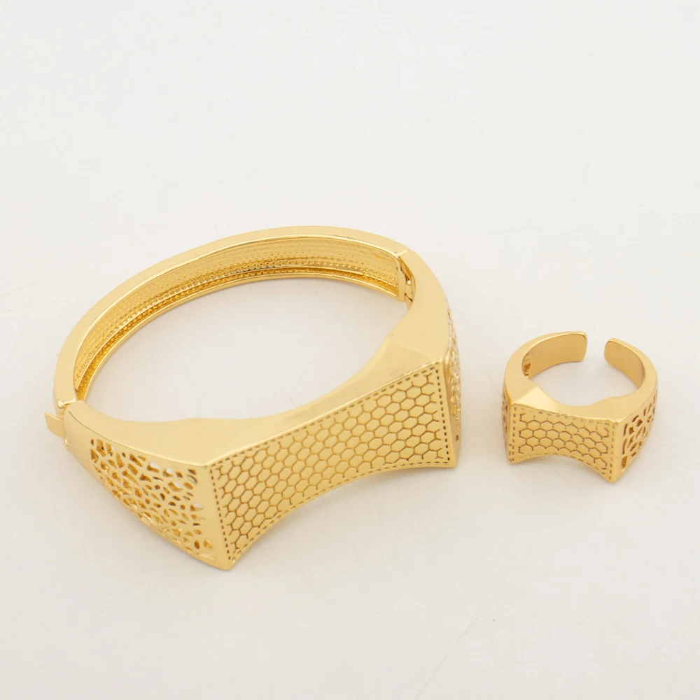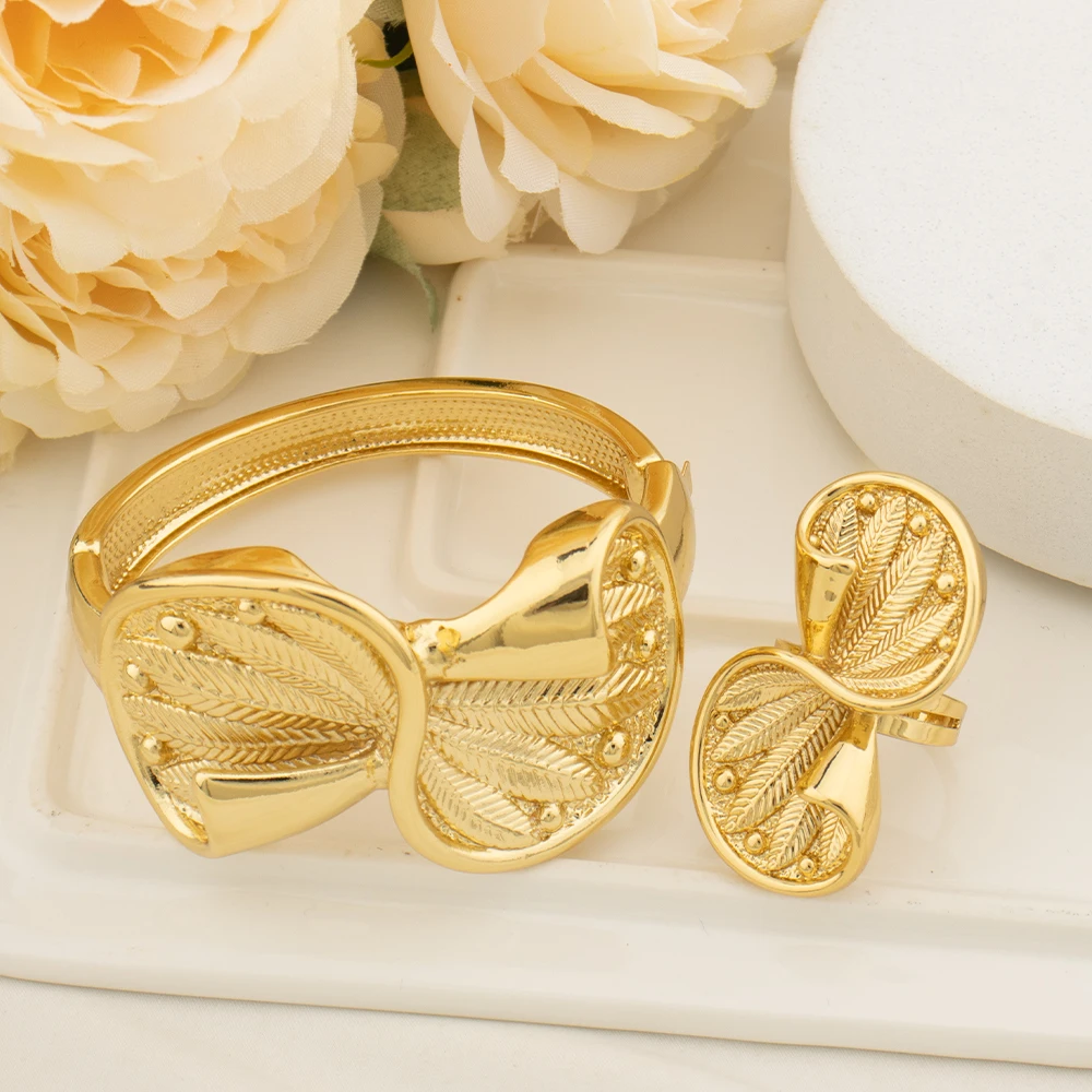 Luxury Gold Color Cuff Bangle Ring For Women Dubai Gold Plated Copper Bracelet Jewelry Nigerian African Party Wedding Gifts