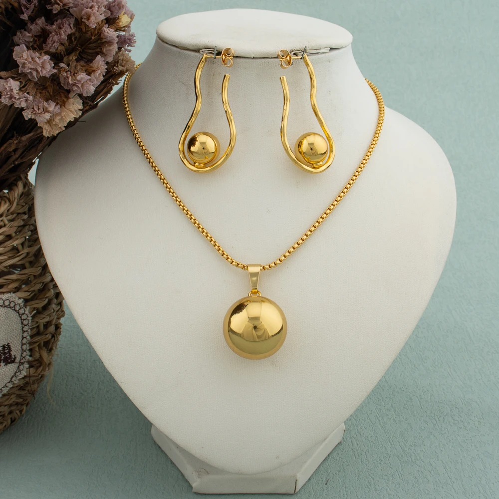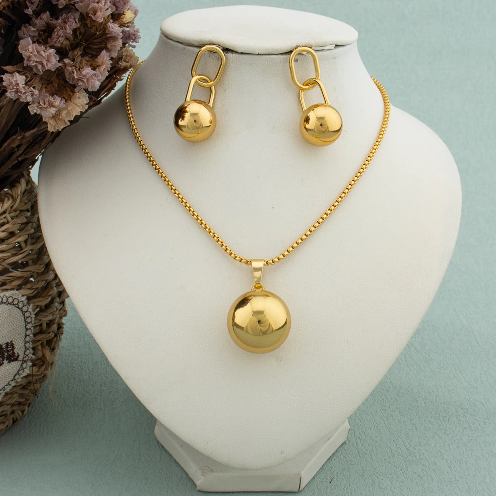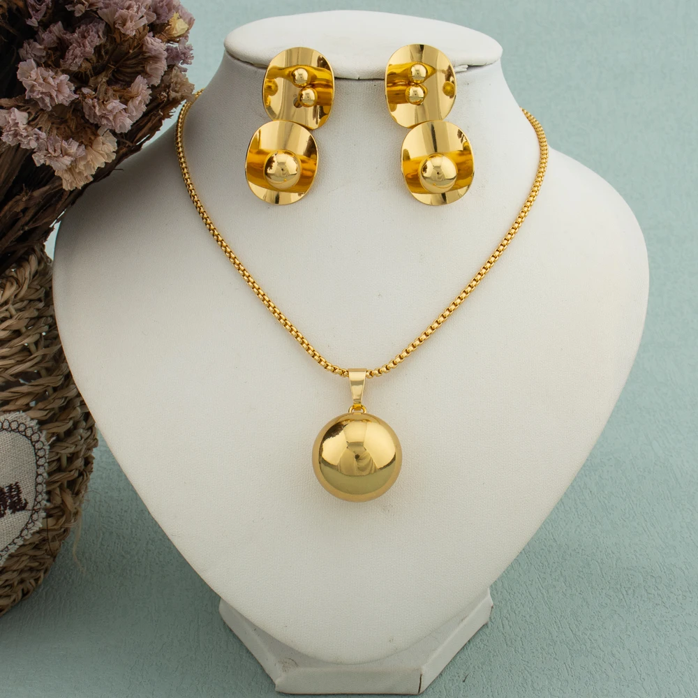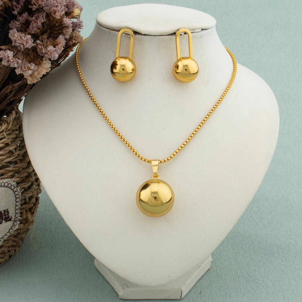 Simple Geometric Metal Necklace Earrings Set Globular Pendant for Women Stainless Steel Gold Plated Non-fade Trendy Jewelry