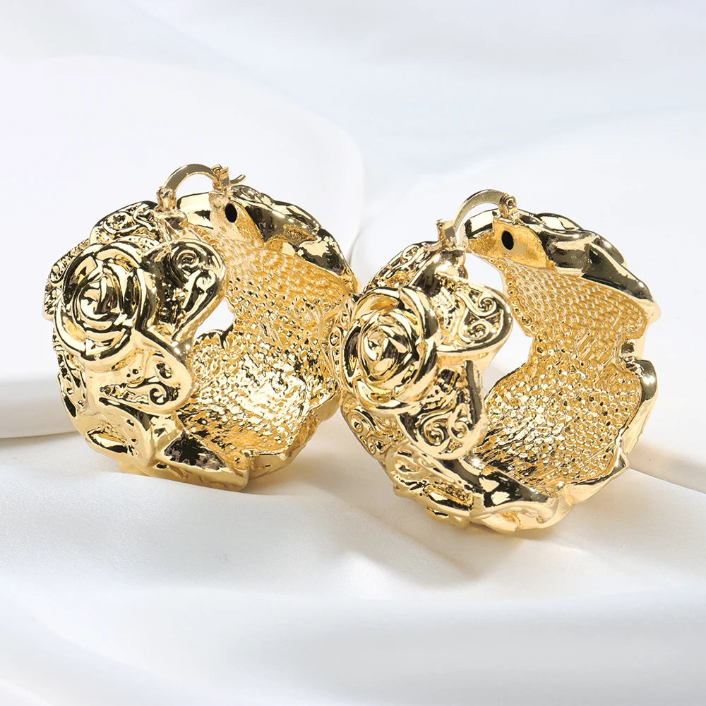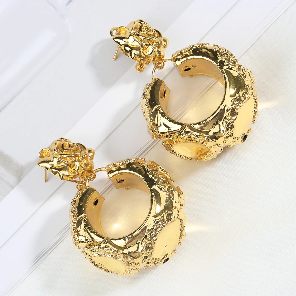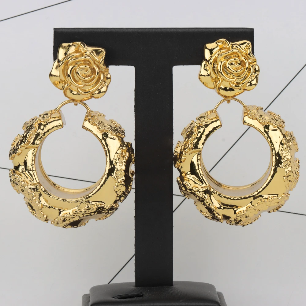 Trendy Earrings and Pendant Set For Women Necklace Fashion Jewelry Copper Golden Geometric Wedding Party Gift