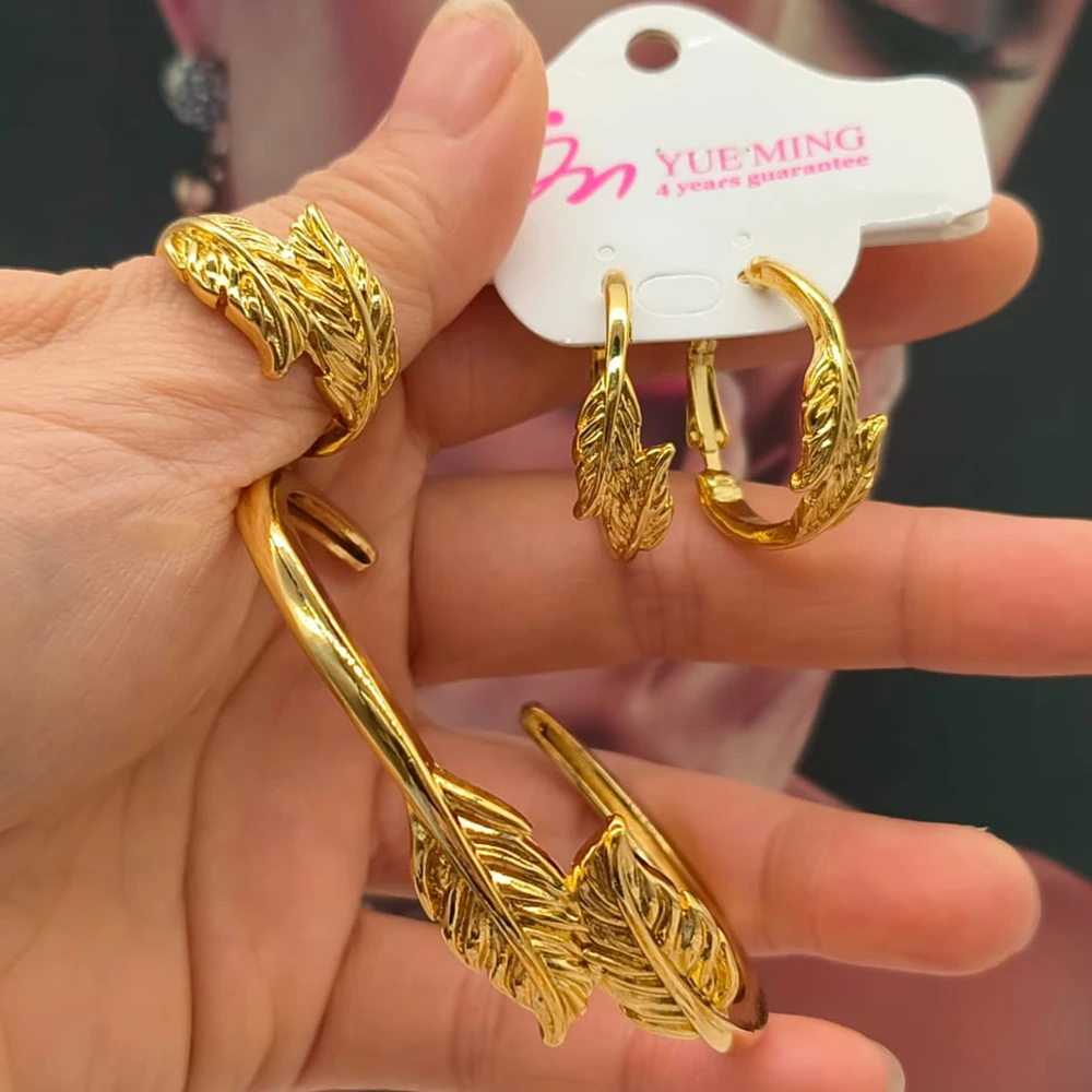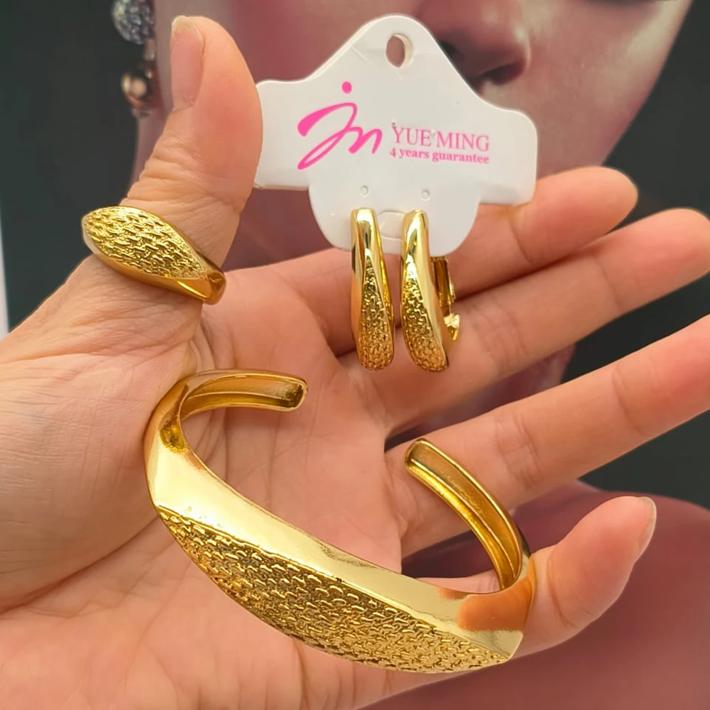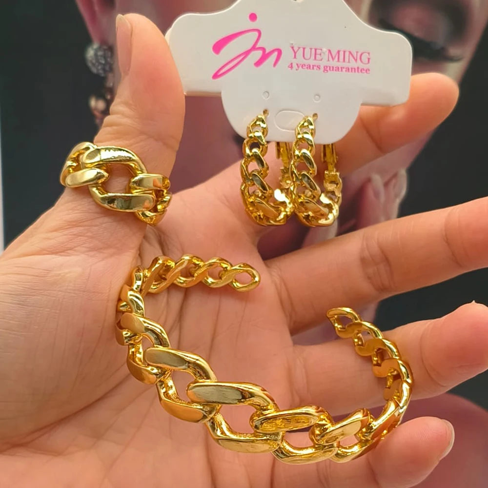 YM 3pcs Jewelry Set for Women Hollow Geometry Bridal Jewellery Fashion Charm Bracelet Clip Earrings Open Ring Holiday Party Gift