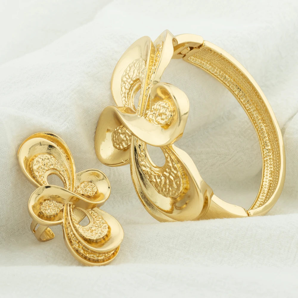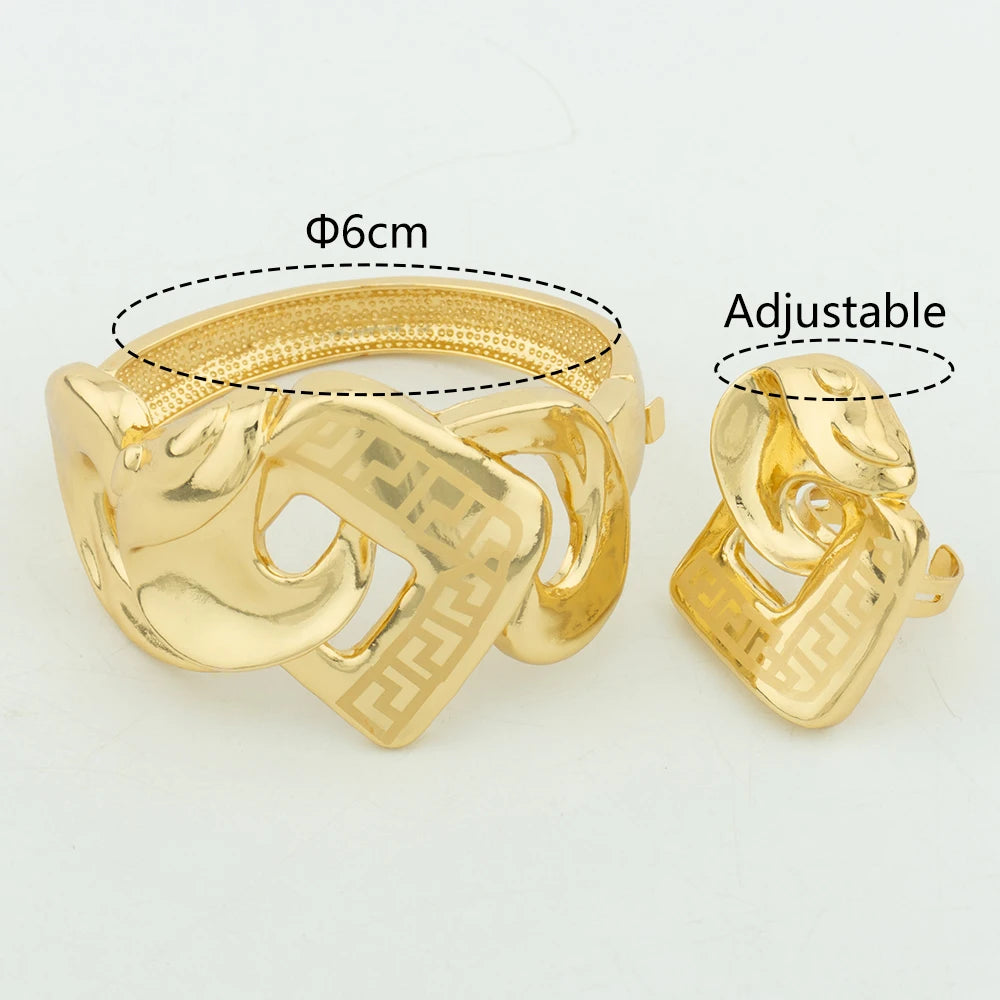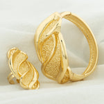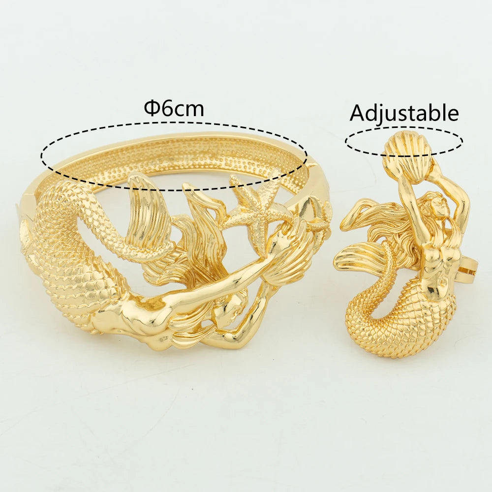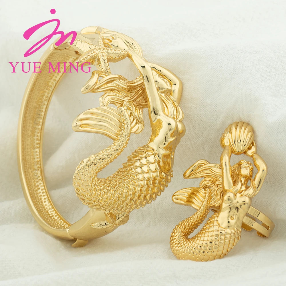 YM African Gold Color Bangles with Ring Nigeria Bride Wedding Banquet Charm Mermaid Bracelet Jewelry Gift Copper Adjustable Ring