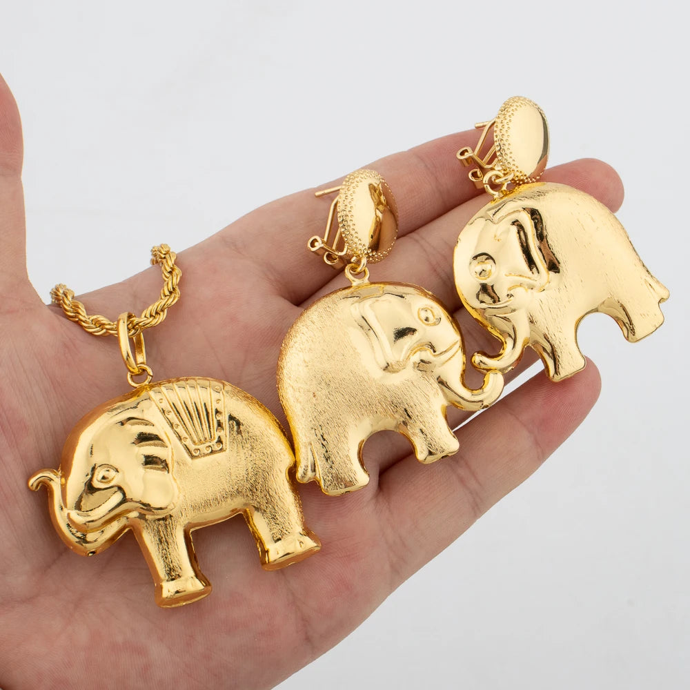 YM Jewelry Set for Women Copper Gold Plated Earrings Necklace Dollars Elephant Pendant Wedding Party Jewelry Gift Classic Trendy